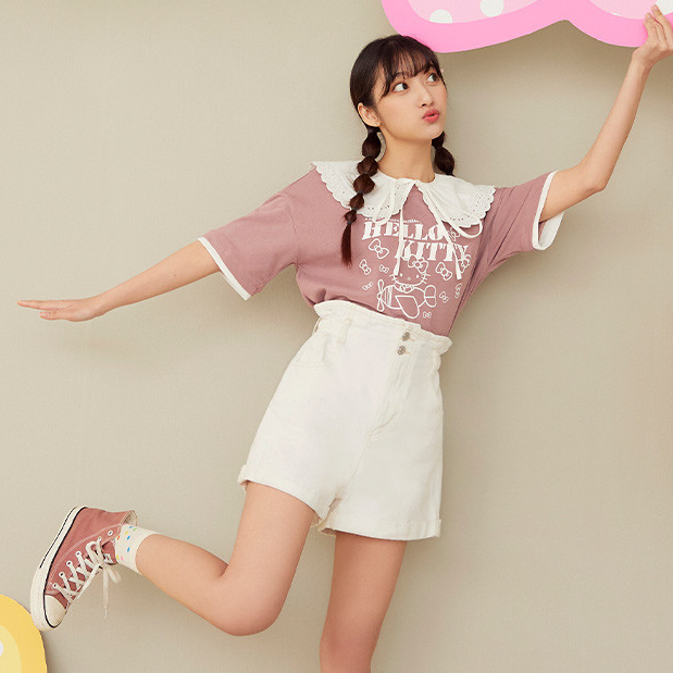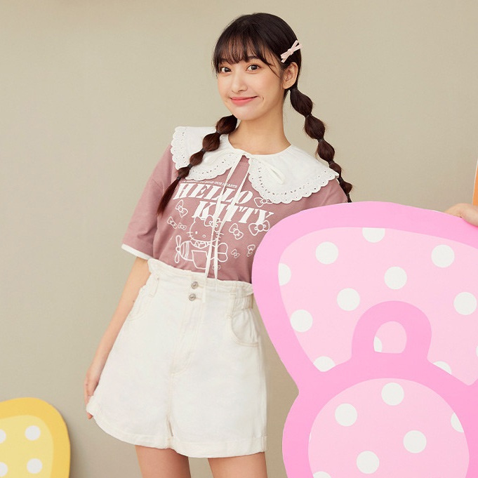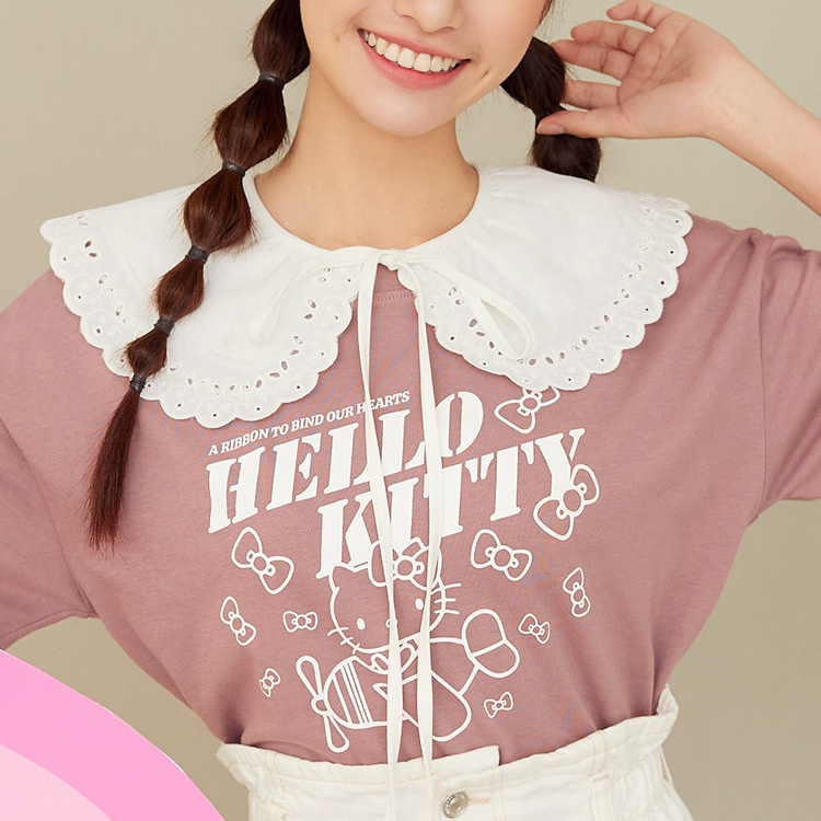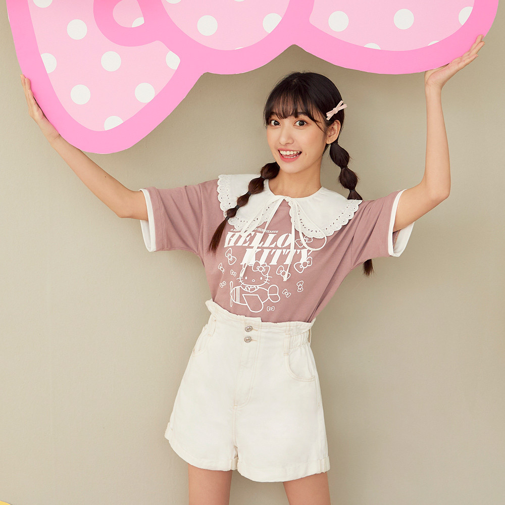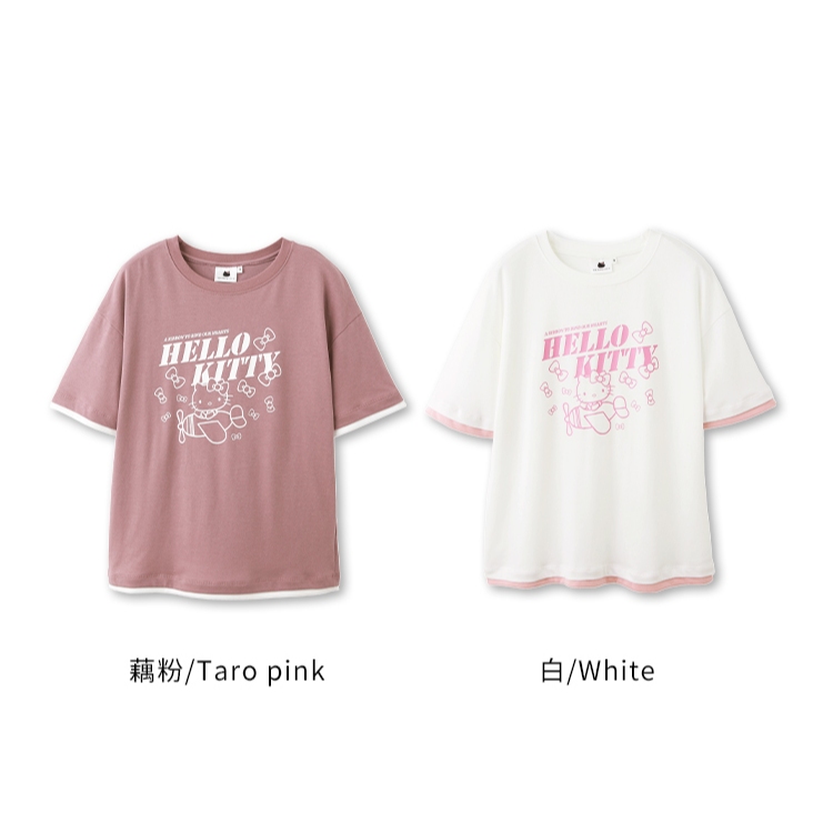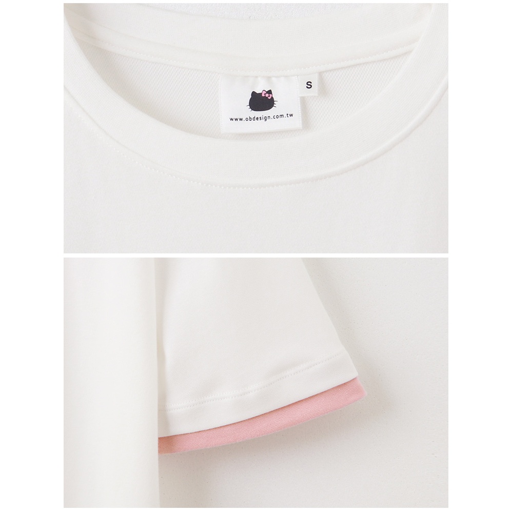 OB嚴選 KITTY 蝴蝶結.假兩件撞色拼接短TEE 《IK0039》大尺碼/現貨/女裝白,XL|白,2L|藕粉,S|藕粉,M|藕粉,L|藕粉,XL|藕粉,2L|白,S|白,M|白,LT-shirtsOB嚴選官方旗艦店