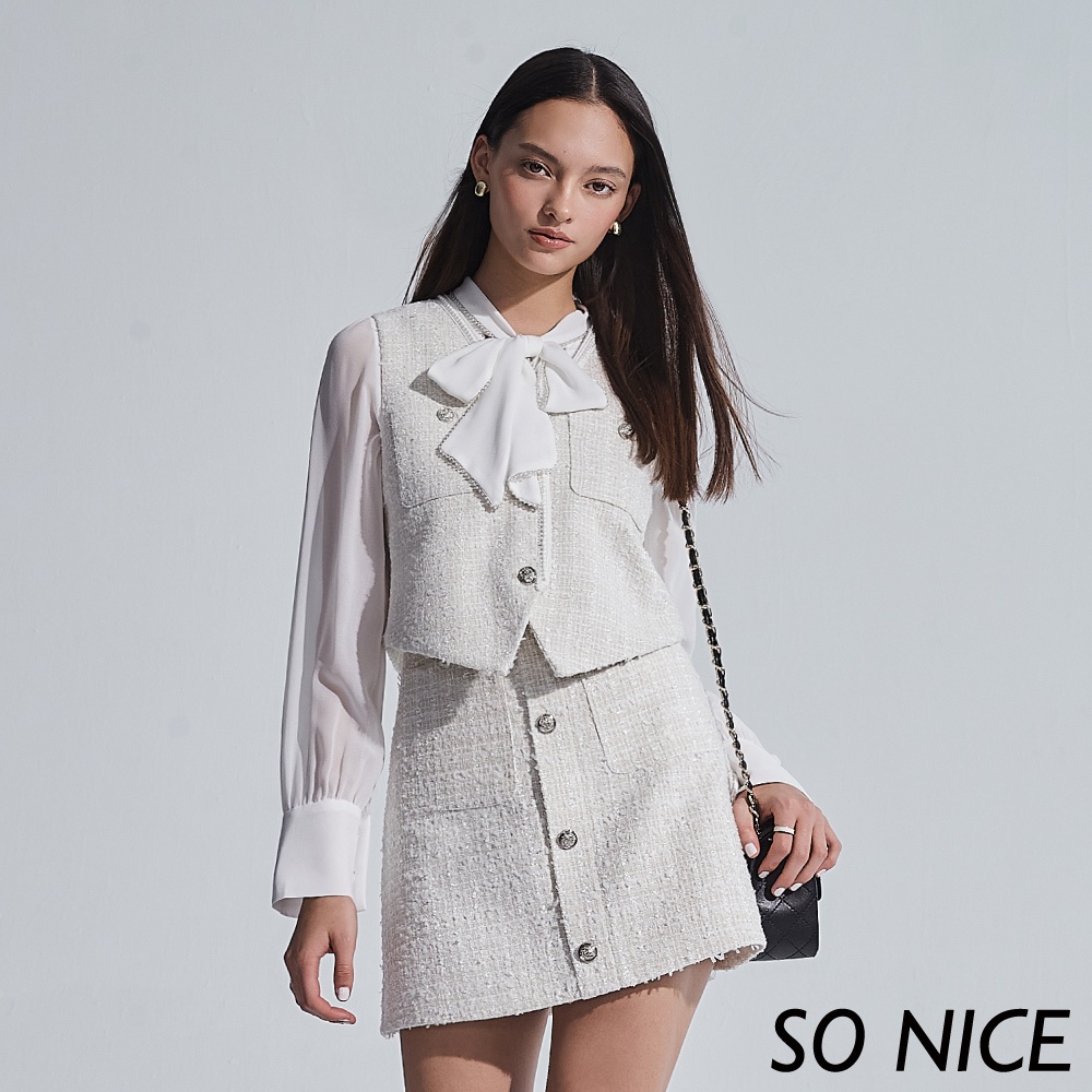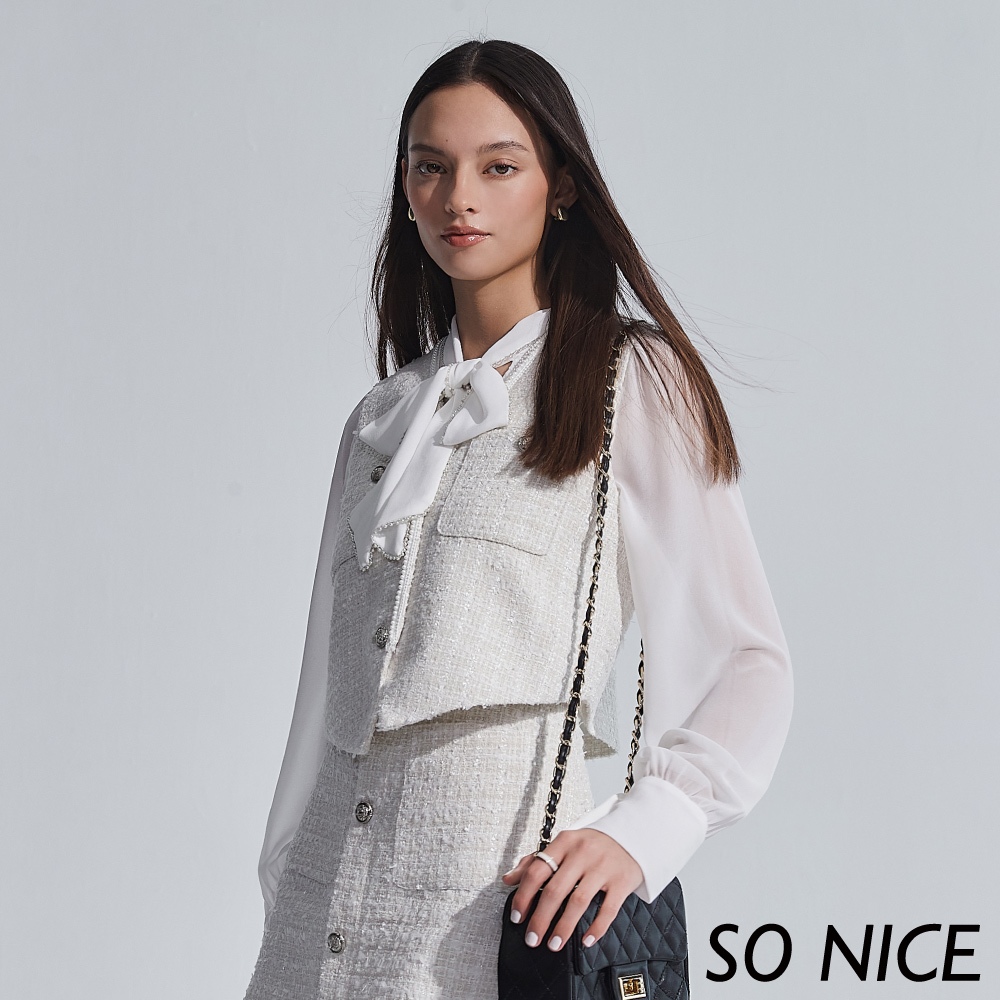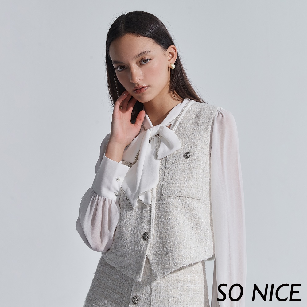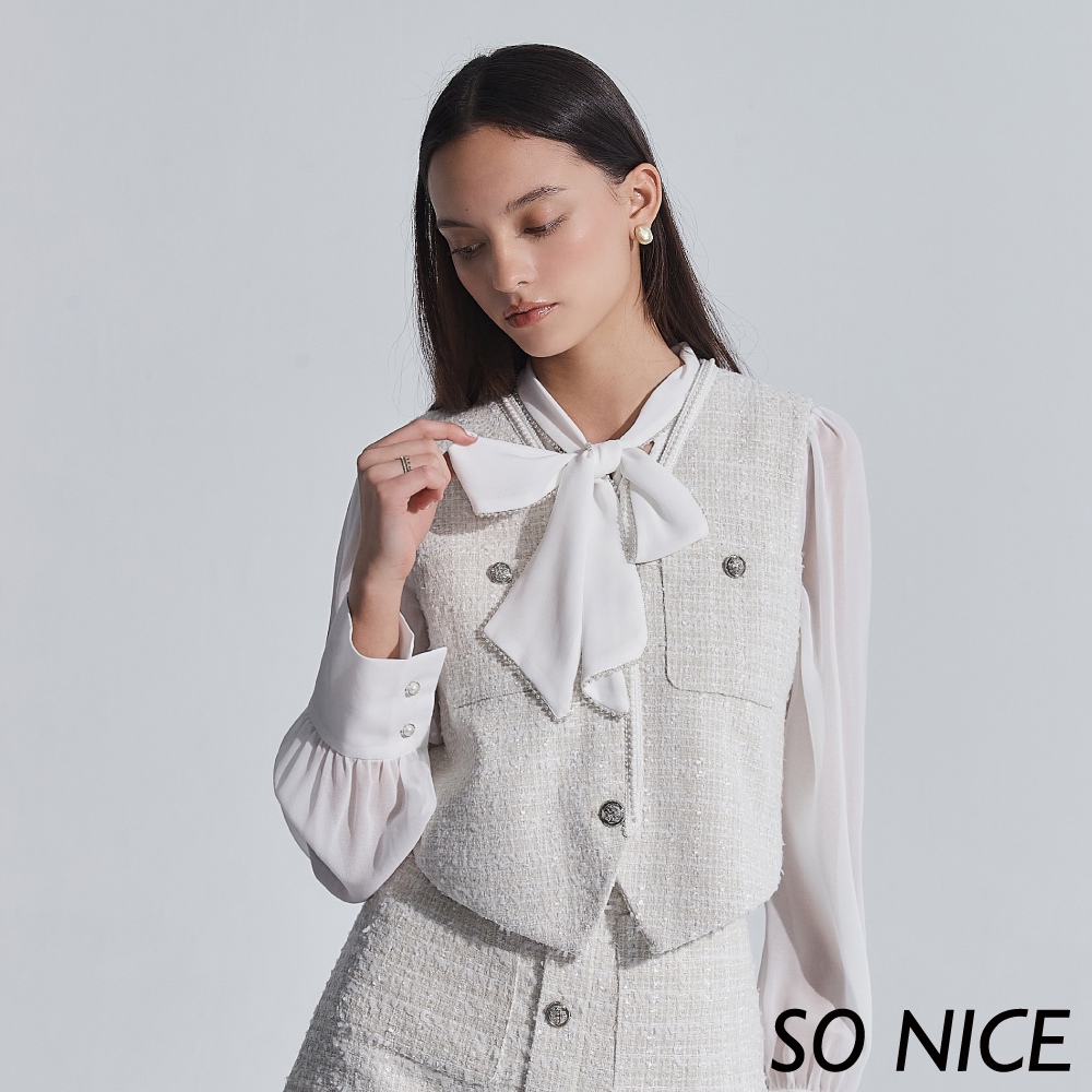 SO NICE【特惠】小香風珍珠織帶毛呢背心|小香風女裝|都會時尚女裝【29345014】白,42(XL)|白,34(XS)|白,36(S)|白,38(M)|白,40(L)VestsSO NICE 官方旗艦店