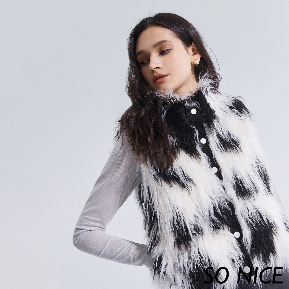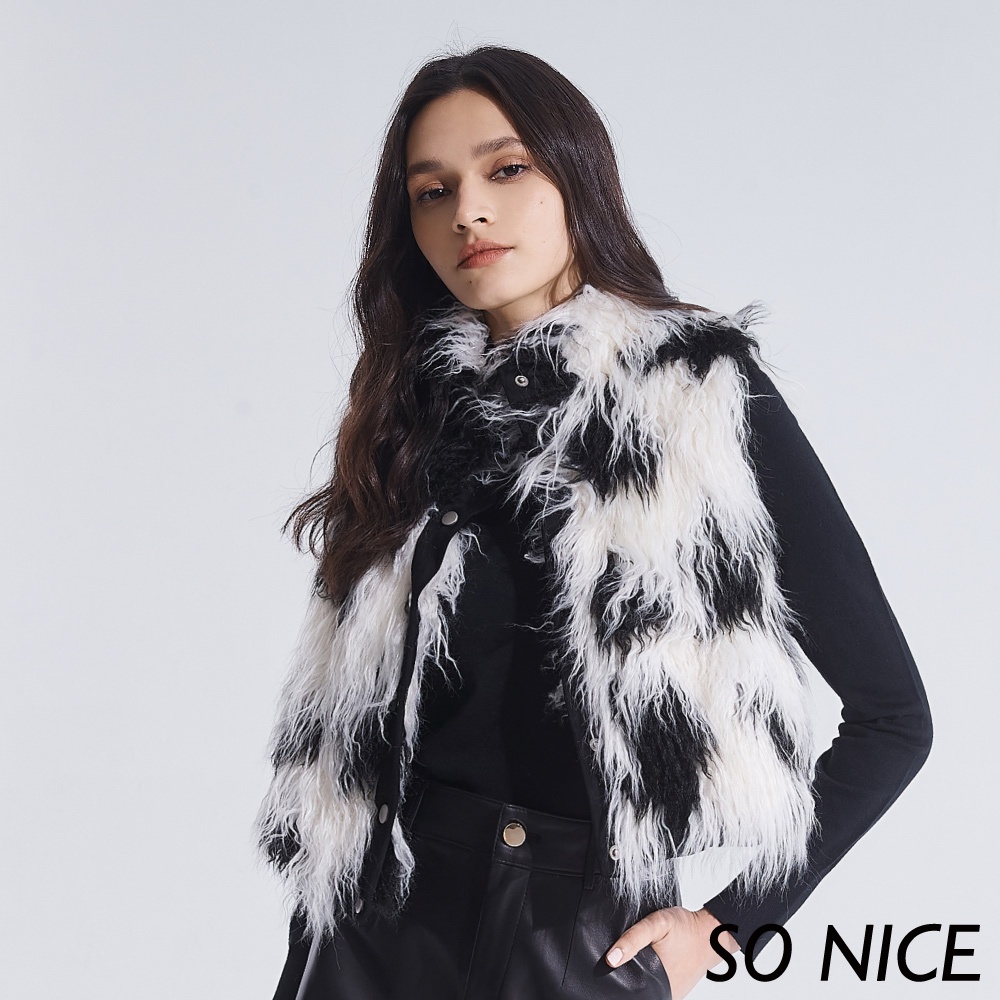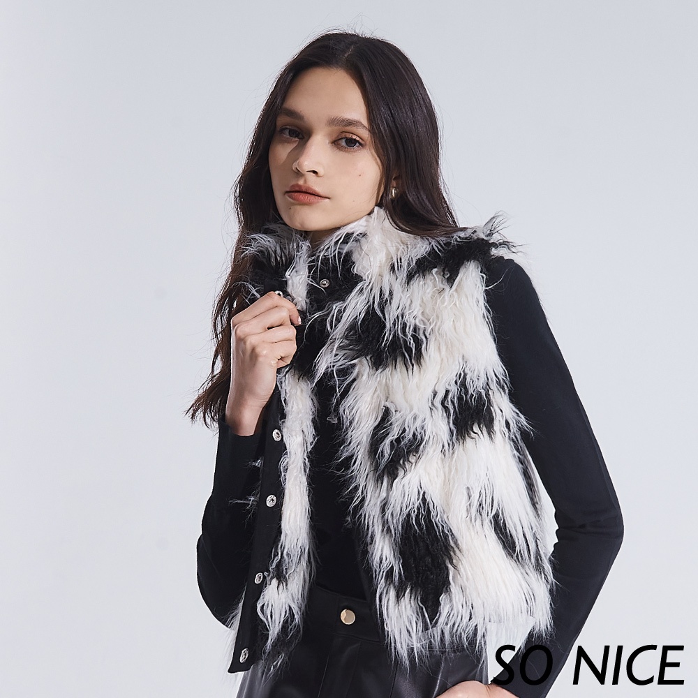SO NICE【特惠】個性撞色仿皮草短版背心|都會時尚女裝【65345011】