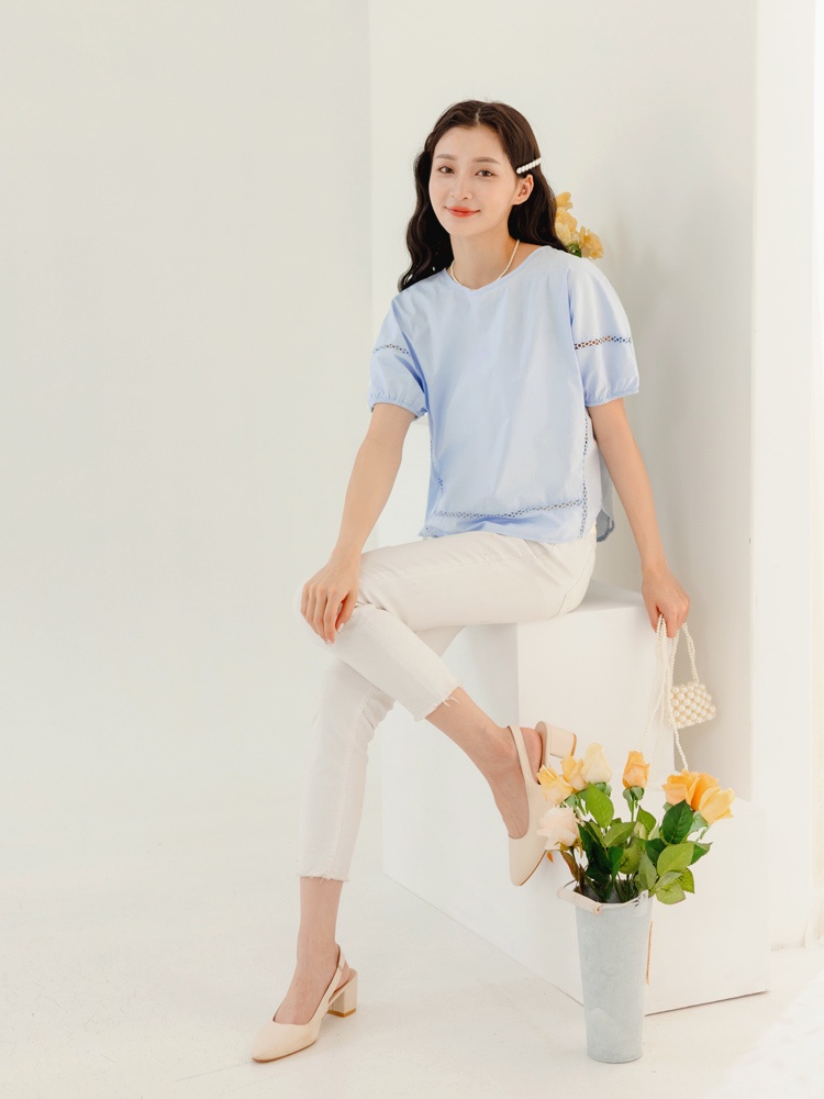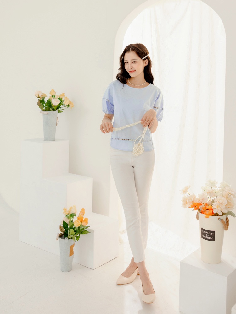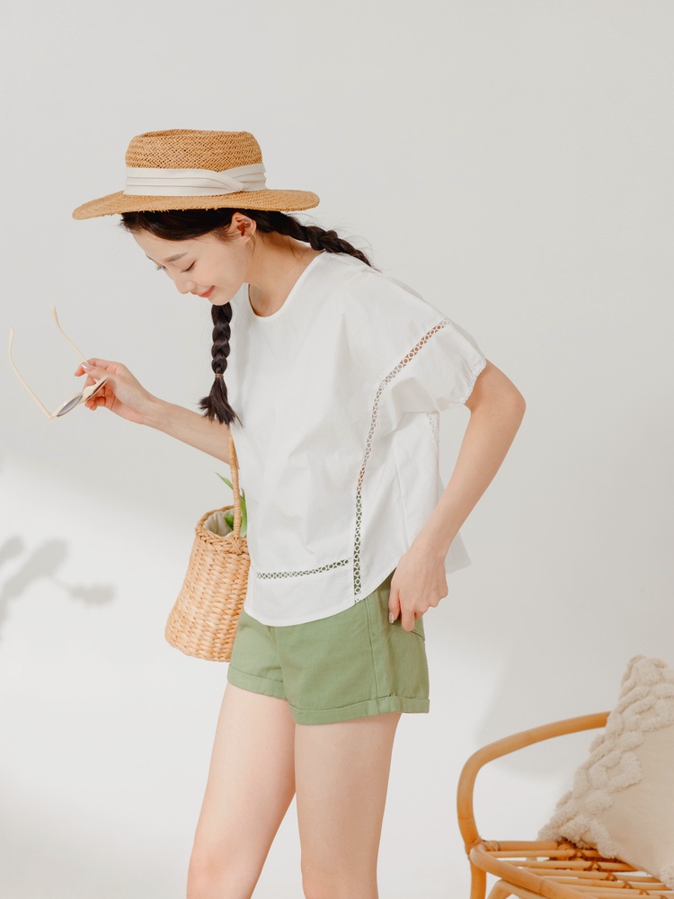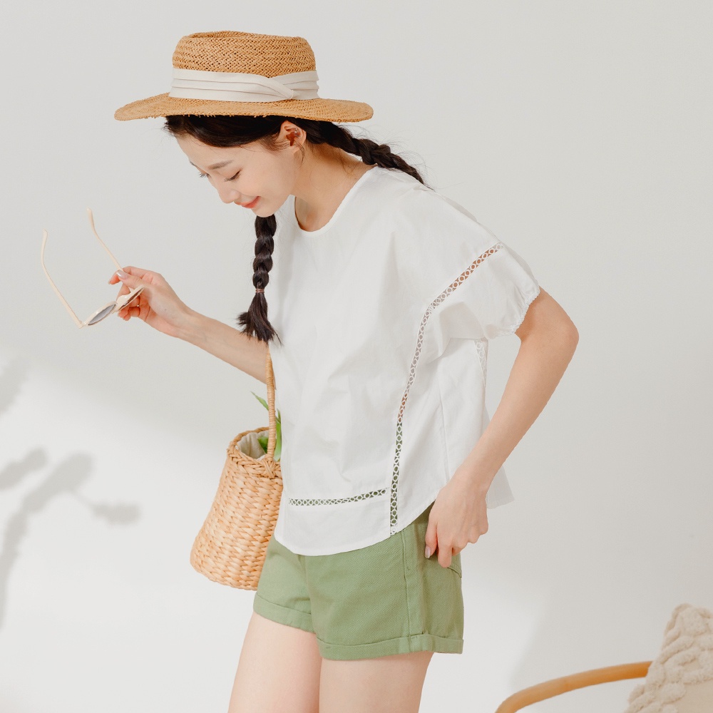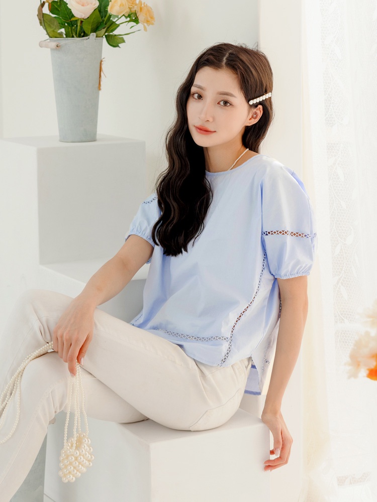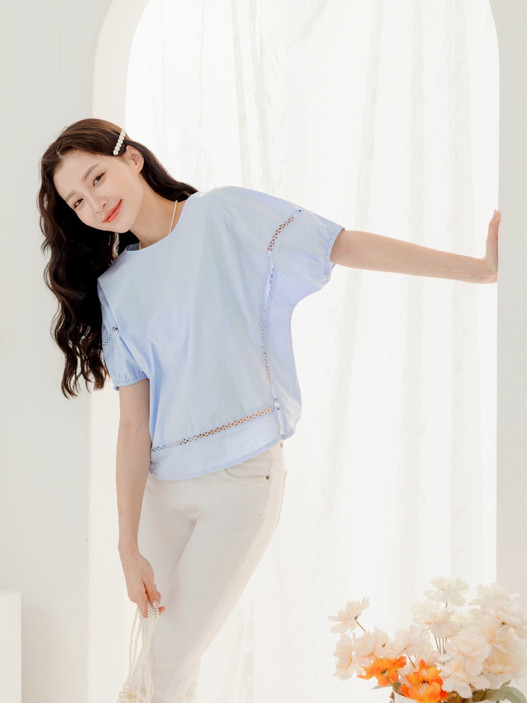 OB嚴選 純棉鏤空織帶拋袖上衣 《AB18947》大尺碼/現貨/女裝白,S|淺水藍,S|淺水藍,L|淺水藍,XL|淺水藍,3L|白,M|白,L|白,XL|白,2L|白,3L|淺水藍,M|淺水藍,2LT-shirtsOB嚴選官方旗艦店