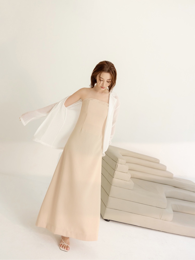 OB嚴選 立體紋理平口收腰後開衩長洋裝 《DA9864》大尺碼/現貨/女裝杏,M|杏,XL|杏,2L|黑,S|黑,M|黑,XL|杏,S|杏,L|杏,3L|黑,L|黑,2L|黑,3LOB嚴選官方旗艦店