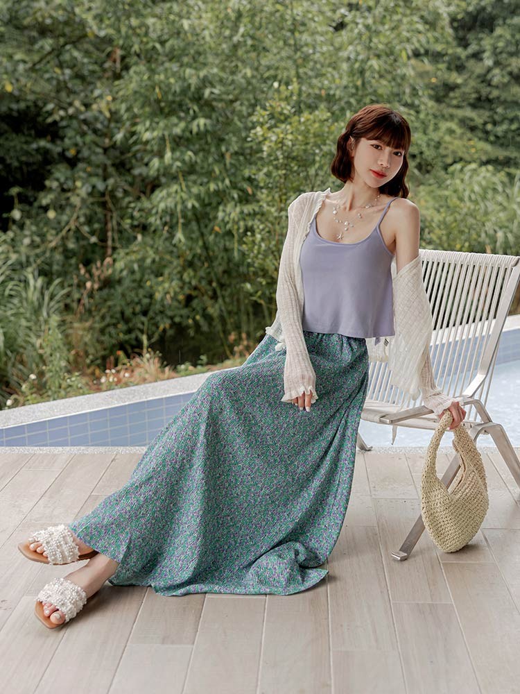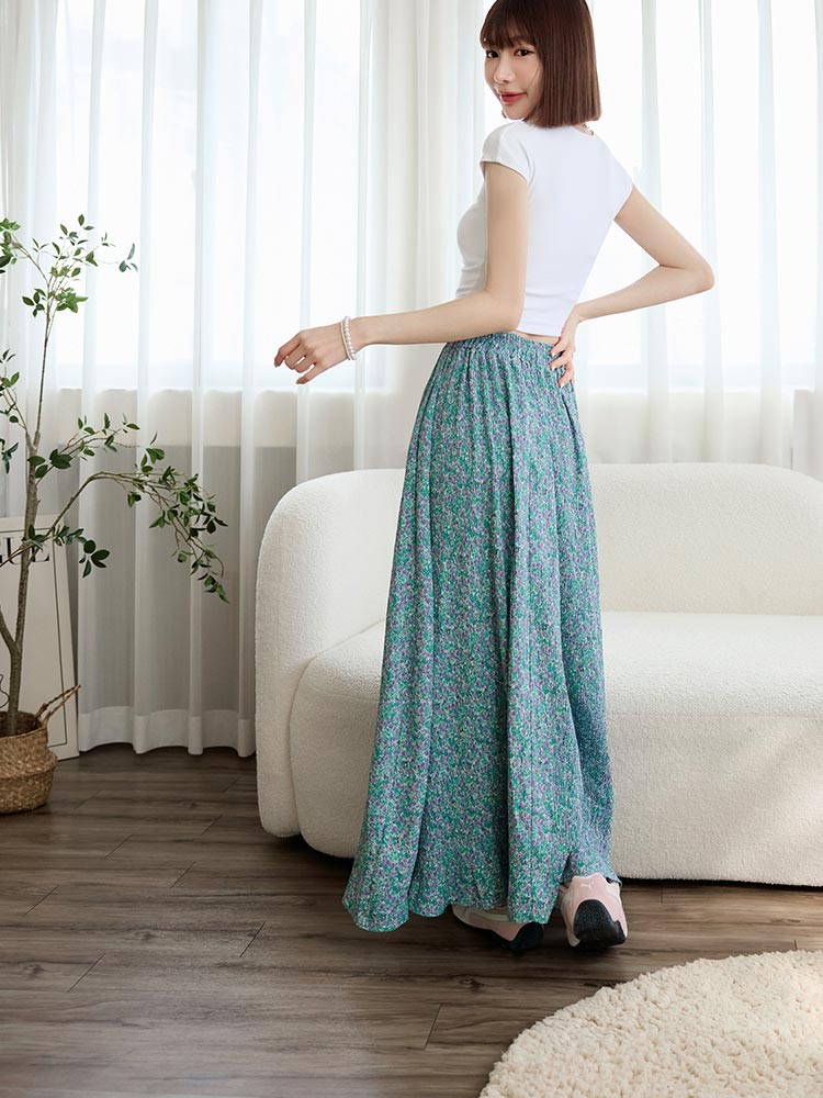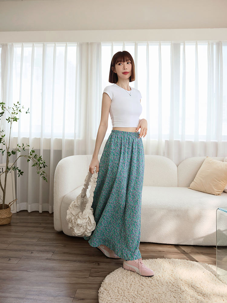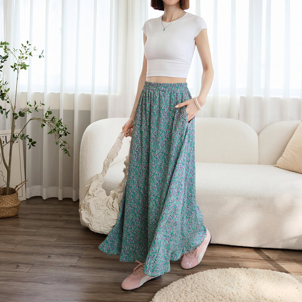 OB嚴選 小碎花壓褶腰鬆緊長裙 《CA3131》綠,M|綠,L|綠,XL|綠,2L|綠,3LOB嚴選官方旗艦店