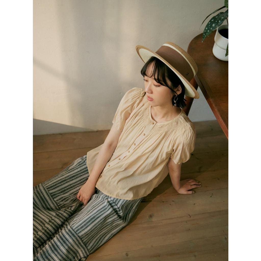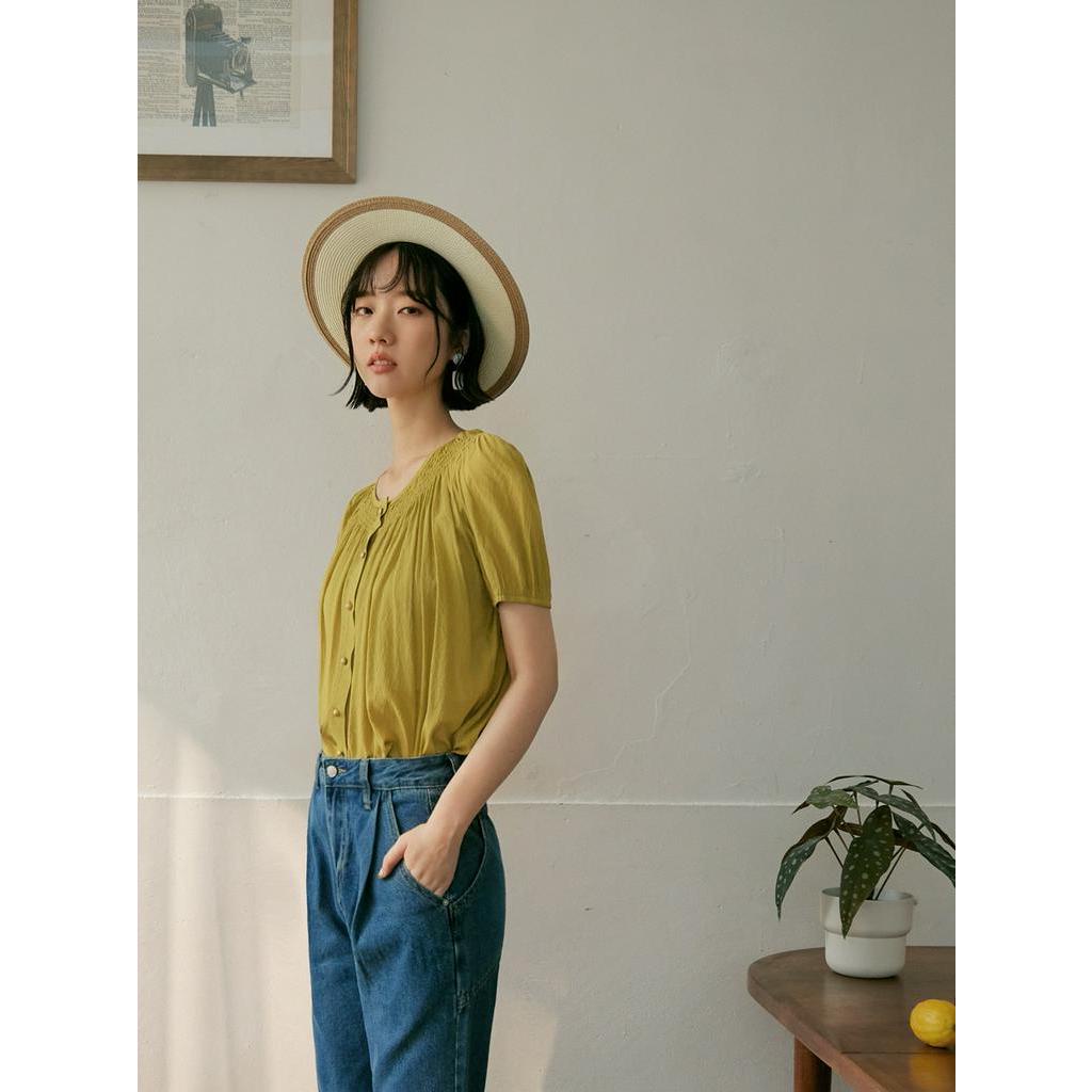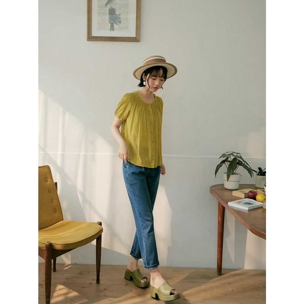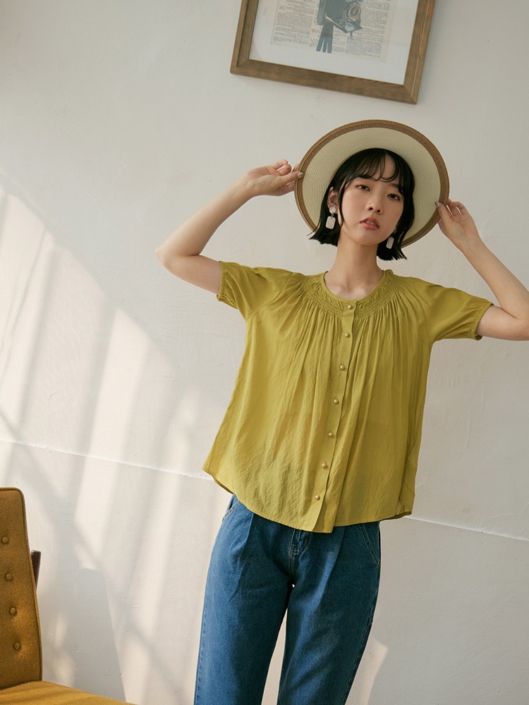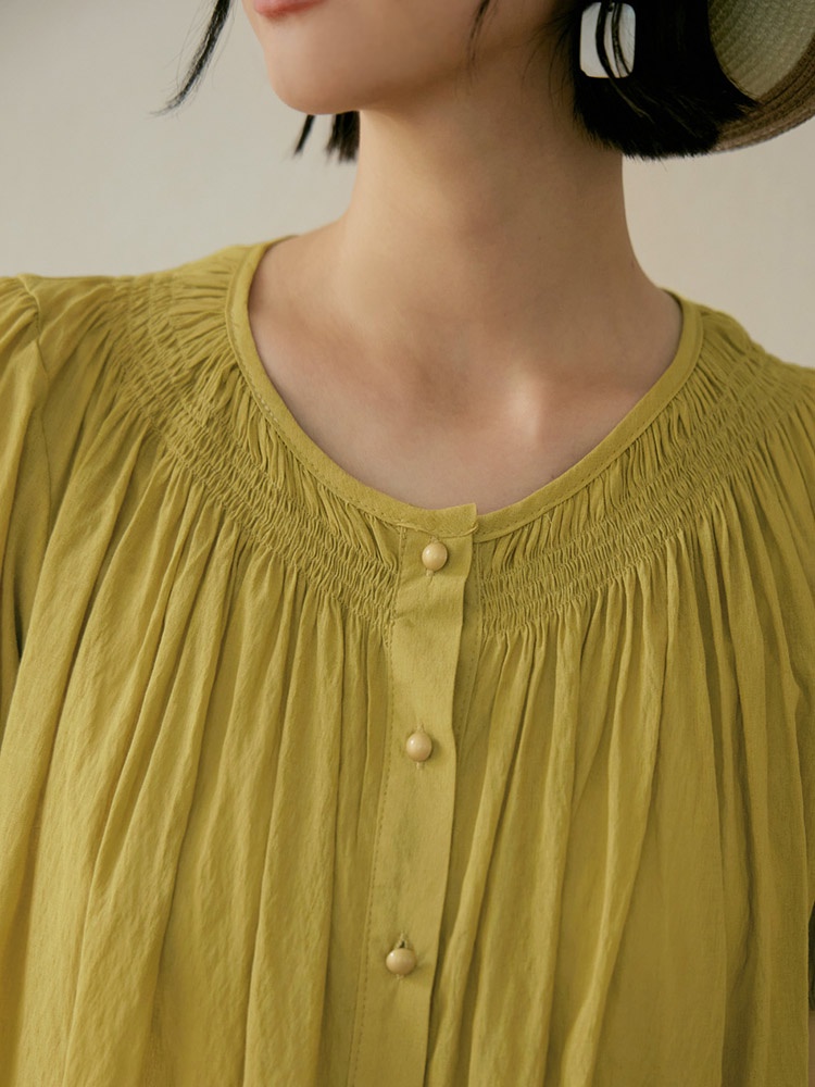 OB嚴選 質感細褶圓領開襟排釦鬆緊袖微透膚上衣 《AB18737》日系/大尺碼/現貨/女裝杏,L|芥末綠,S|芥末綠,M|芥末綠,XL|芥末綠,3L|杏,M|杏,XL|杏,2L|杏,3L|芥末綠,L|芥末綠,2L|杏,ST-shirtsOB嚴選官方旗艦店