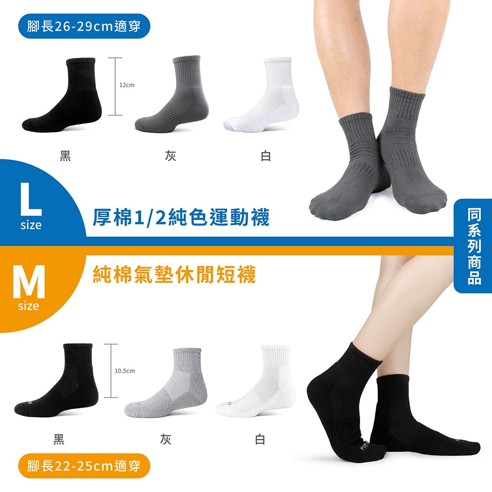 PULO-純棉氣墊休閒短襪-3雙入(M)吸汗厚底氣墊襪 素色襪 棉襪 中筒襪女 短襪 學生襪 運動襪 厚底襪 毛巾襪黑M-3雙入|白M-3雙入|灰M-3雙入SocksPULO布蘿襪館官方直營旗艦店|穿立淨除臭襪