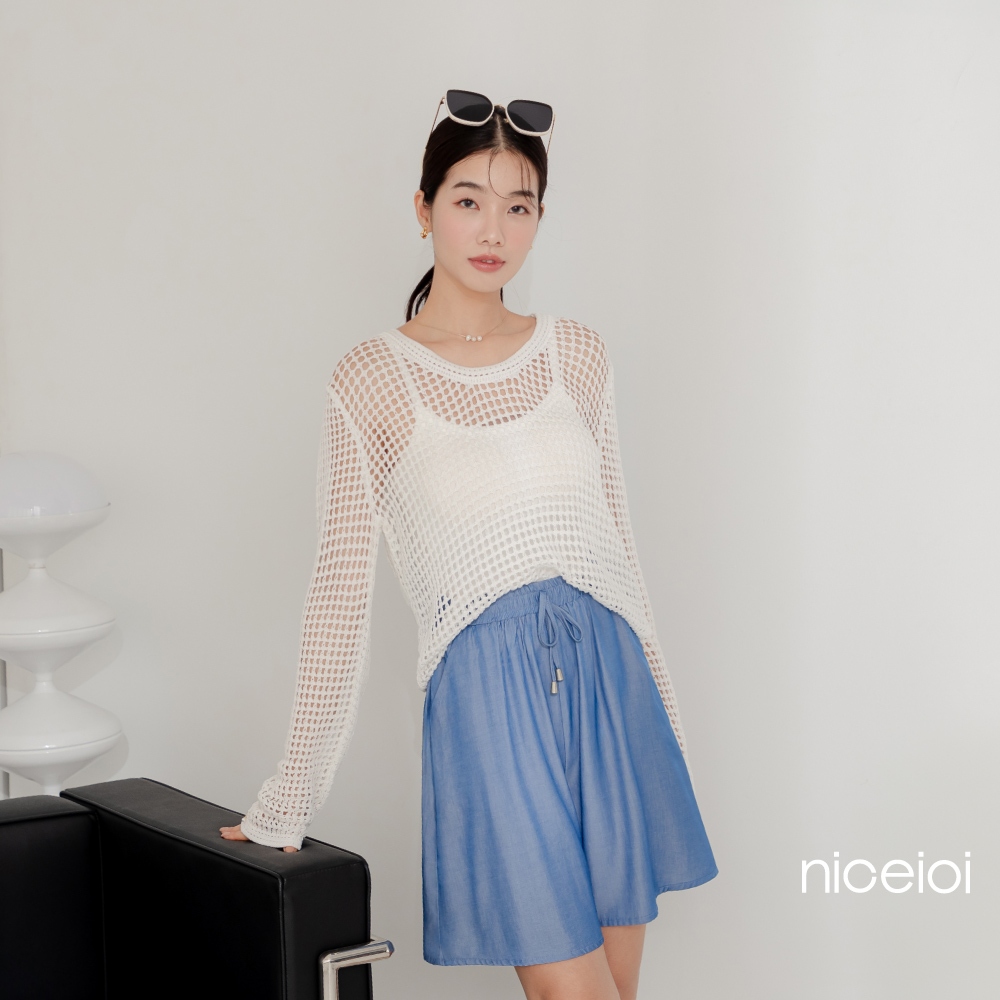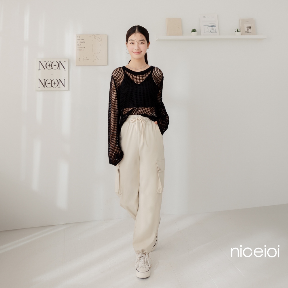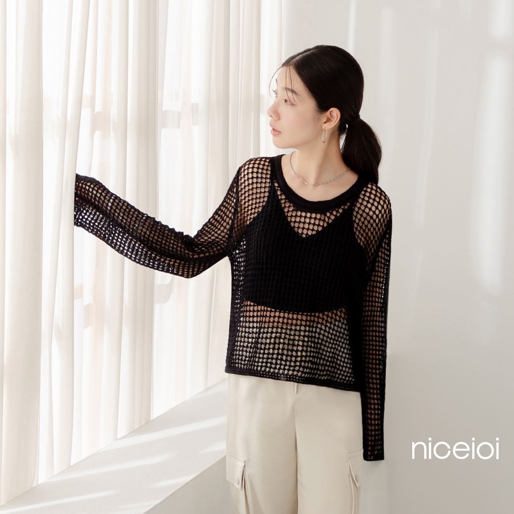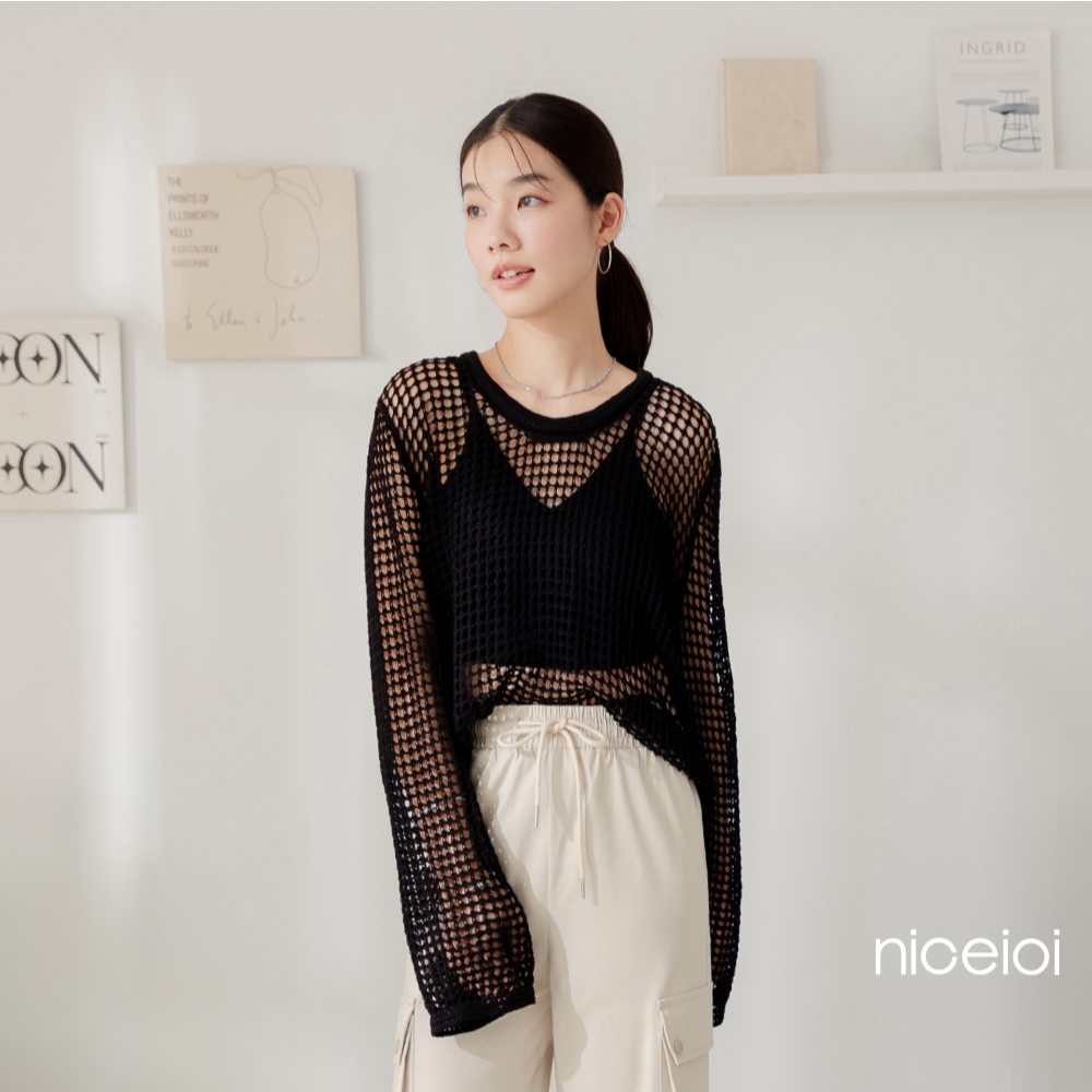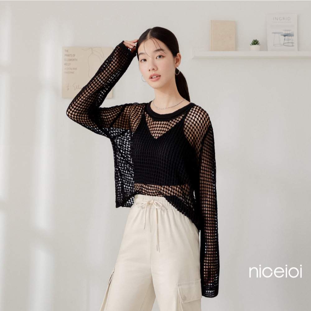 niceioi【特惠】甜辣鏤空洞洞針織上衣 (共2色) 女裝白,F|黑,FT-shirtsniceioi 官方旗艦店