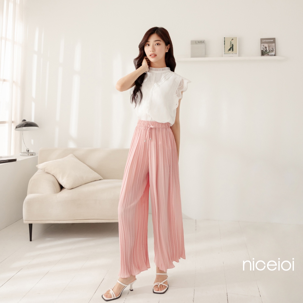 niceioi【特惠】闊腿褲 寬褲 荷葉邊 闊腿褲 咖色 [飄曳荷葉邊寬管壓褶褲] 坑條褲 必敗選品 女裝闊腿褲 寬褲 黑色,M|闊腿褲 寬褲 粉色,S|闊腿褲 寬褲 粉色,M|闊腿褲 寬褲 咖色,S|闊腿褲 寬褲 咖色,M|闊腿褲 寬褲 黑色,SPantsniceioi 官方旗艦店