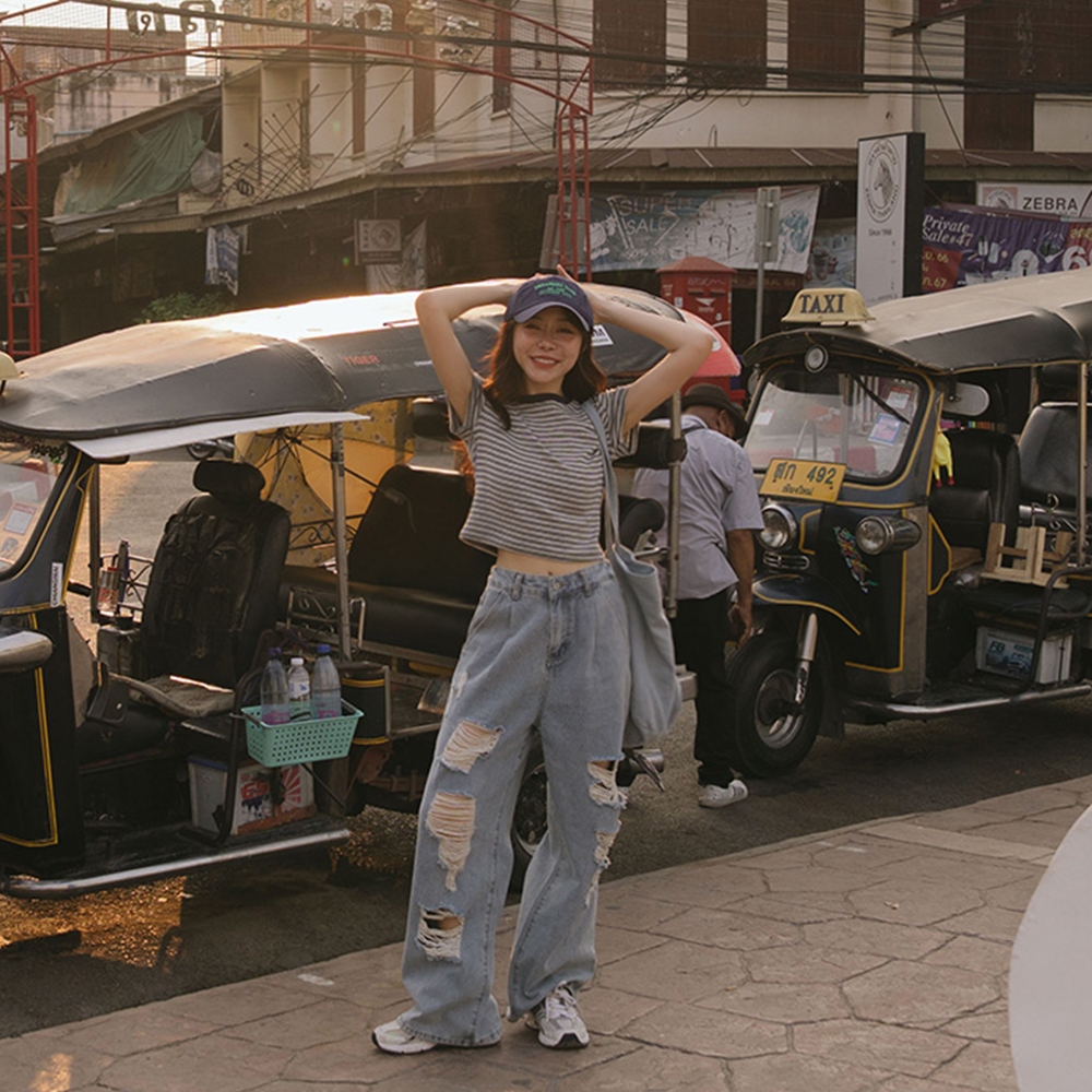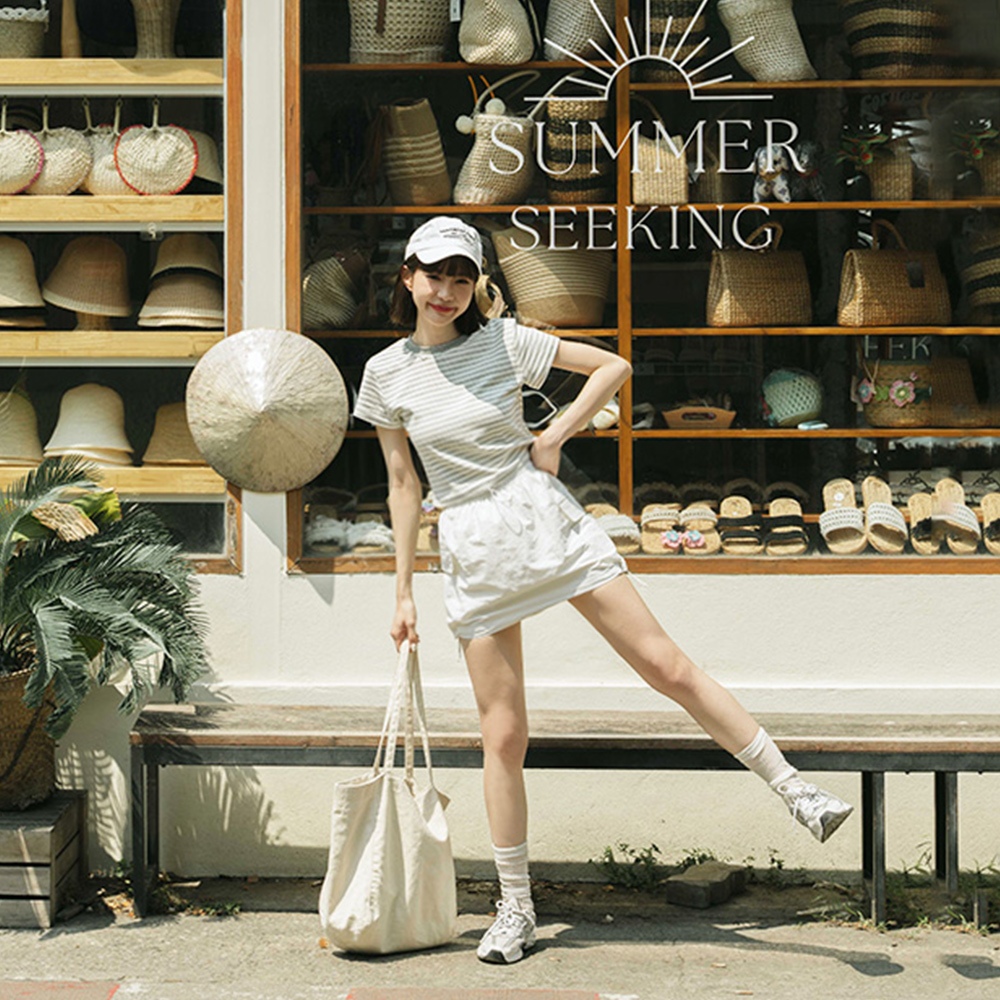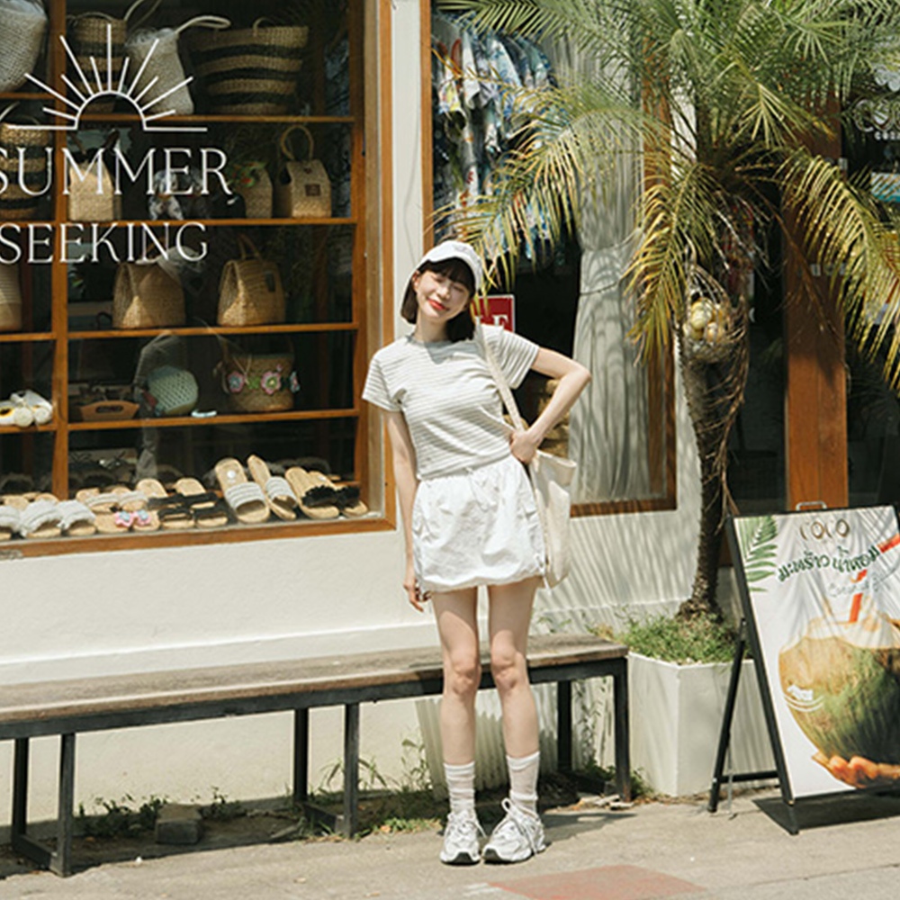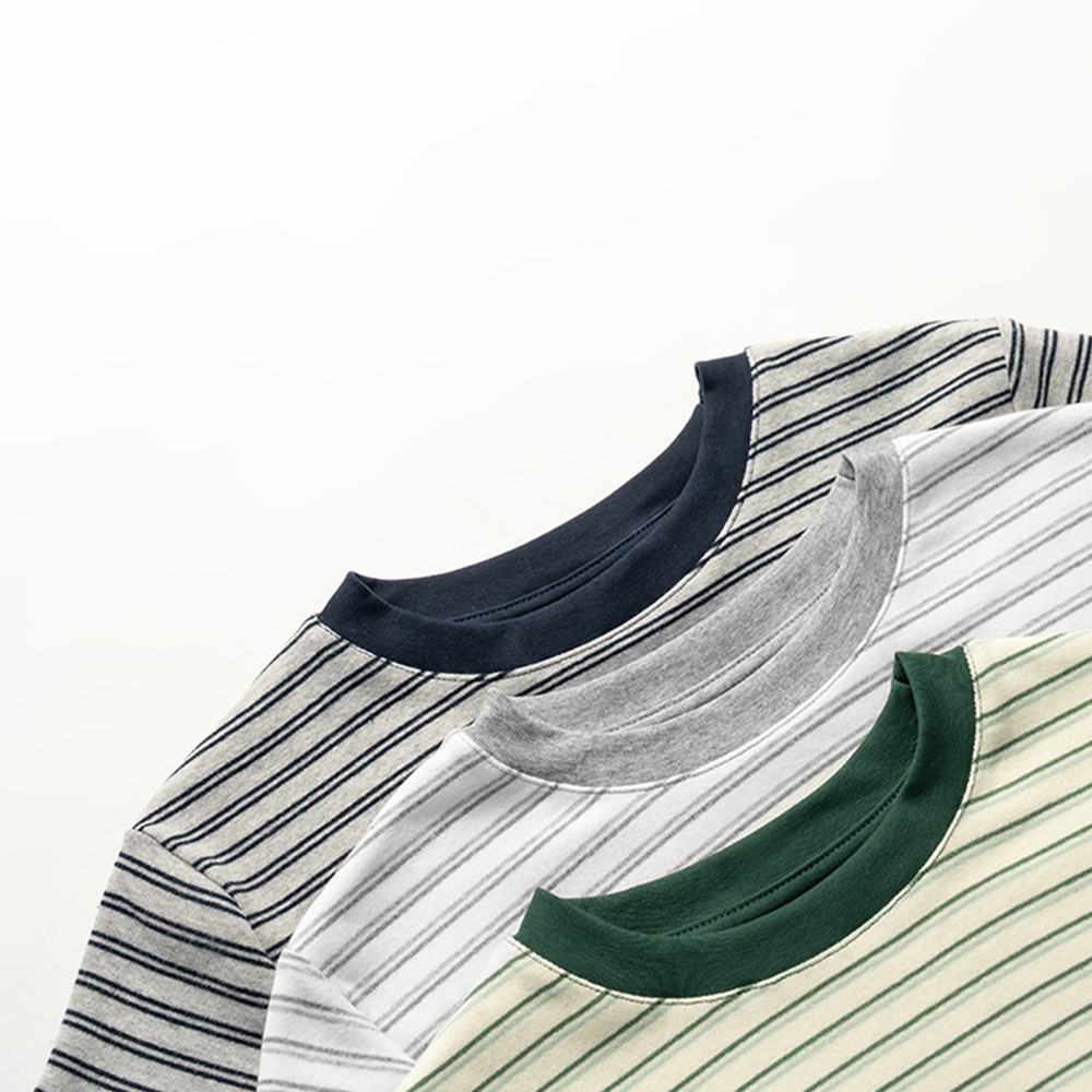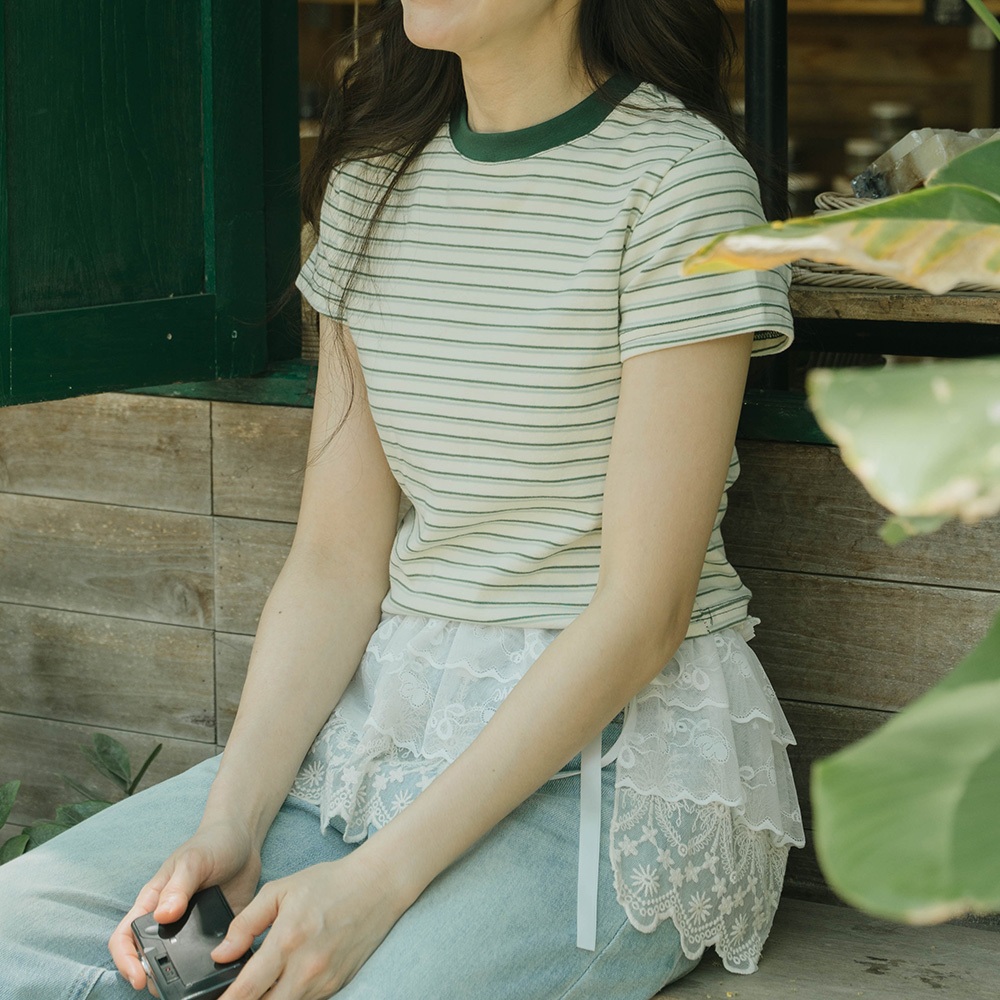 QUEENSHOP_ S 女裝 短袖 圓領條紋設計短版上衣 三色售 現+預【01190245】綠|深灰|淺灰T-shirtsQUEENSHOP