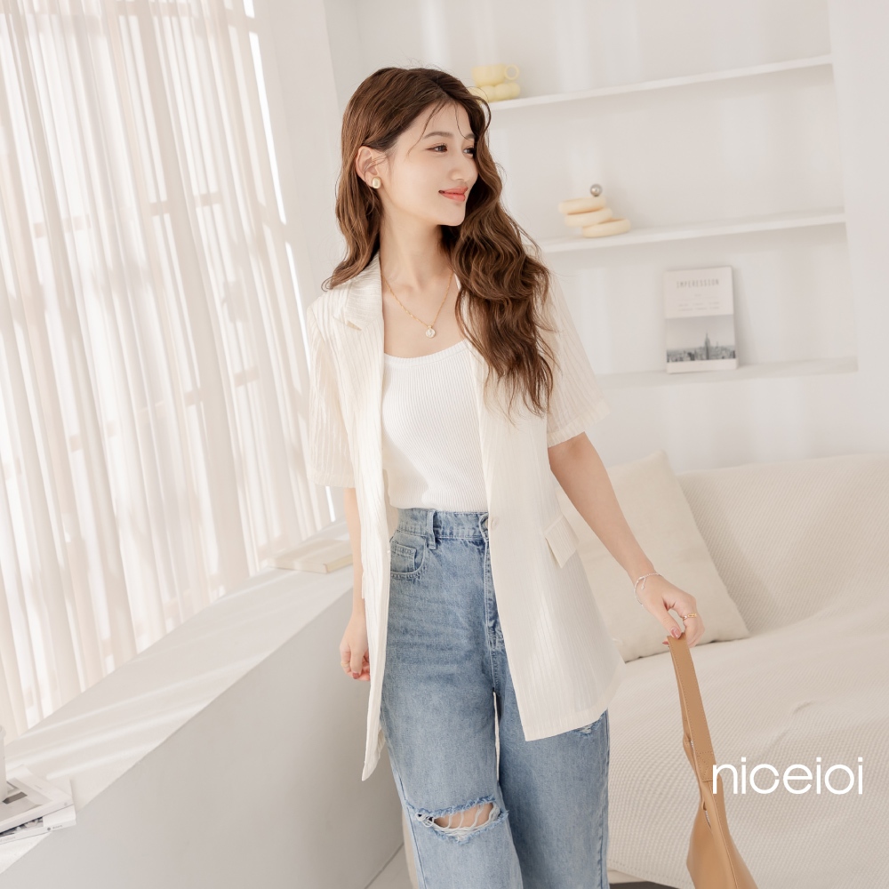 niceioi【特惠】西裝外套 外套 西裝 白色 [質感壓褶小墊肩翻領外套] 翻領外套 女裝西裝外套-米,S|西裝外套-米,M|西裝外套-米,L|西裝外套-米,XLBlazersniceioi 官方旗艦店