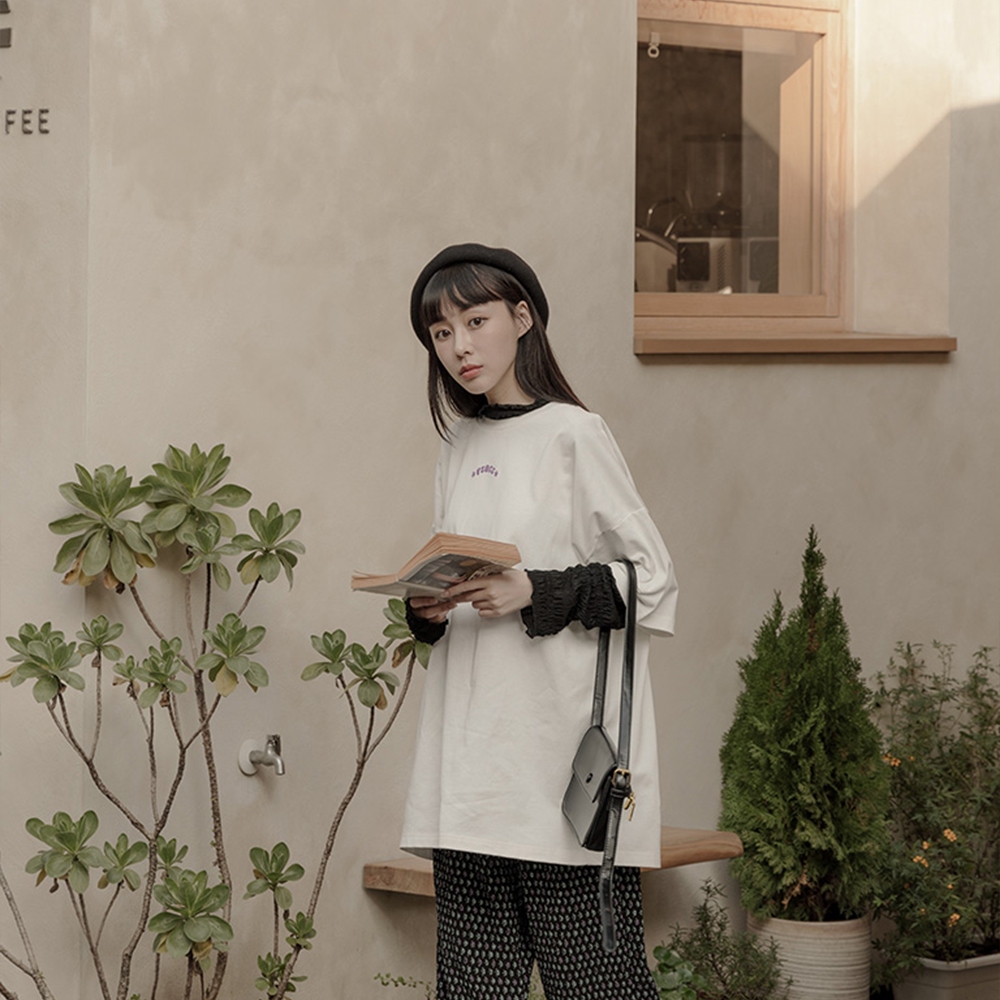 QUEENSHOP_ S 女裝 PEACE繡字花花印圖寬版短袖上衣 三色售 現+預 【01039871】黑|灰|白T-shirtsQUEENSHOP