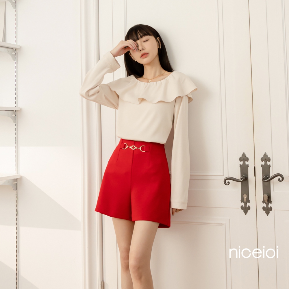 niceioi【特惠】時尚馬銜釦顯瘦A字短褲 (共3色) 過年套裝 紅色短褲 女裝深藍,XL|白,L|白,XXL|紅,S|紅,XL|紅,M|紅,L|紅,XXL|深藍,L|白,S|白,M|深藍,XXL|白,XL|深藍,S|深藍,MShortsniceioi 官方旗艦店