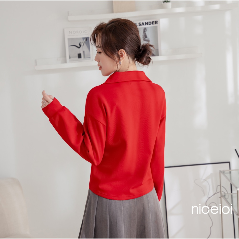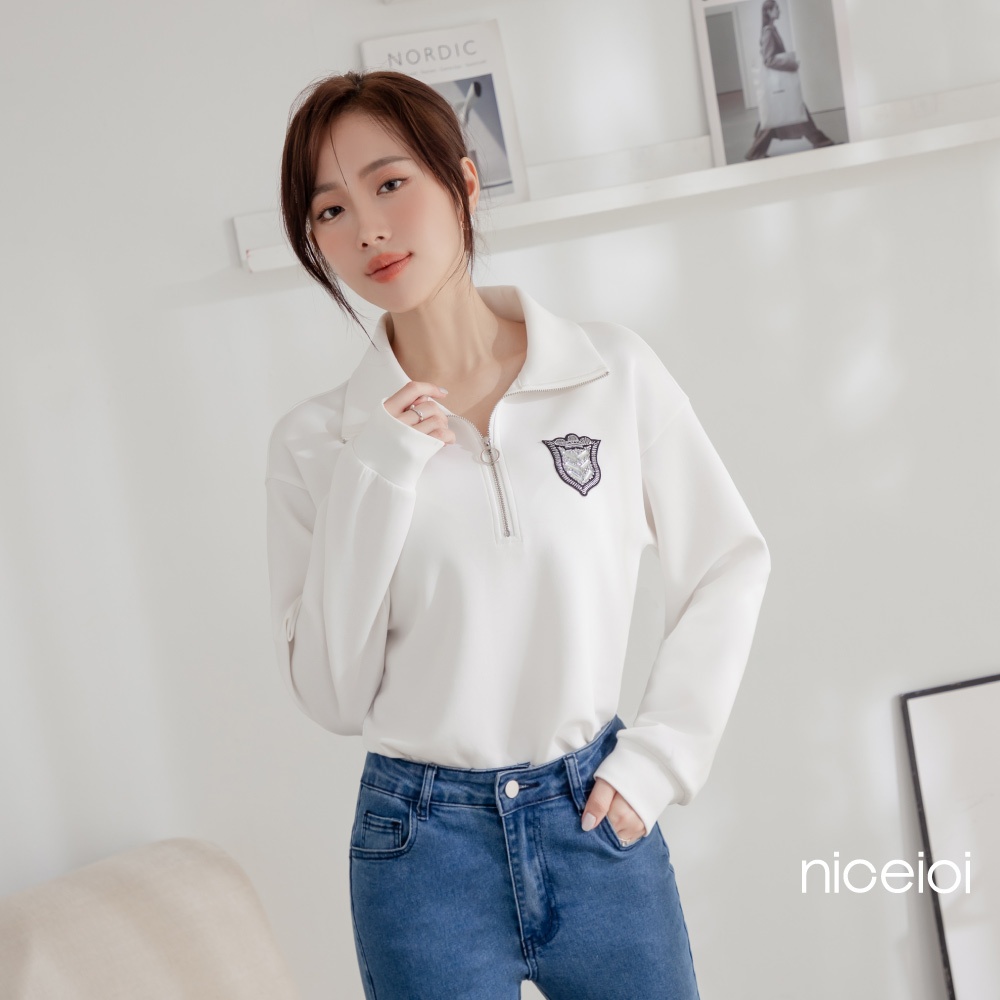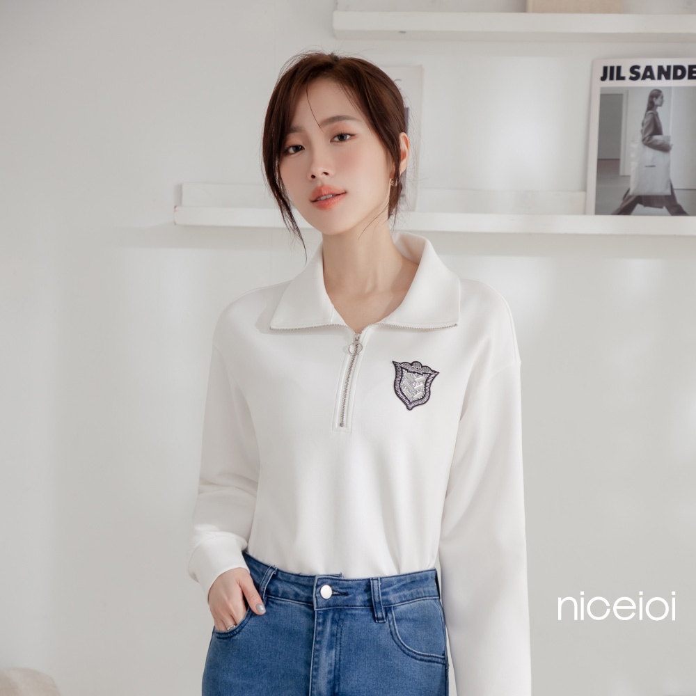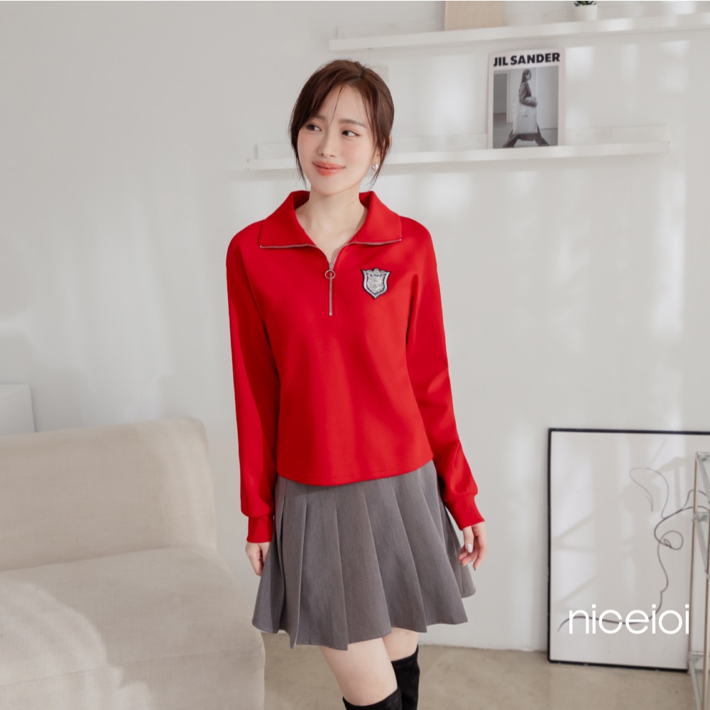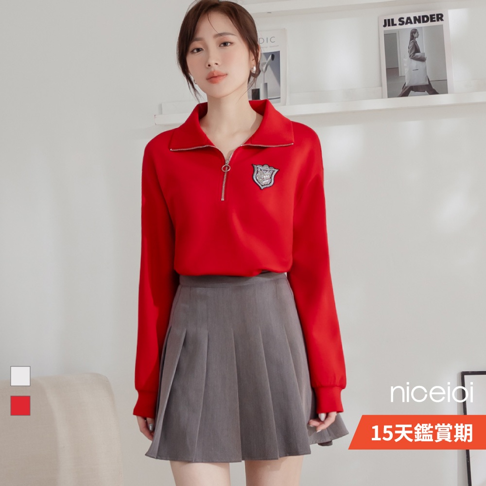 niceioi【特惠】騎士風半開襟燙印徽章空氣棉上衣 (共2色) 女裝紅,M|紅,L|紅,XL|白,S|白,M|白,L|白,XL|紅,ST-shirtsniceioi 官方旗艦店