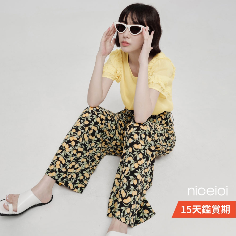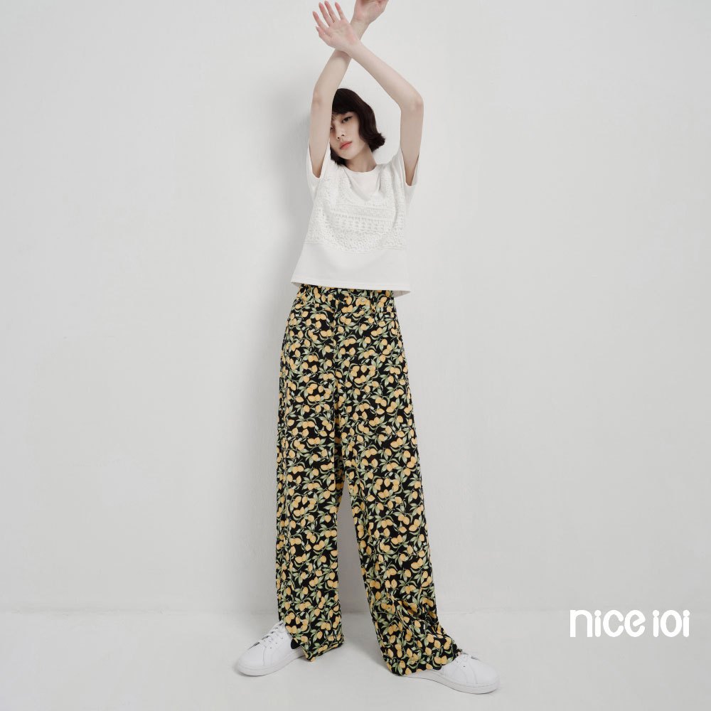 niceioi【特惠】寬褲 長褲 女寬褲 印花黑色 [果實印花寬褲] 女裝修身寬褲-印花黑色,S|修身寬褲-印花黑色,M|修身寬褲-印花黑色,L|修身寬褲-印花黑色,XLPantsniceioi 官方旗艦店