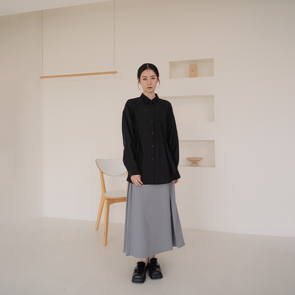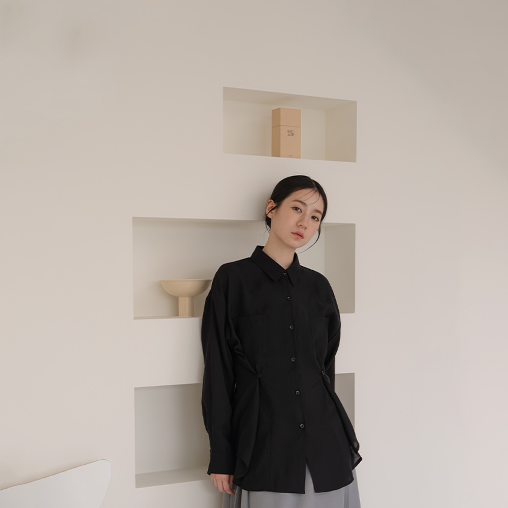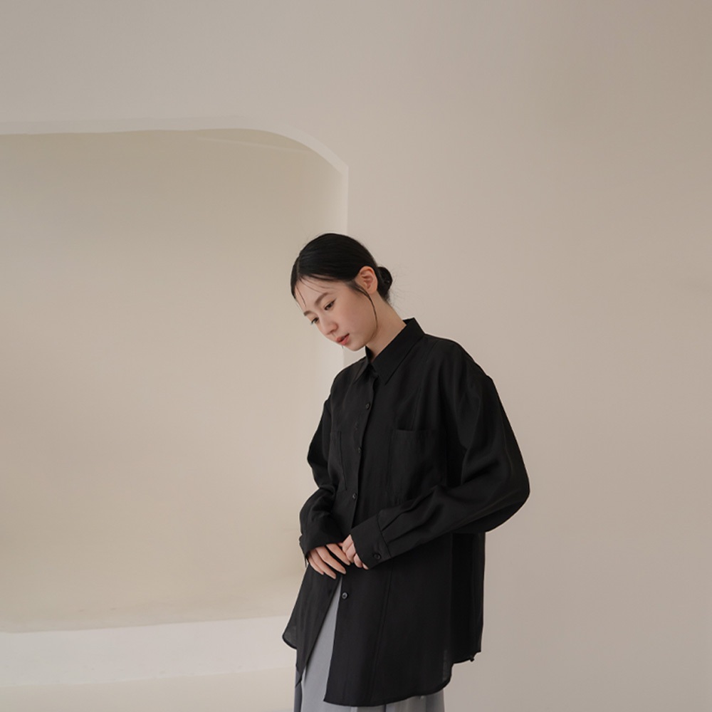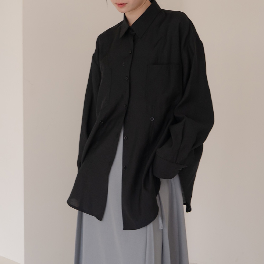 QUEENSHOP_ S 女裝 長袖 質感剪接側釦造型雙口袋襯衫-黑 現+預 【01025564】黑Shirts & BlousesQUEENSHOP