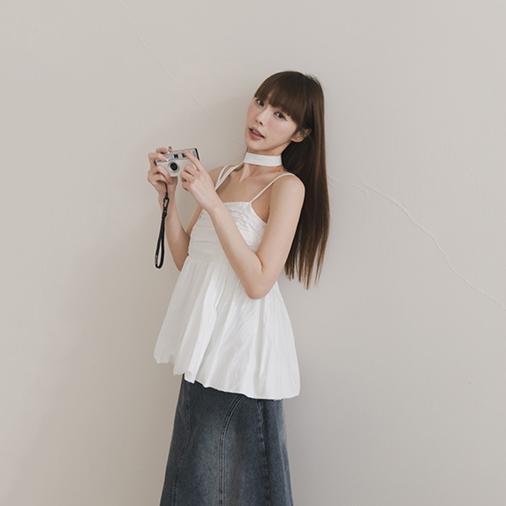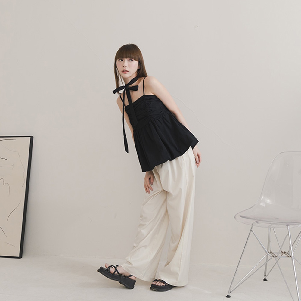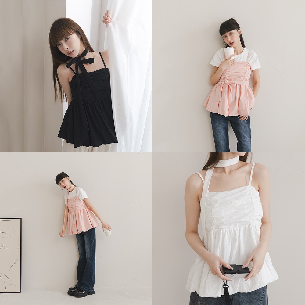 QUEENSHOP_ S 女裝 氣球下擺附領帶細肩背心罩衫 三色售 現+預 【01098864】黑|白|粉Tanks & CamisolesQUEENSHOP