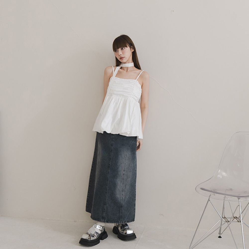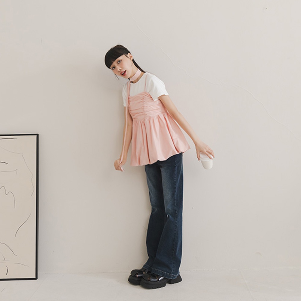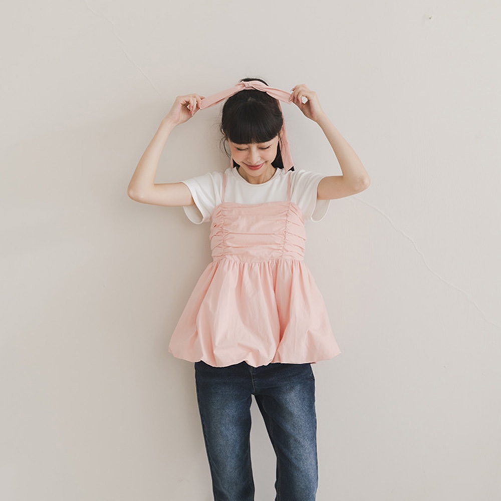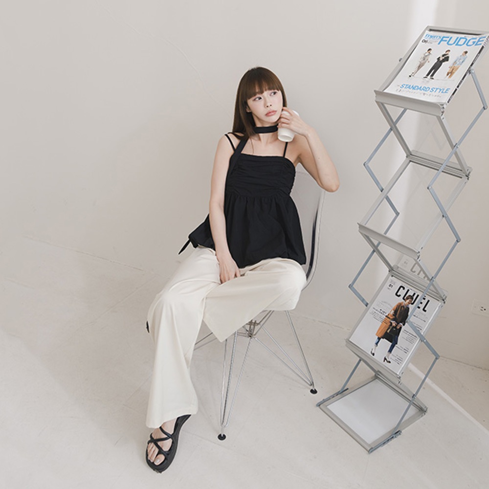 QUEENSHOP_ S 女裝 氣球下擺附領帶細肩背心罩衫 三色售 現+預 【01098864】黑|白|粉Tanks & CamisolesQUEENSHOP