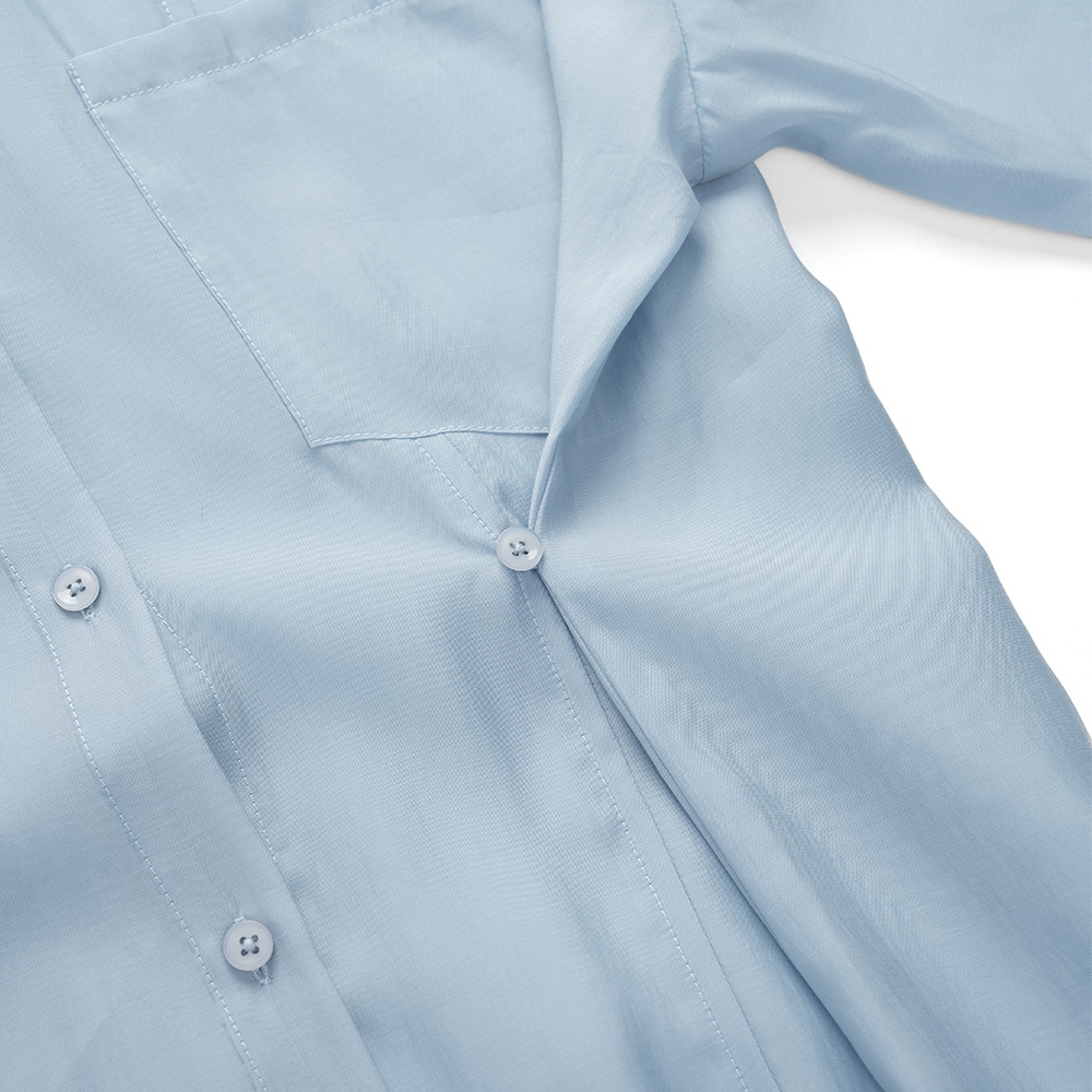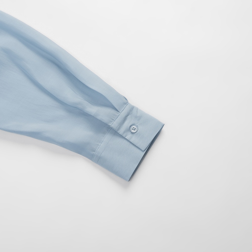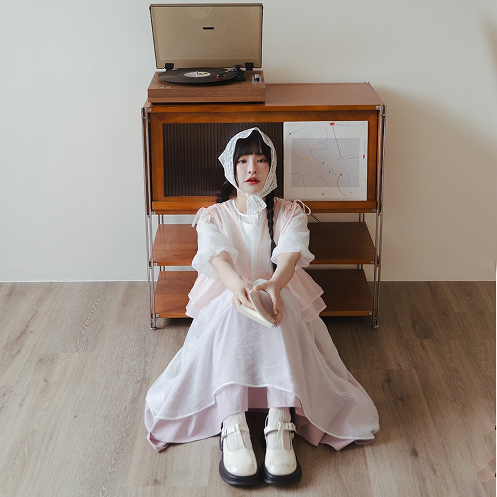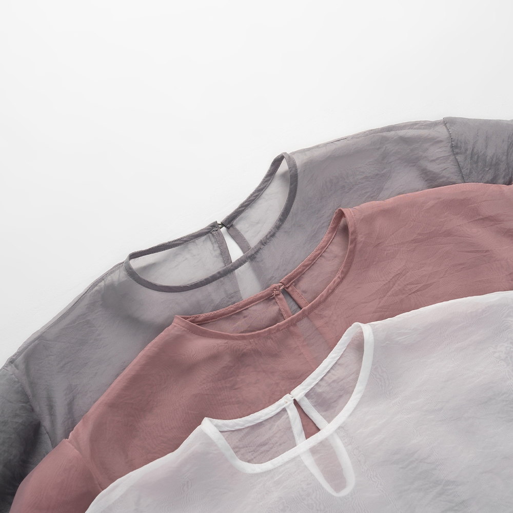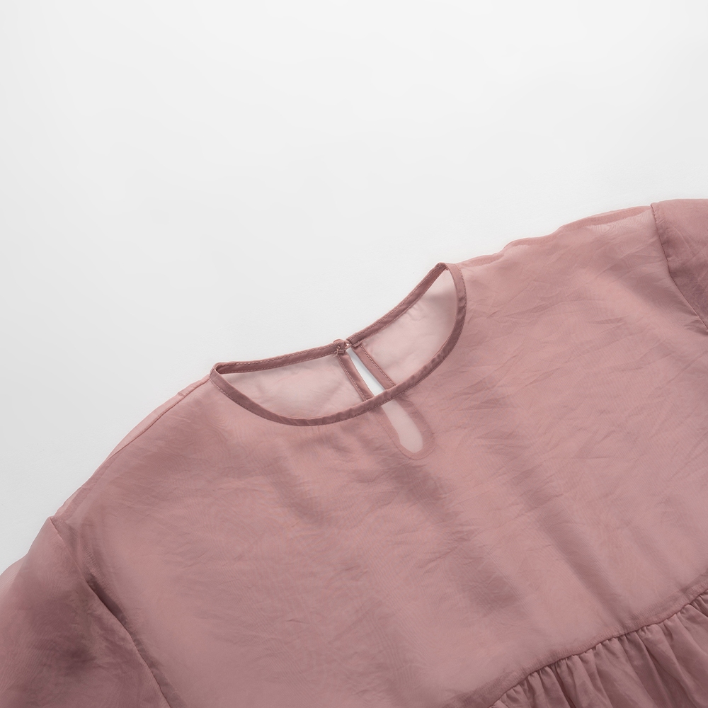 QUEENSHOP_ S 女裝 透膚腰細褶澎袖長外罩洋裝 三色售 現+預 【01098866】粉|米白|淺灰QUEENSHOP