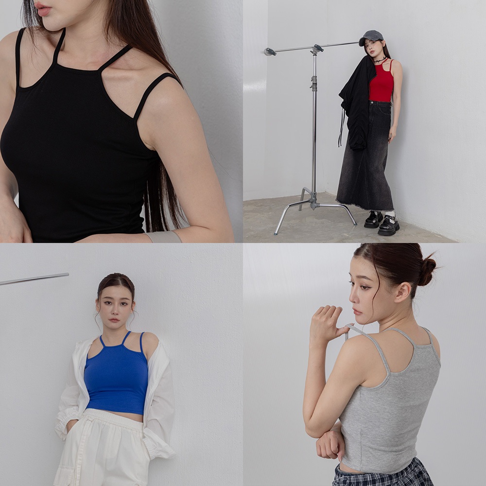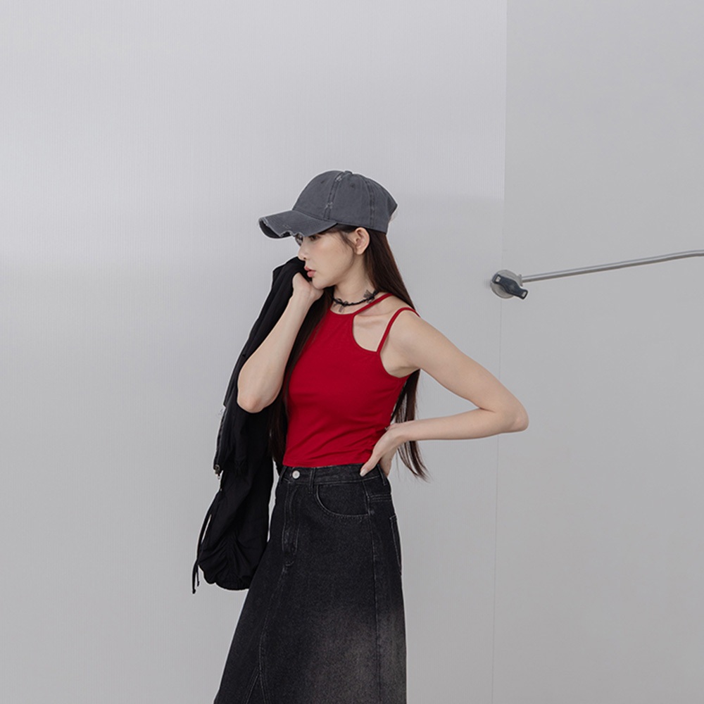 QUEENSHOP_ S 女裝 雙肩帶設計合身削肩背心 五色售 現+預 【01150453】黑|灰|白|紅|藍Tanks & CamisolesQUEENSHOP