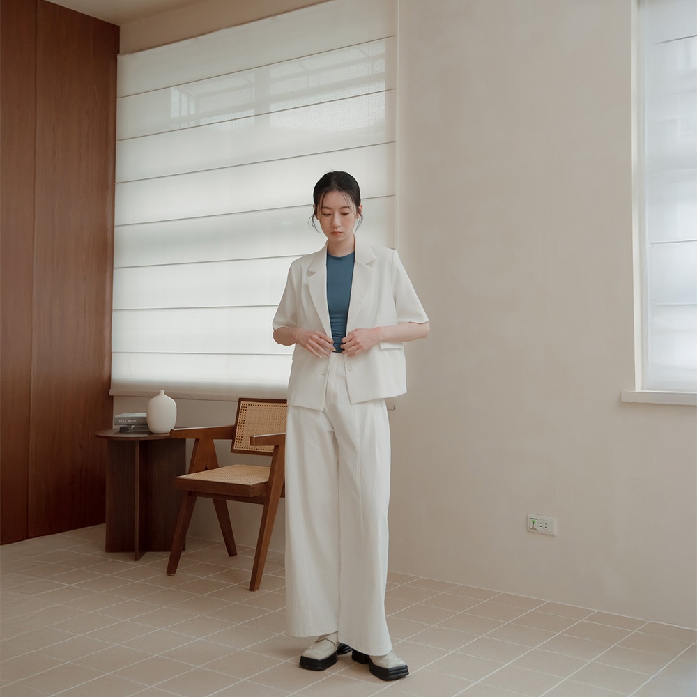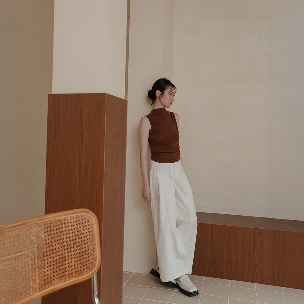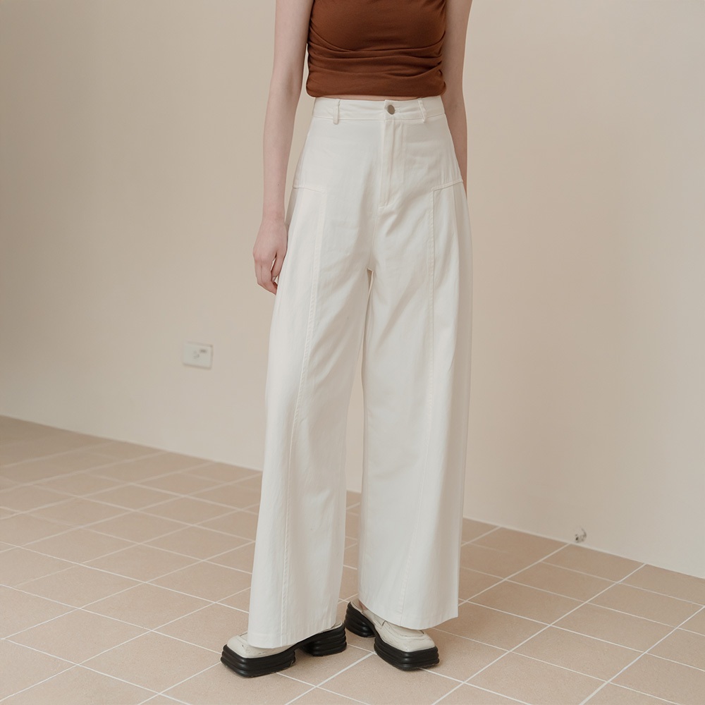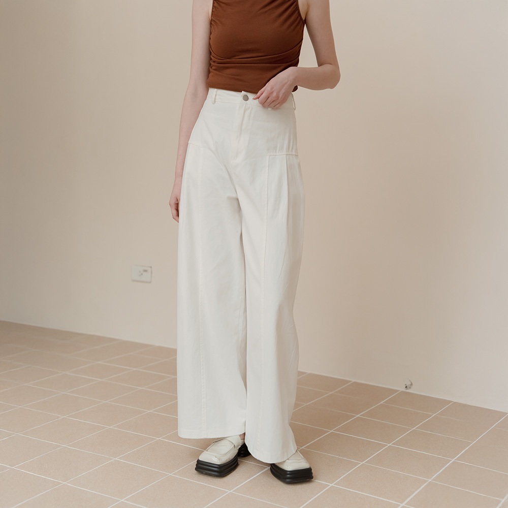 QUEENSHOP_ S 女裝 高腰側邊打褶造型寬版長褲-白 S/M/L 現+預 【04110576】白S|白M|白LPantsQUEENSHOP