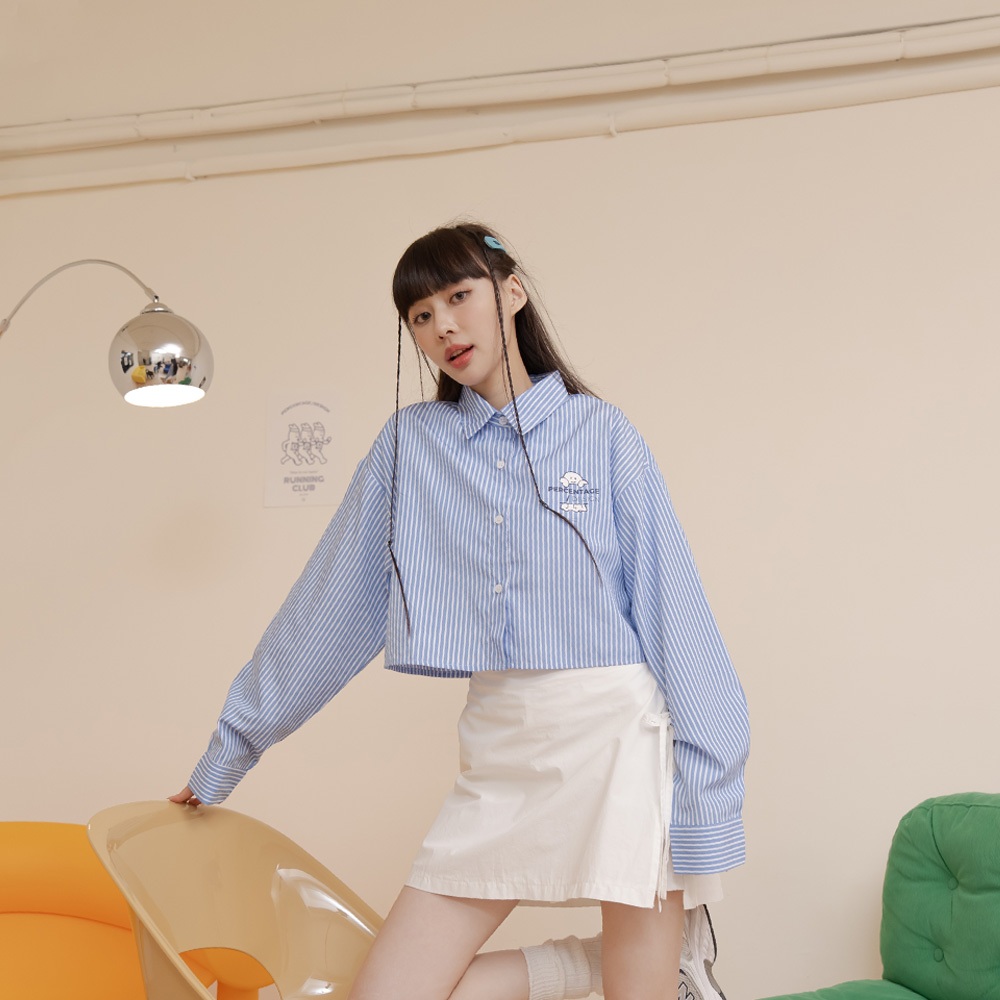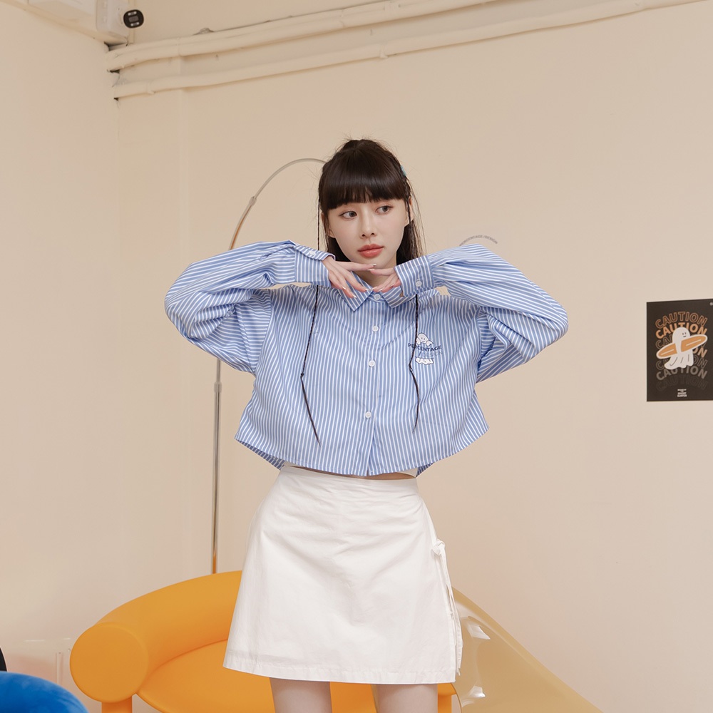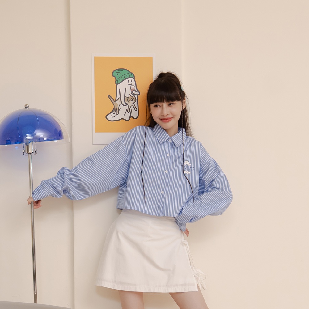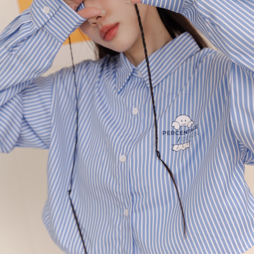 QUEENSHOP_ S 女裝 長袖 P/D幽靈 幽靈印圖短版條紋襯衫 現+預 【01025611】依賣場Shirts & BlousesQUEENSHOP