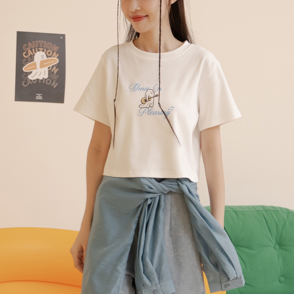QUEENSHOP_ S 女裝 短袖 P/D幽靈 吉他幽靈印圖短版上衣 兩色售 現+預 【01190255】黑|白T-shirtsQUEENSHOP