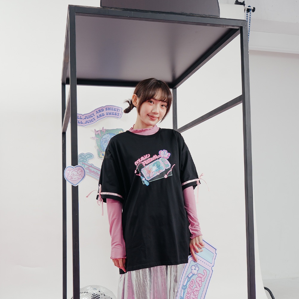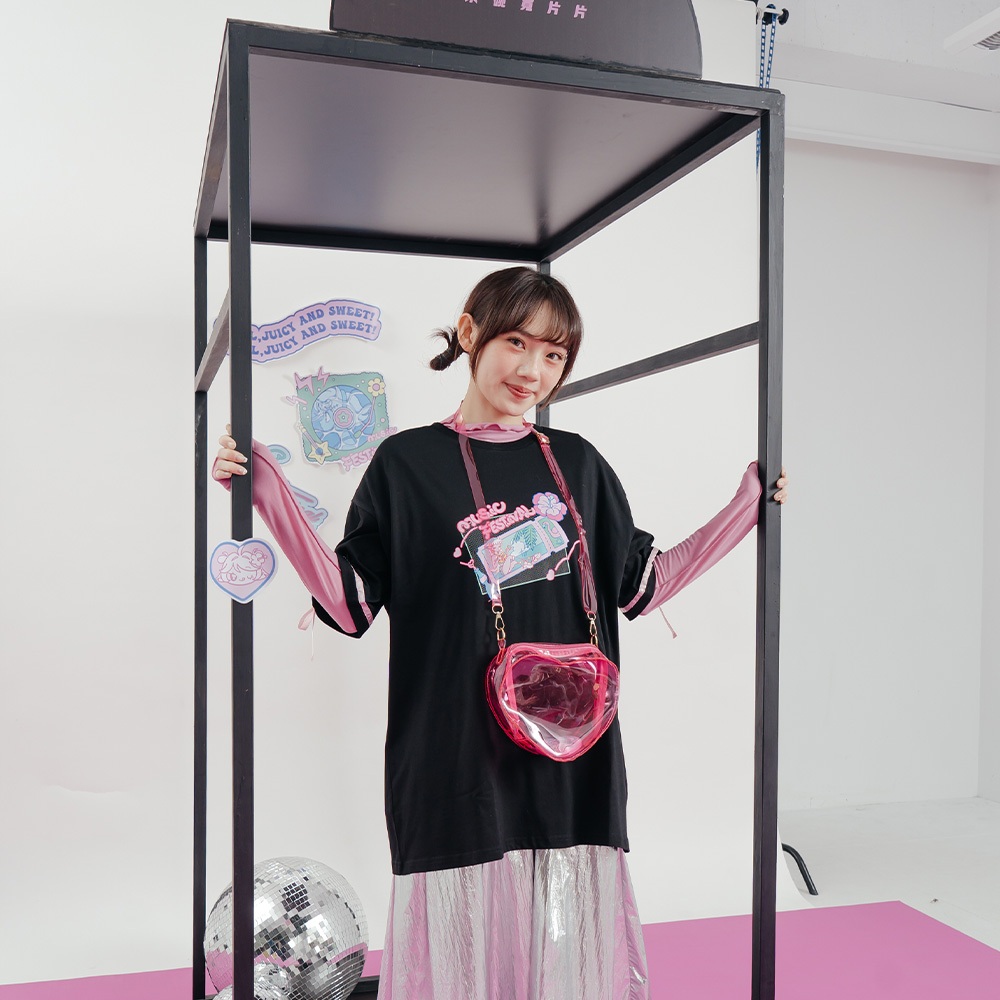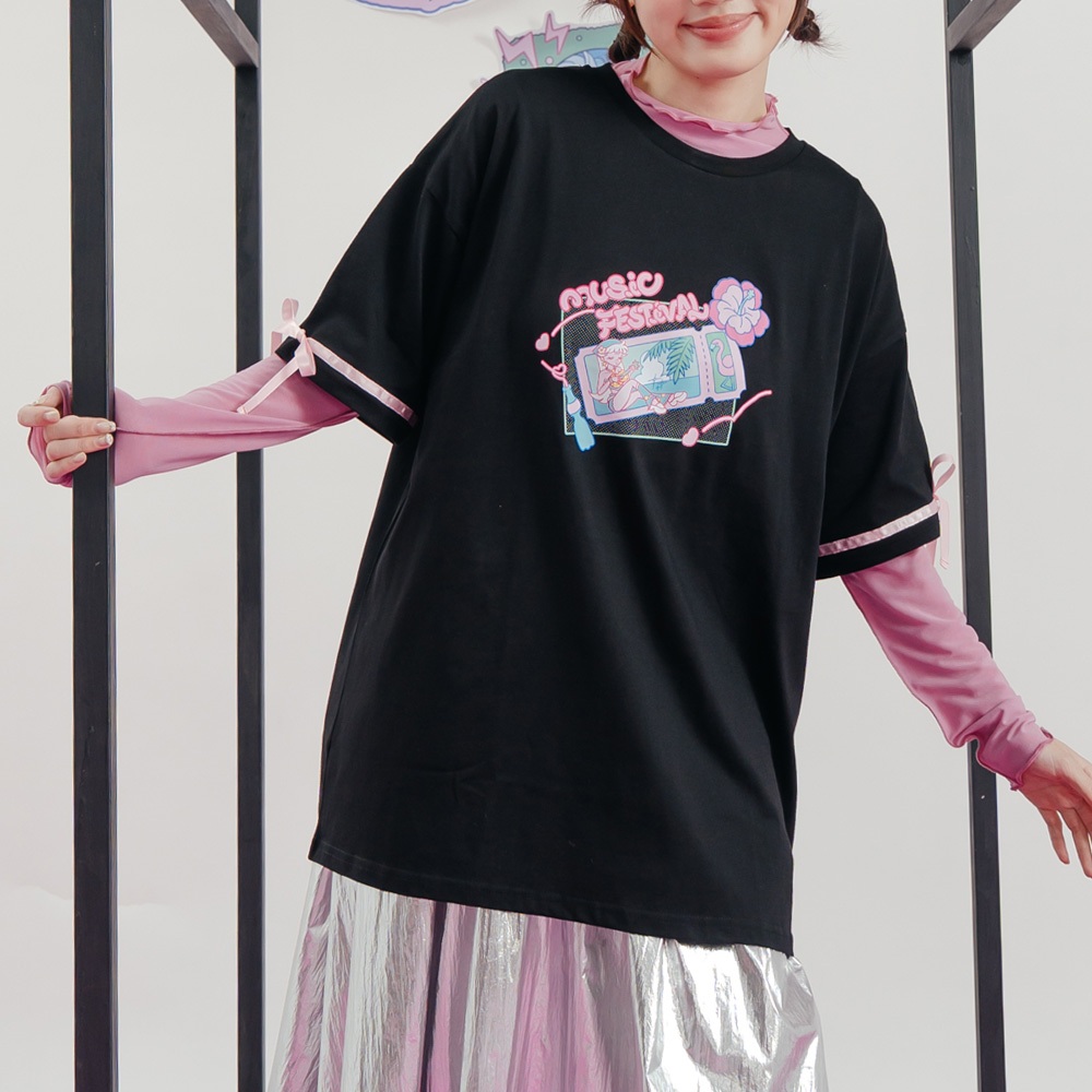 QUEENSHOP_ S 女裝 短袖 寬片片 袖綁帶設計印圖寬版上衣 現+預 【01190211】依賣場T-shirtsQUEENSHOP
