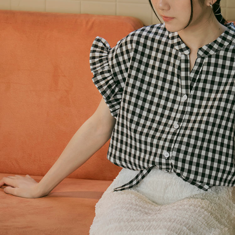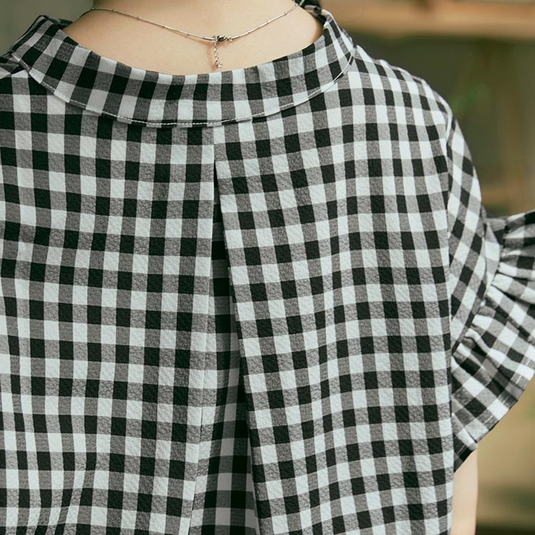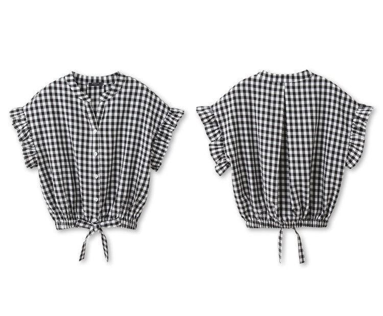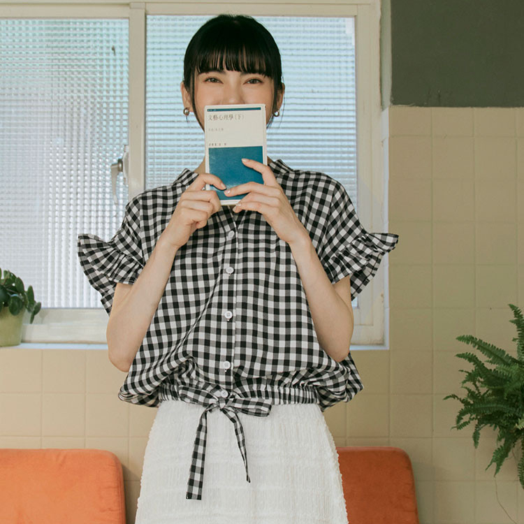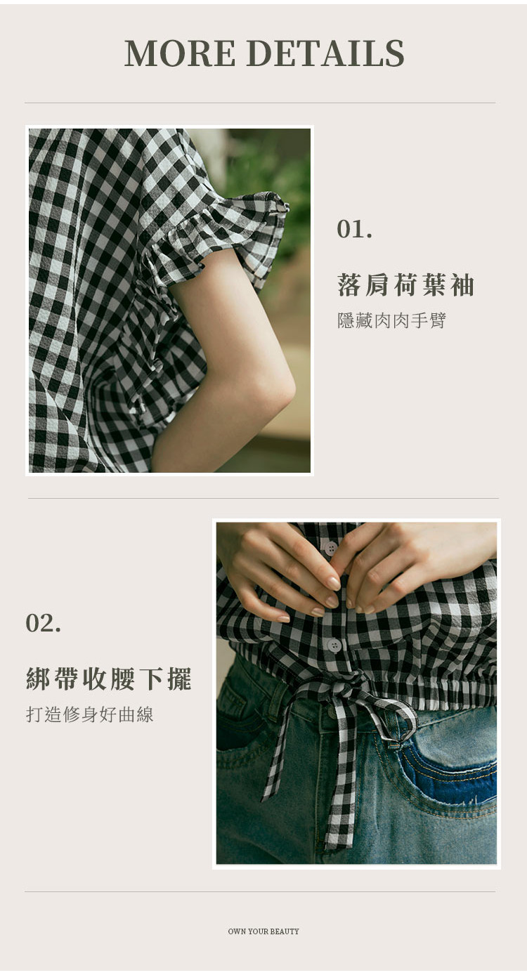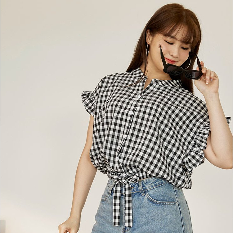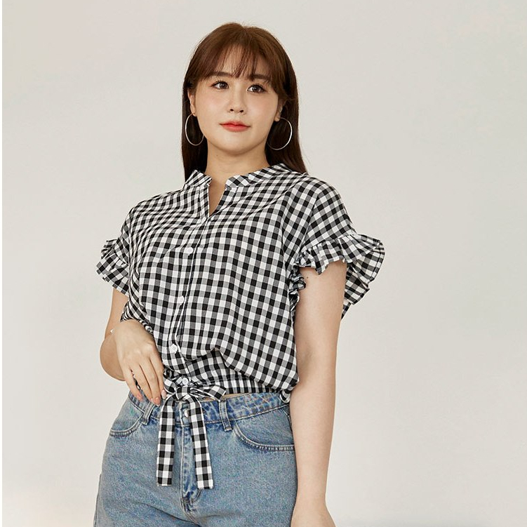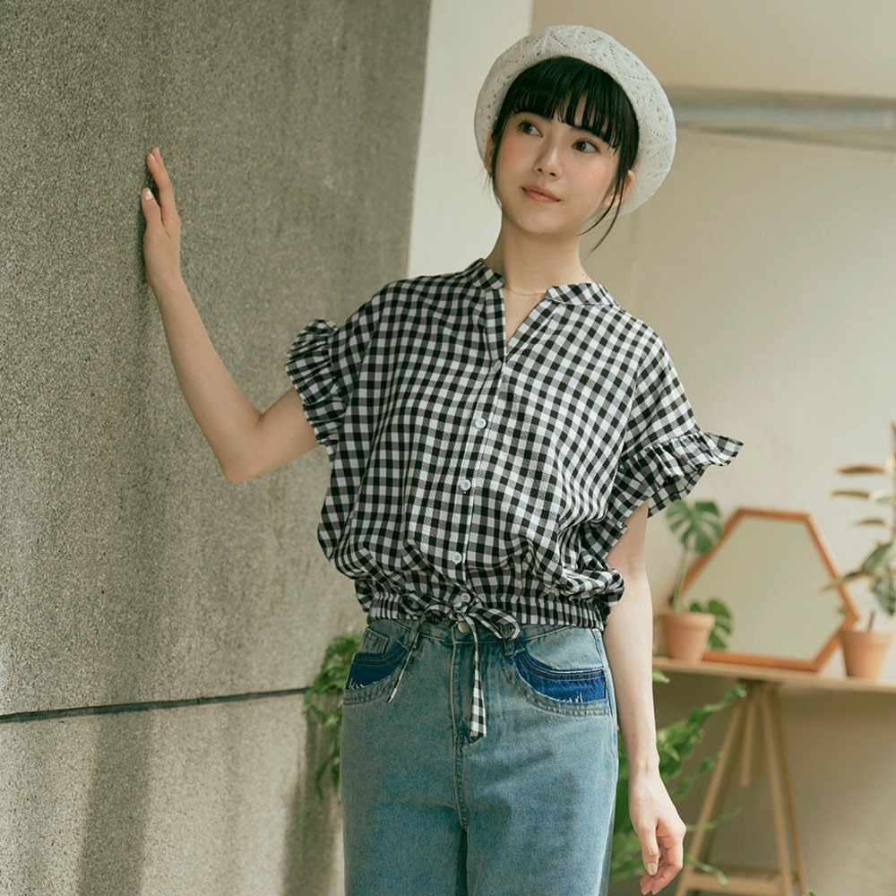 OB嚴選 格紋V領下擺鬆緊腰綁帶荷葉蝙蝠袖上衣 《AB19524》日系/大尺碼/現貨/女裝黑,F|黑,XL|黑,2L|黑,3LOthersOB嚴選官方旗艦店