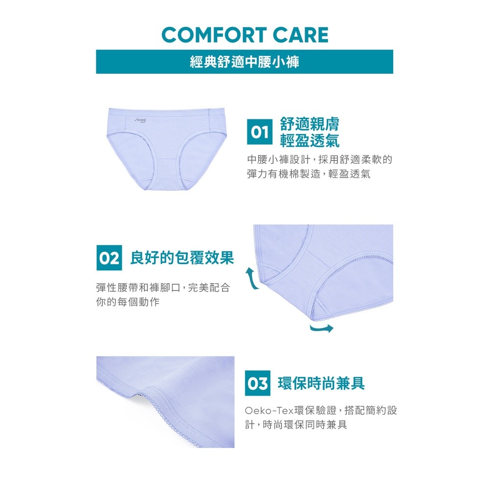 sloggi-COMFORT CARE經典舒適中腰小褲 韋奇伍德瓷藍|76R473 65M|L|ELPantiessloggi 官方旗艦店