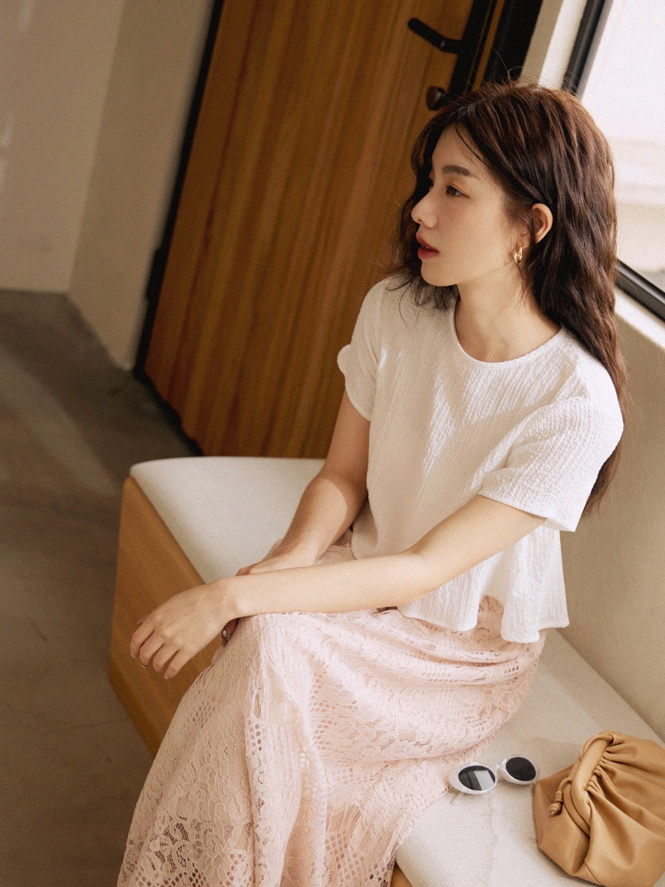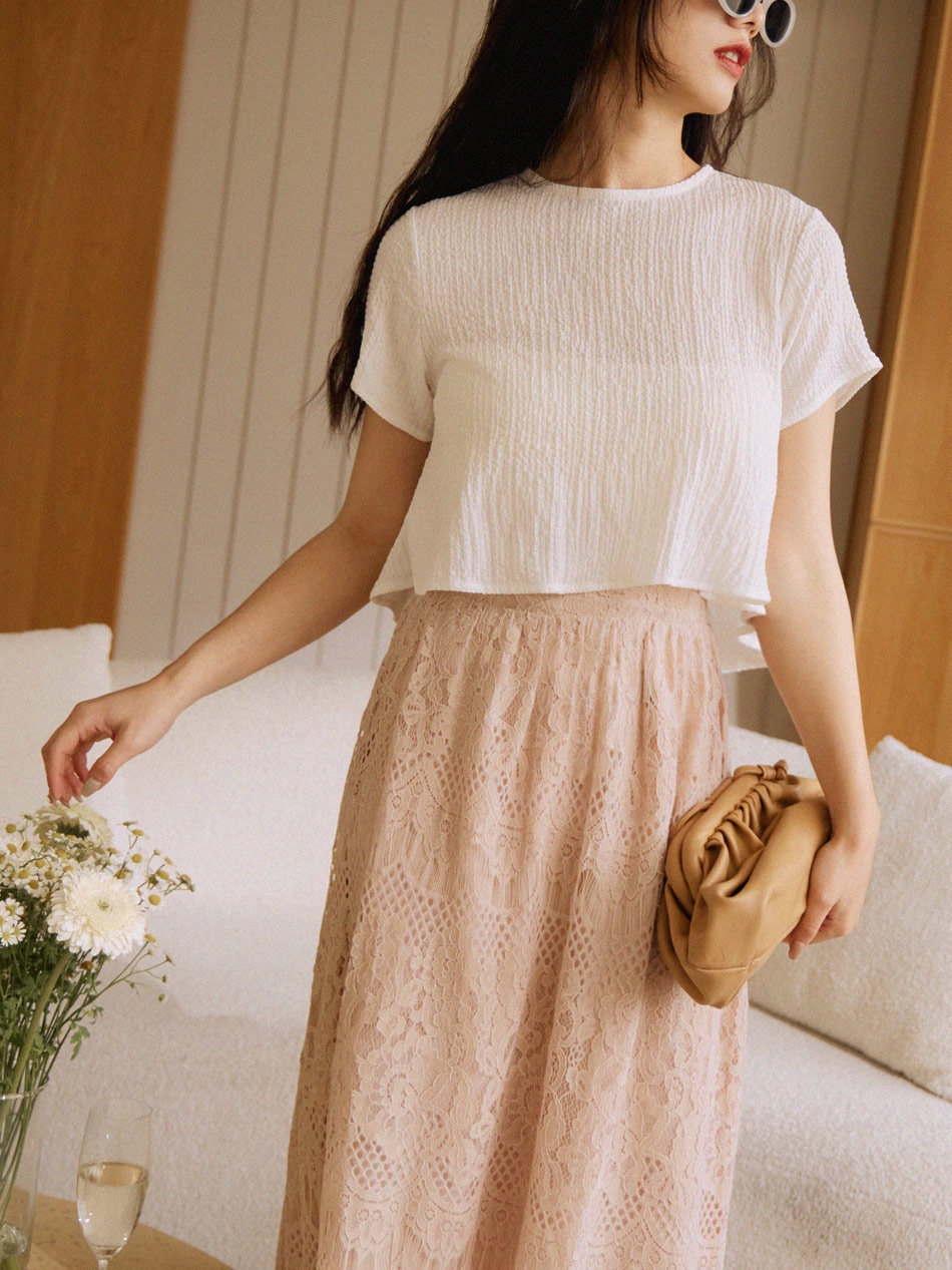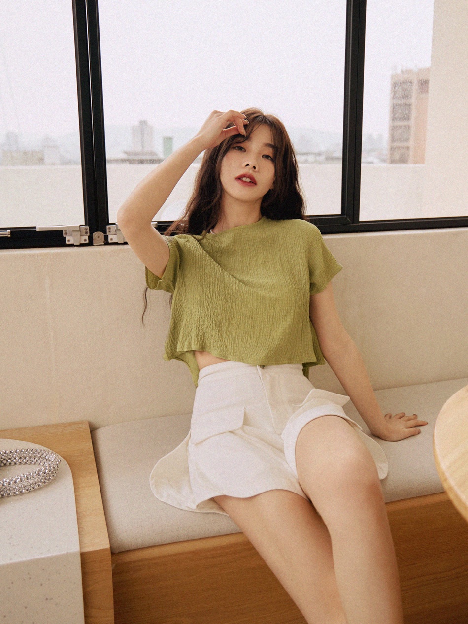 OB嚴選 紋理前短後長傘襬短袖短版上衣 《AB18276》現貨/女裝/時髦果綠,S|果綠,M|果綠,L|果綠,XL|白,S|白,M|白,L|白,2L|果綠,2L|白,XL|白,3L|果綠,3LT-shirtsOB嚴選官方旗艦店