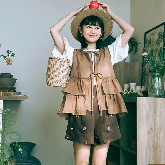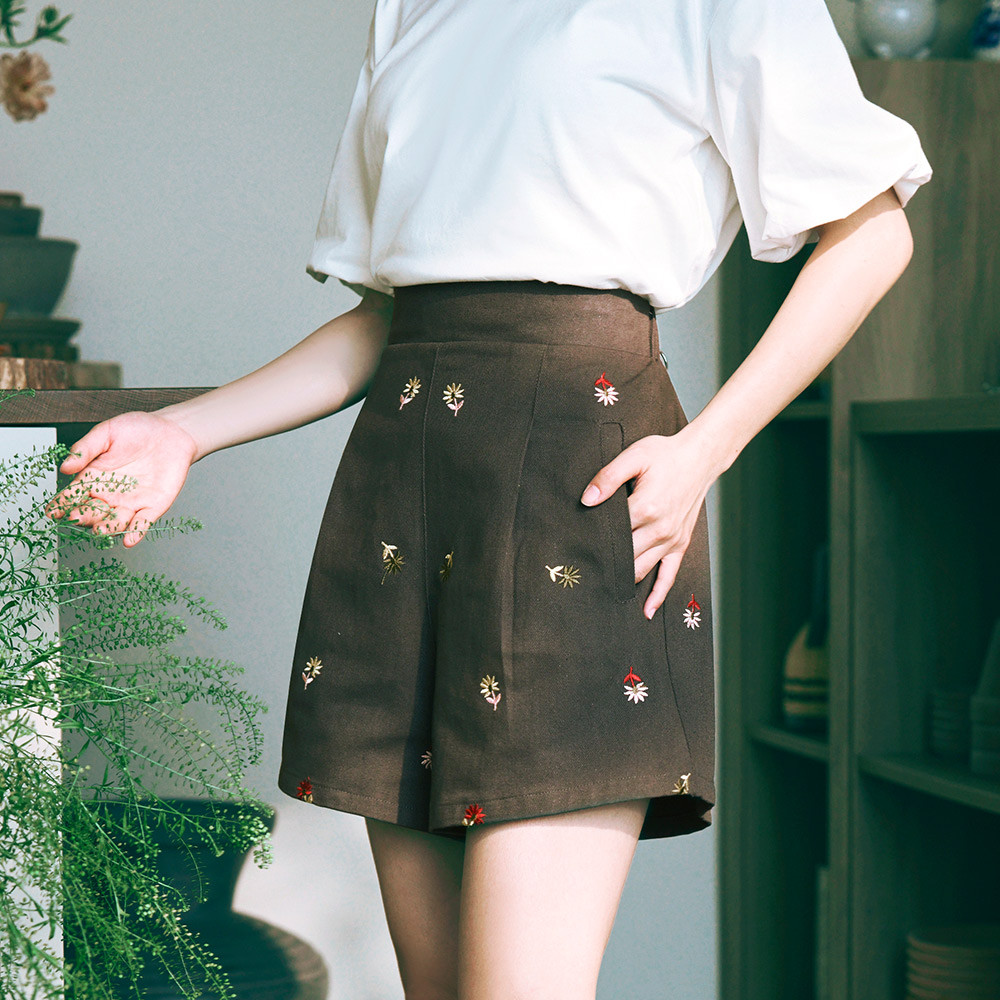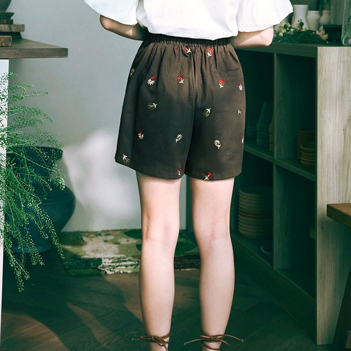 OB嚴選 日系純棉花卉刺繡打摺短褲 《BA7803》日系/大尺碼/現貨/女裝深灰,M|深灰,L|深灰,XL|深灰,2L|深灰,3L|象牙白,M|象牙白,L|象牙白,XL|象牙白,2L|象牙白,3LShortsOB嚴選官方旗艦店