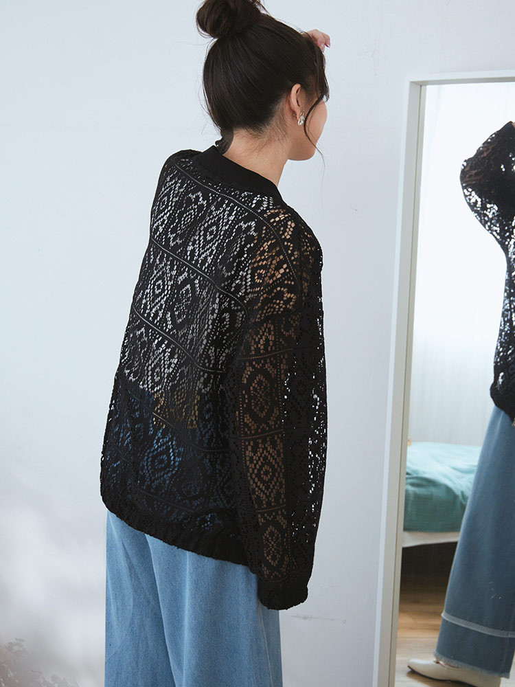 OB嚴選 日系透肌感鏤空蕾絲雕花拉鍊外套 《EA3756》杏,F|杏,XL|杏,2L|杏,3L|黑,F|黑,XL|黑,2L|黑,3LWinter Jackets & CoatsOB嚴選官方旗艦店