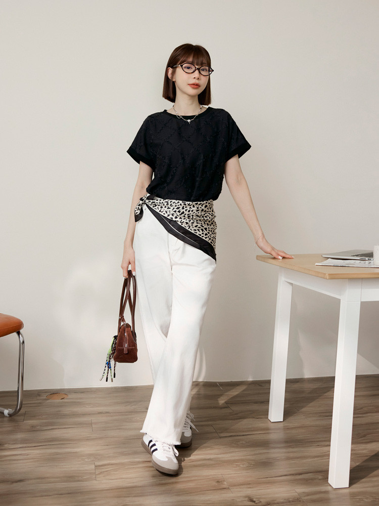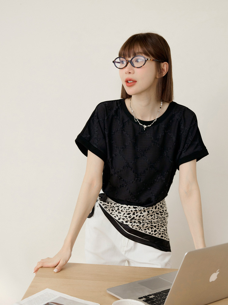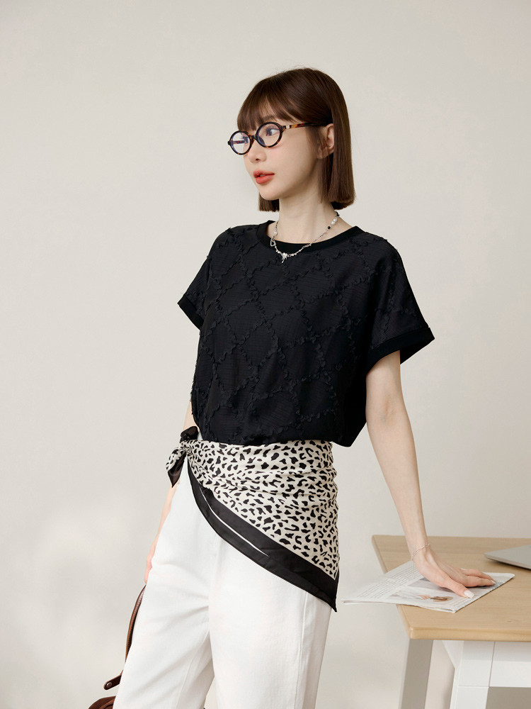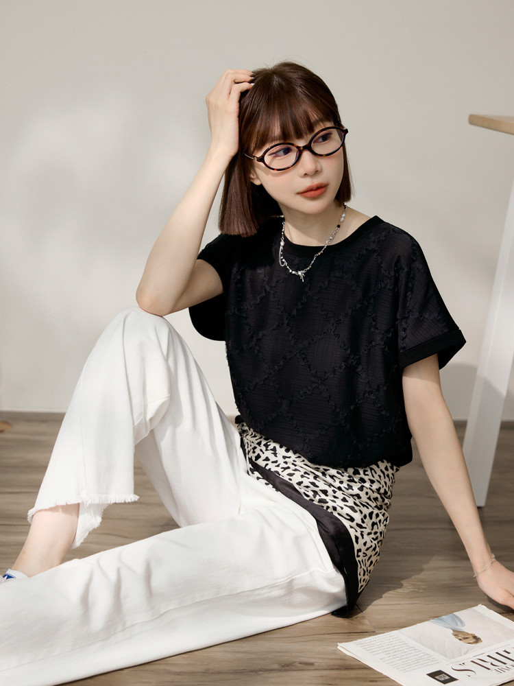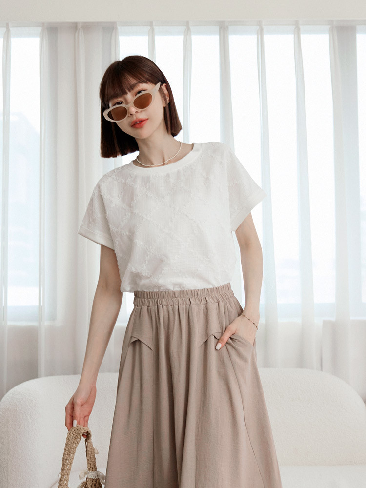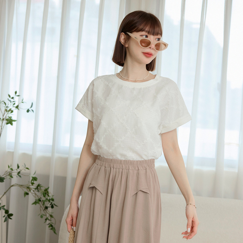 OB嚴選 立體菱格緹花棉質短袖上衣 《AB20351》白,M|白,L|白,XL|白,2L|白,3L|白,4L|黑,M|黑,L|黑,XL|黑,2L|黑,3L|黑,4LT-shirtsOB嚴選官方旗艦店