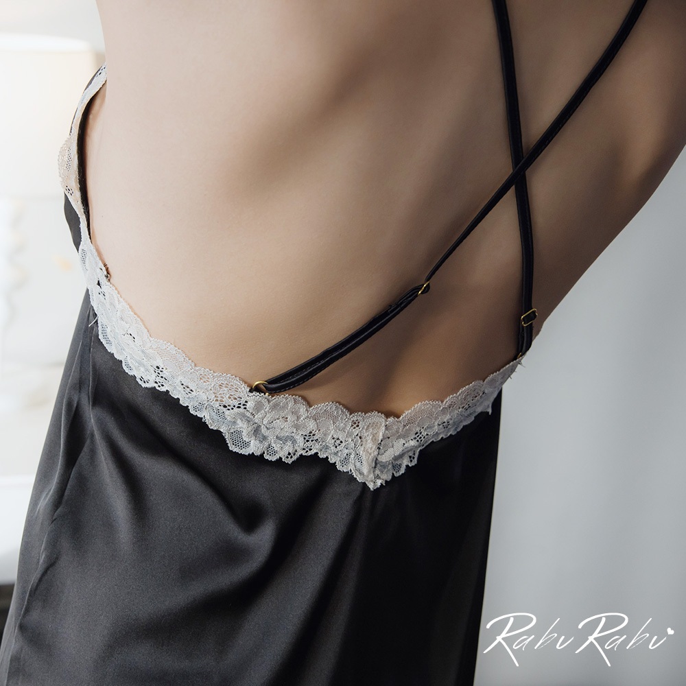 【Rabu Rabu】情慾協奏曲 絲滑緞面性感開衩睡衣 C055 (黑)黑,M|黑,LNight DressesRabuRabu|品牌旗艦店
