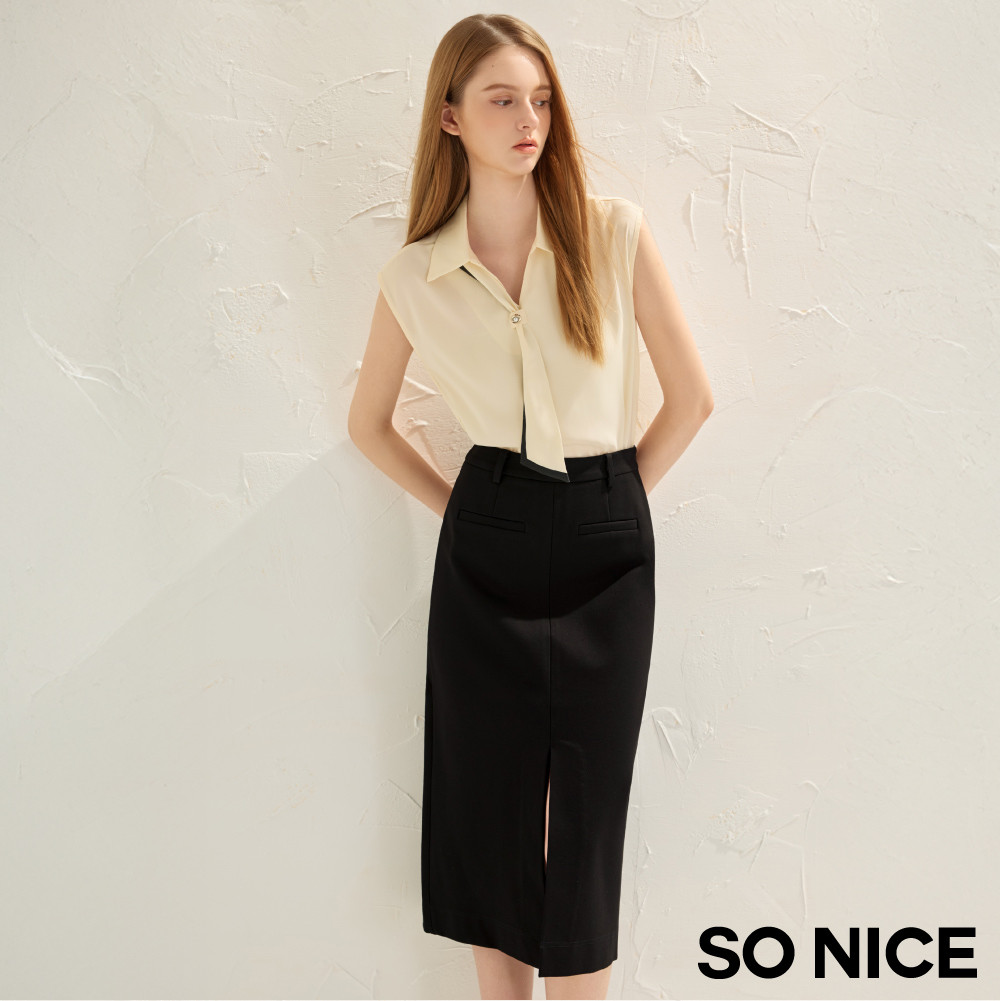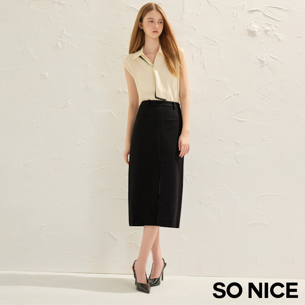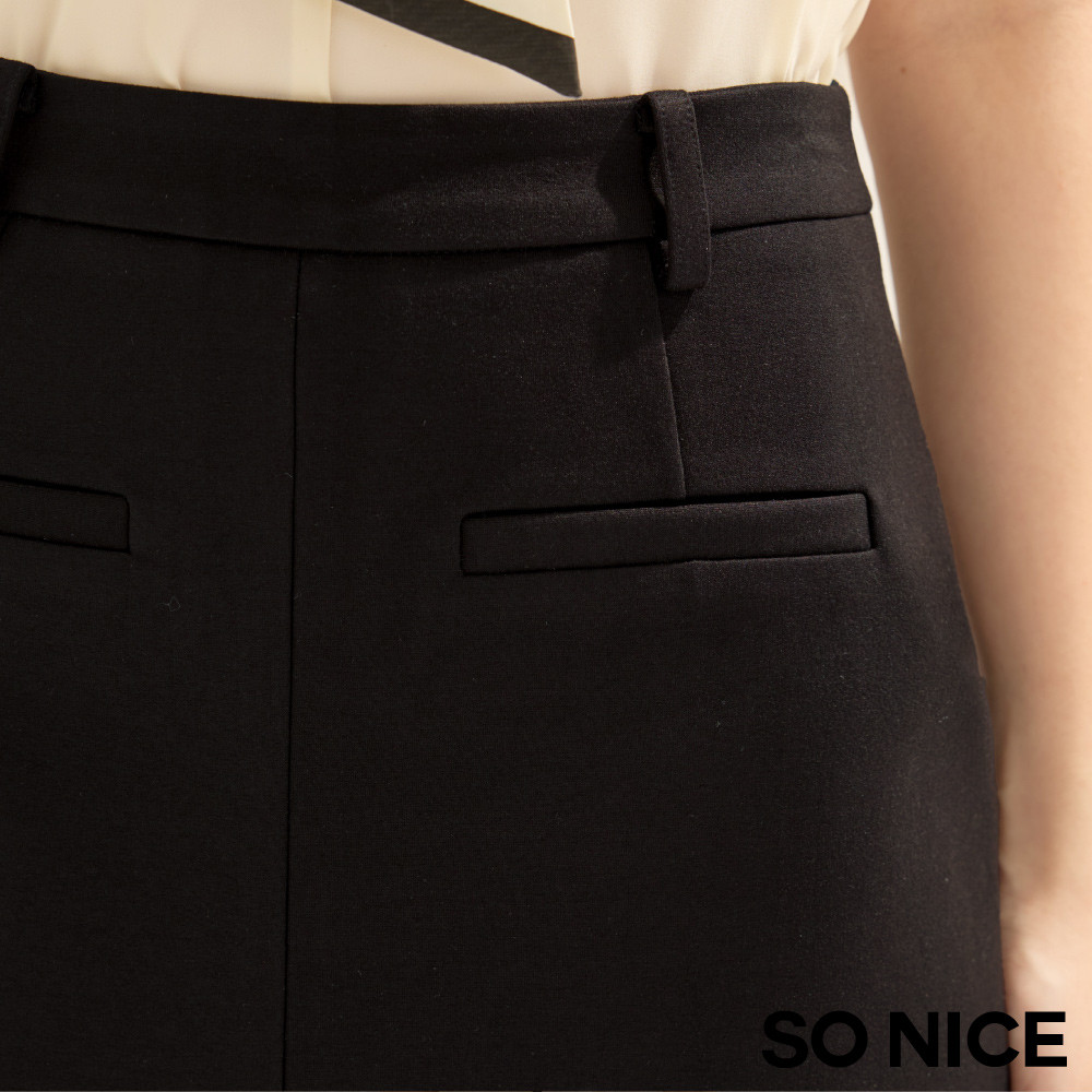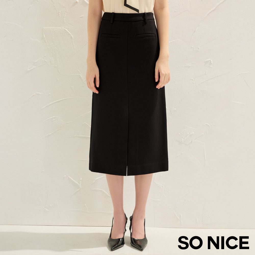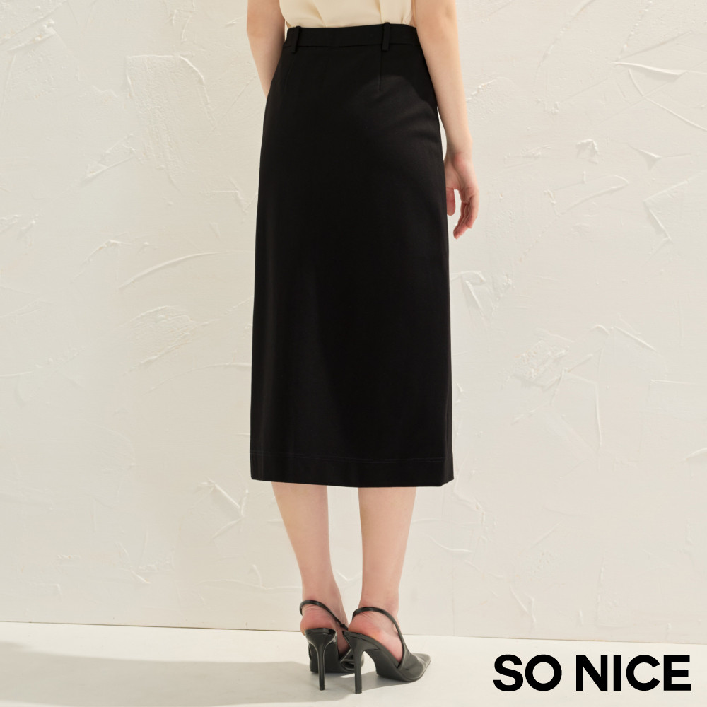 SO NICE 都會前開衩顯瘦不易皺羅馬布長裙|都會時尚女裝【75543005】黑,34(XS)|黑,36(S)|黑,38(M)|黑,40(L)|黑,42(XL)SO NICE 官方旗艦店