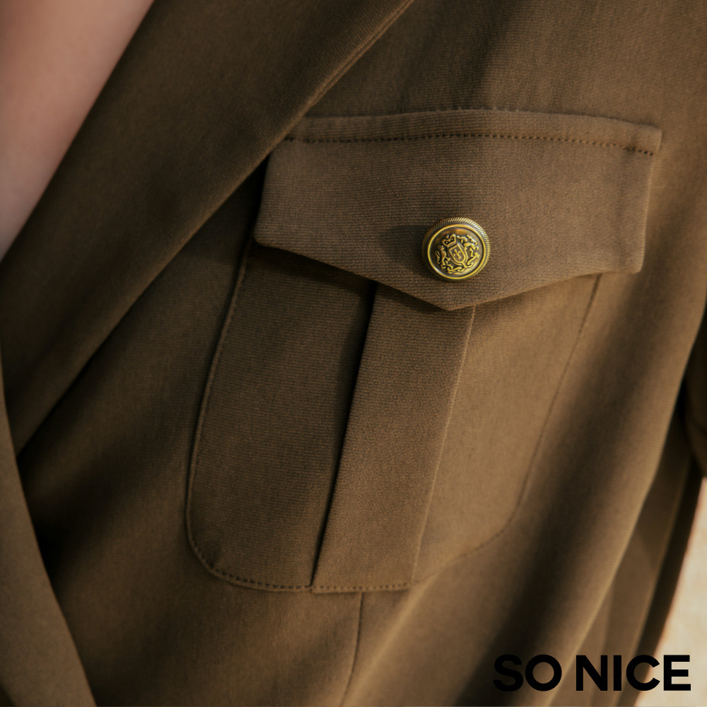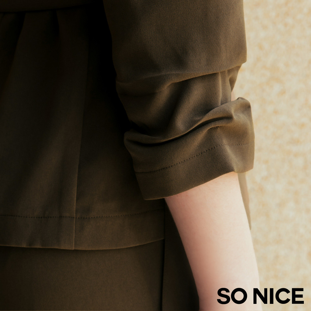SO NICE【醋酸系列】橄欖綠高智感工裝口袋收腰七分袖不易皺西裝外套|都會時尚女裝【29545004】暗綠,34(XS)|暗綠,36(S)|暗綠,38(M)|暗綠,40(L)|暗綠,42(XL)BlazersSO NICE 官方旗艦店