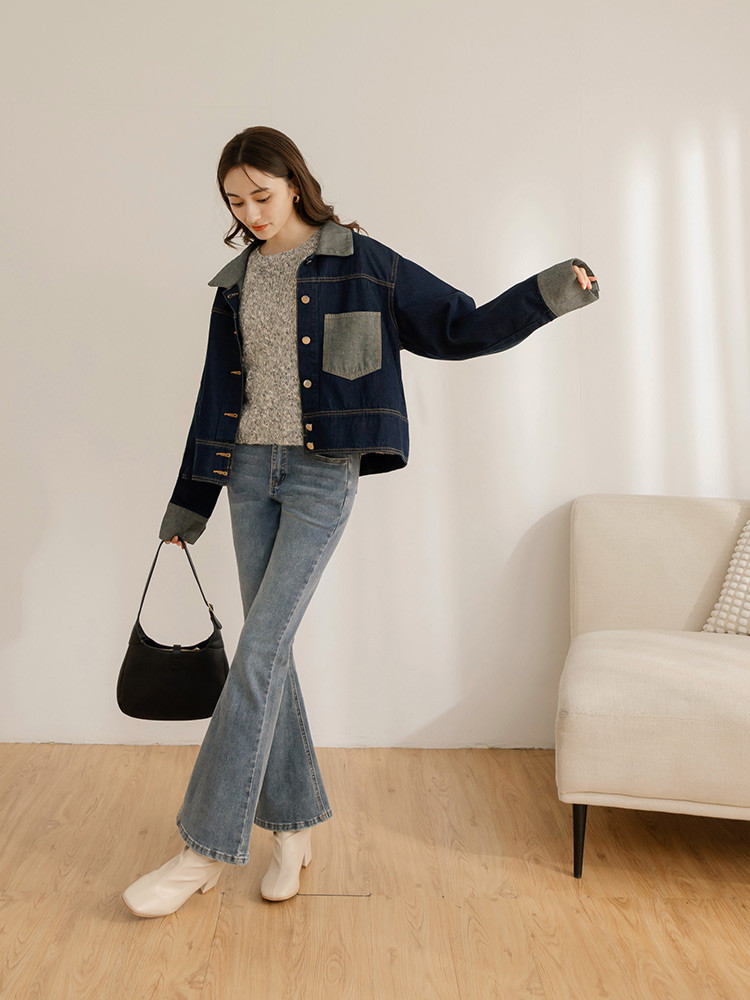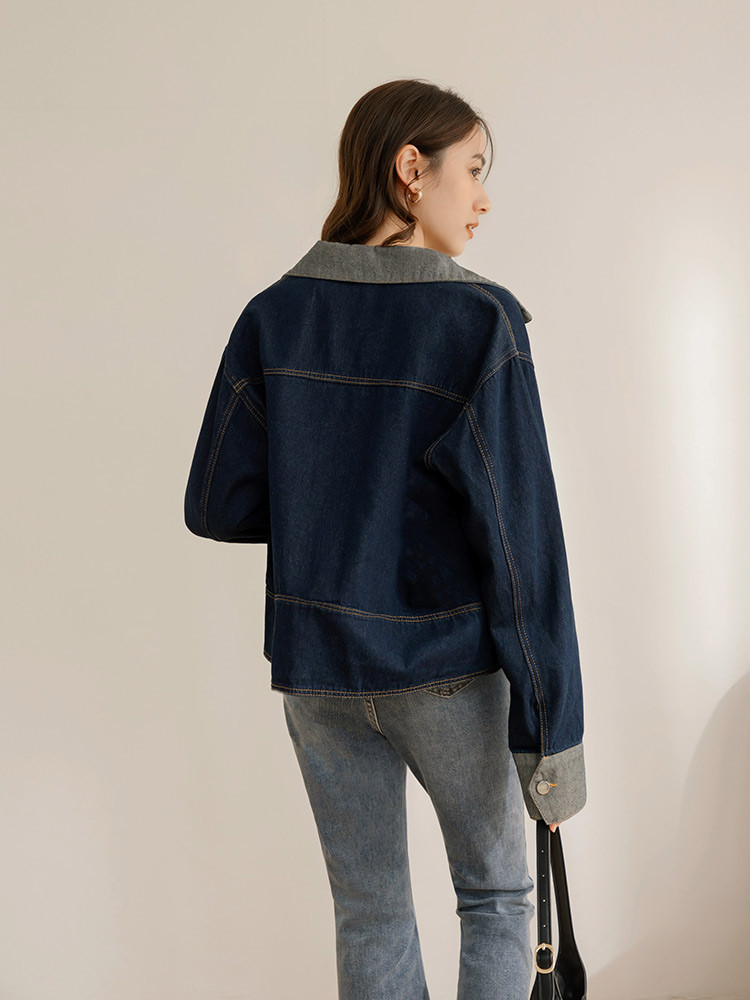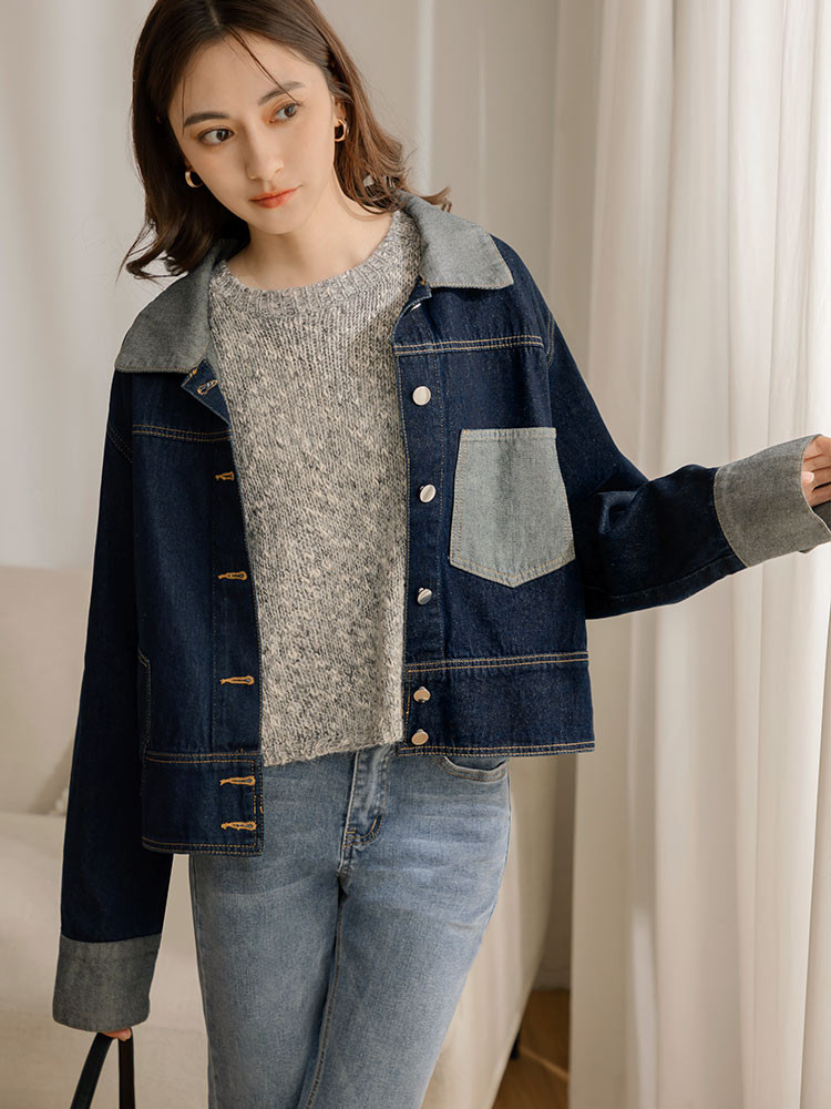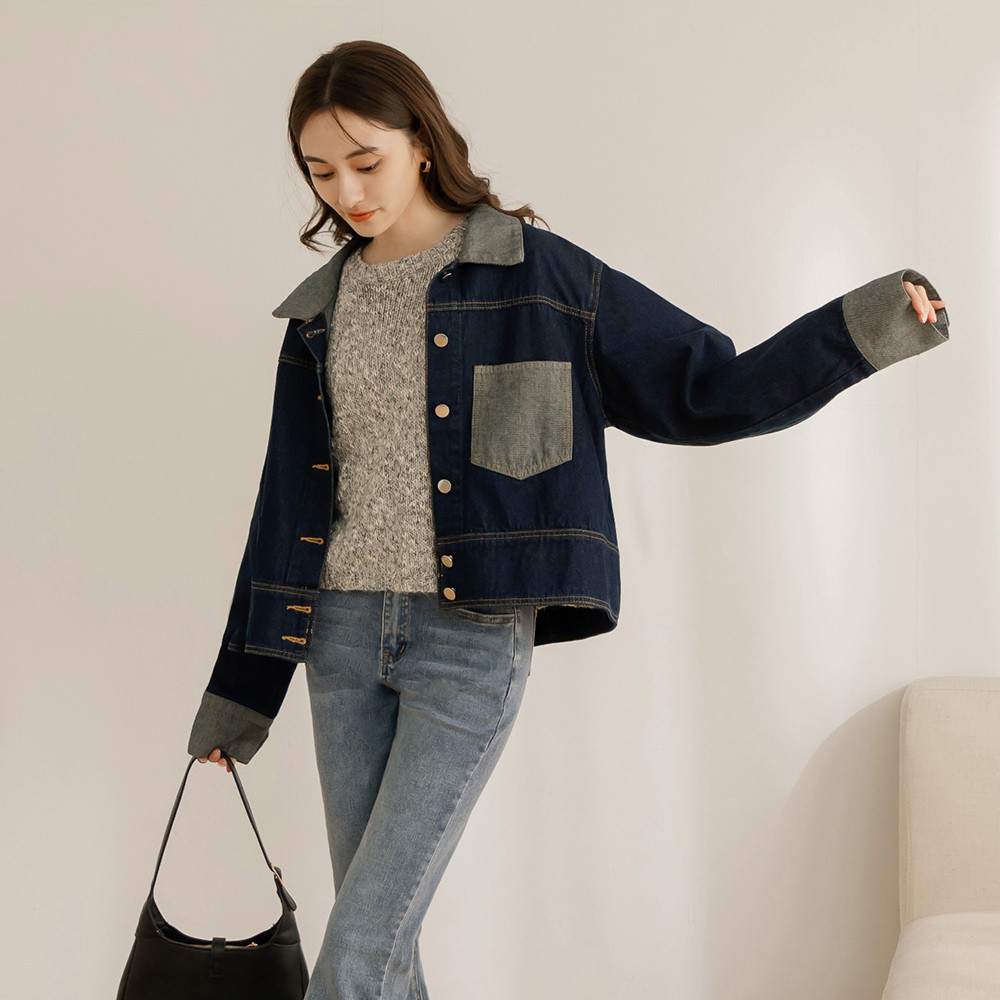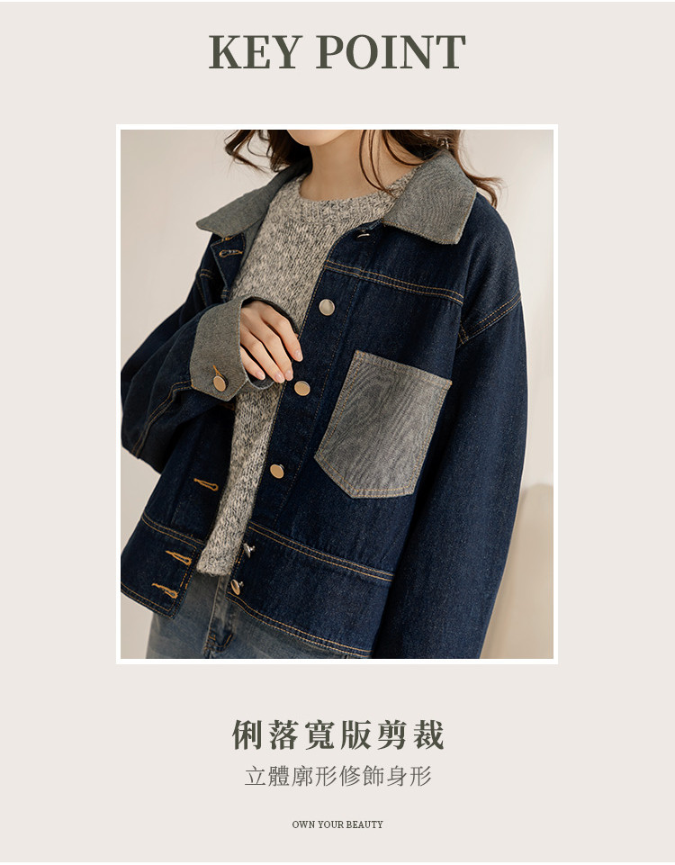 OB嚴選 配色剪接不對稱口袋寬版牛仔外套 《EA3685》大尺碼/女裝/現貨深藍,F|深藍,2LWinter Jackets & CoatsOB嚴選官方旗艦店