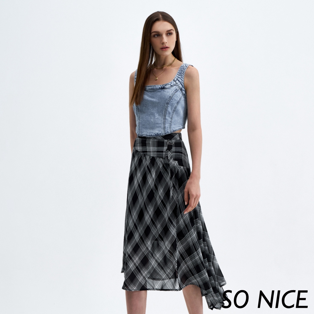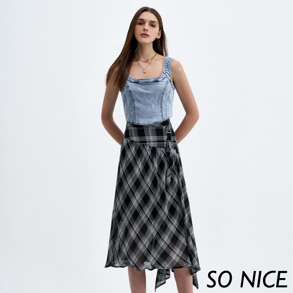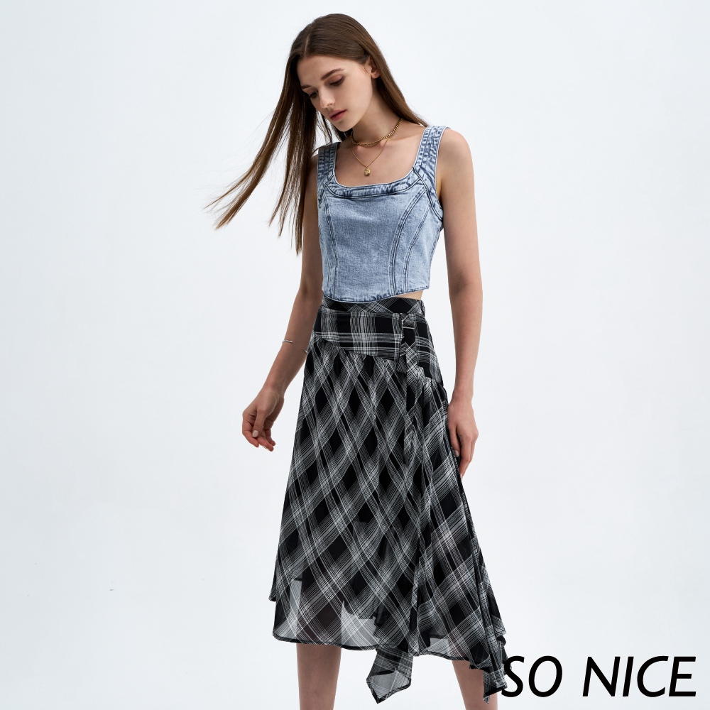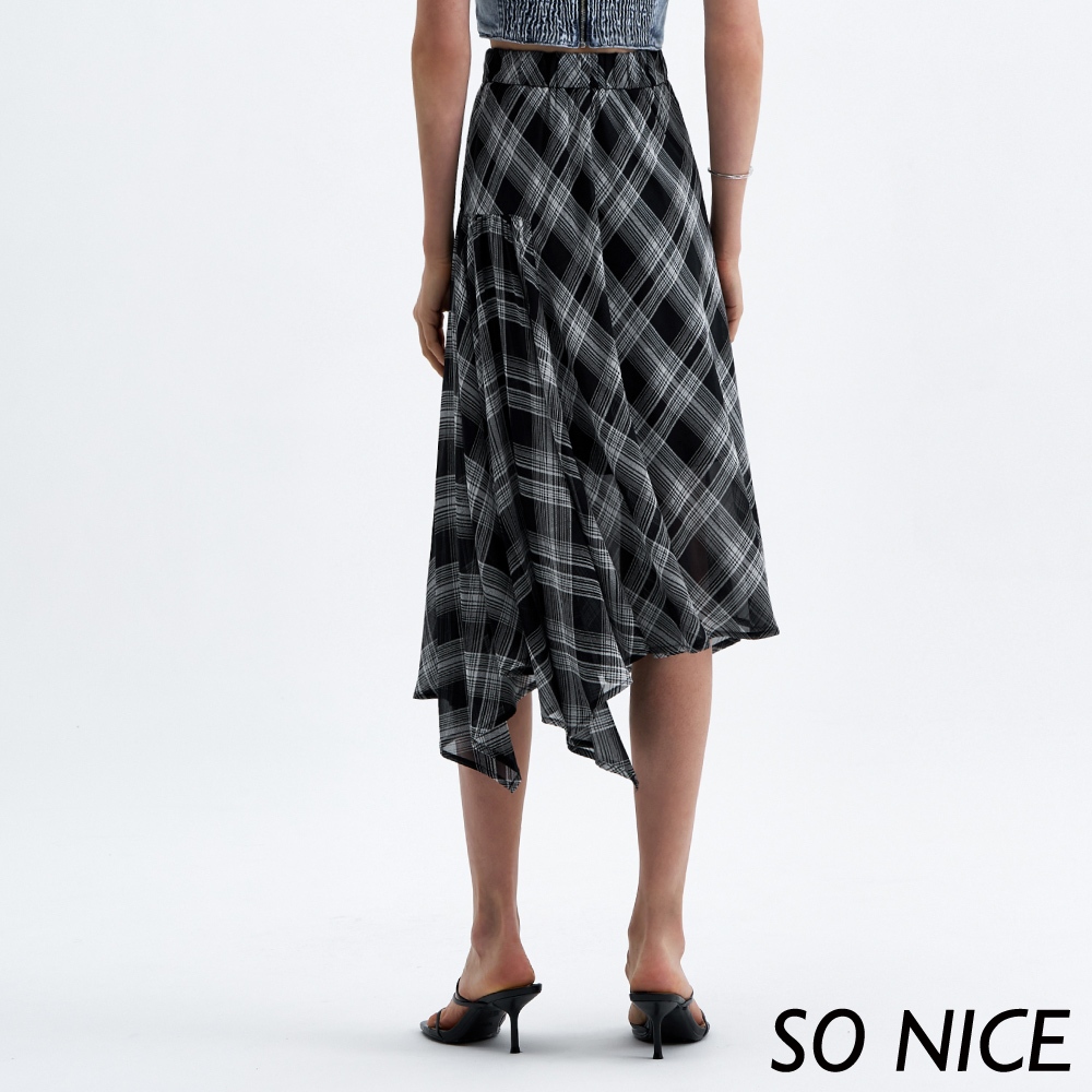 SO NICE【特惠】優雅格紋不規則長裙|都會時尚女裝【29333009】