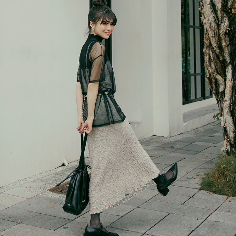 SO NICE【特惠】優雅格紋不規則長裙|都會時尚女裝【29333009】黑,40(L)|黑,34(XS)|黑,36(S)|黑,38(M)SO NICE 官方旗艦店