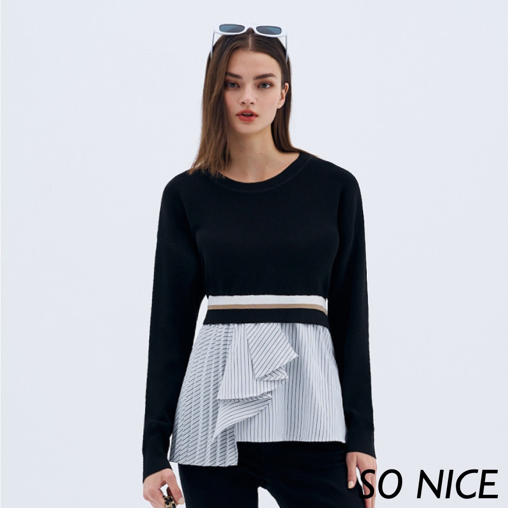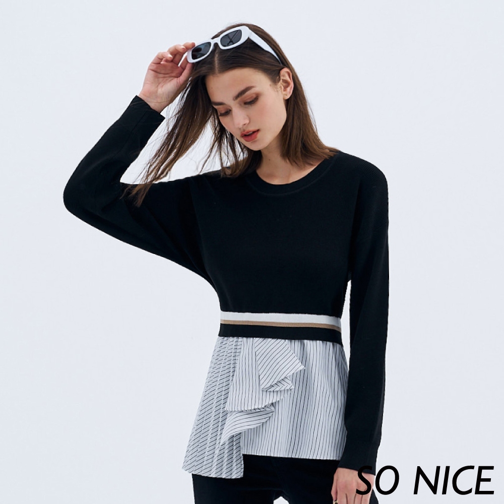 SO NICE【特惠】假兩件針織拼接襯衫上衣|都會時尚女裝【58340021】黑,34(XS)|黑,36(S)|黑,38(M)|黑,40(L)|黑,42(XL)Shirts & BlousesSO NICE 官方旗艦店