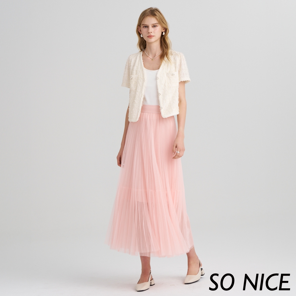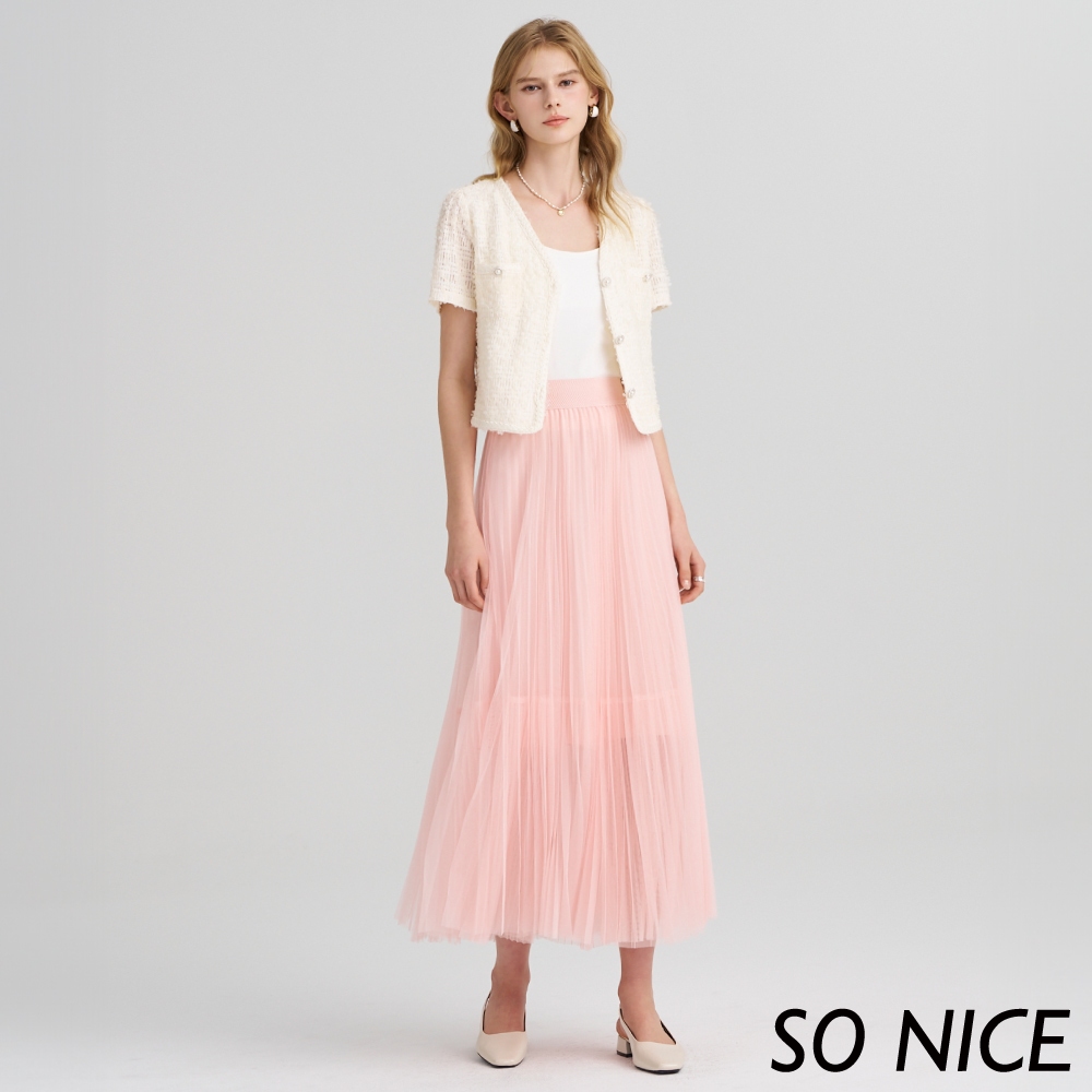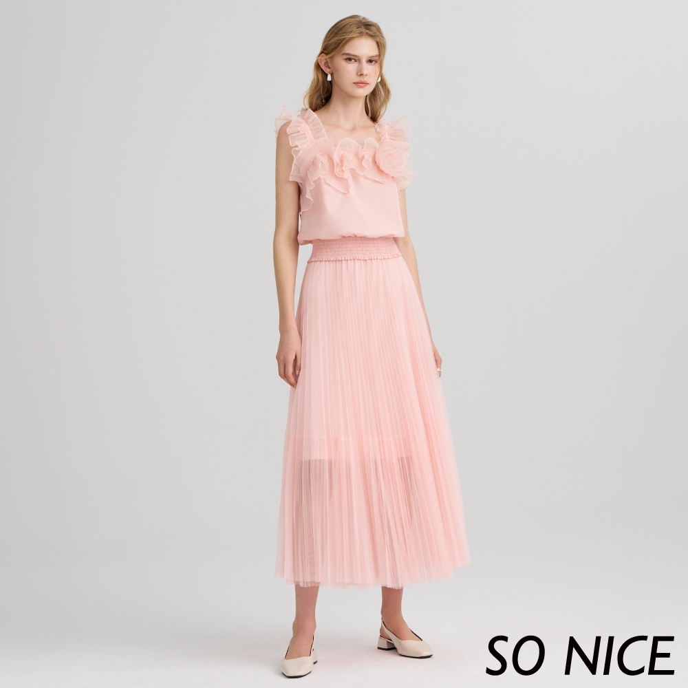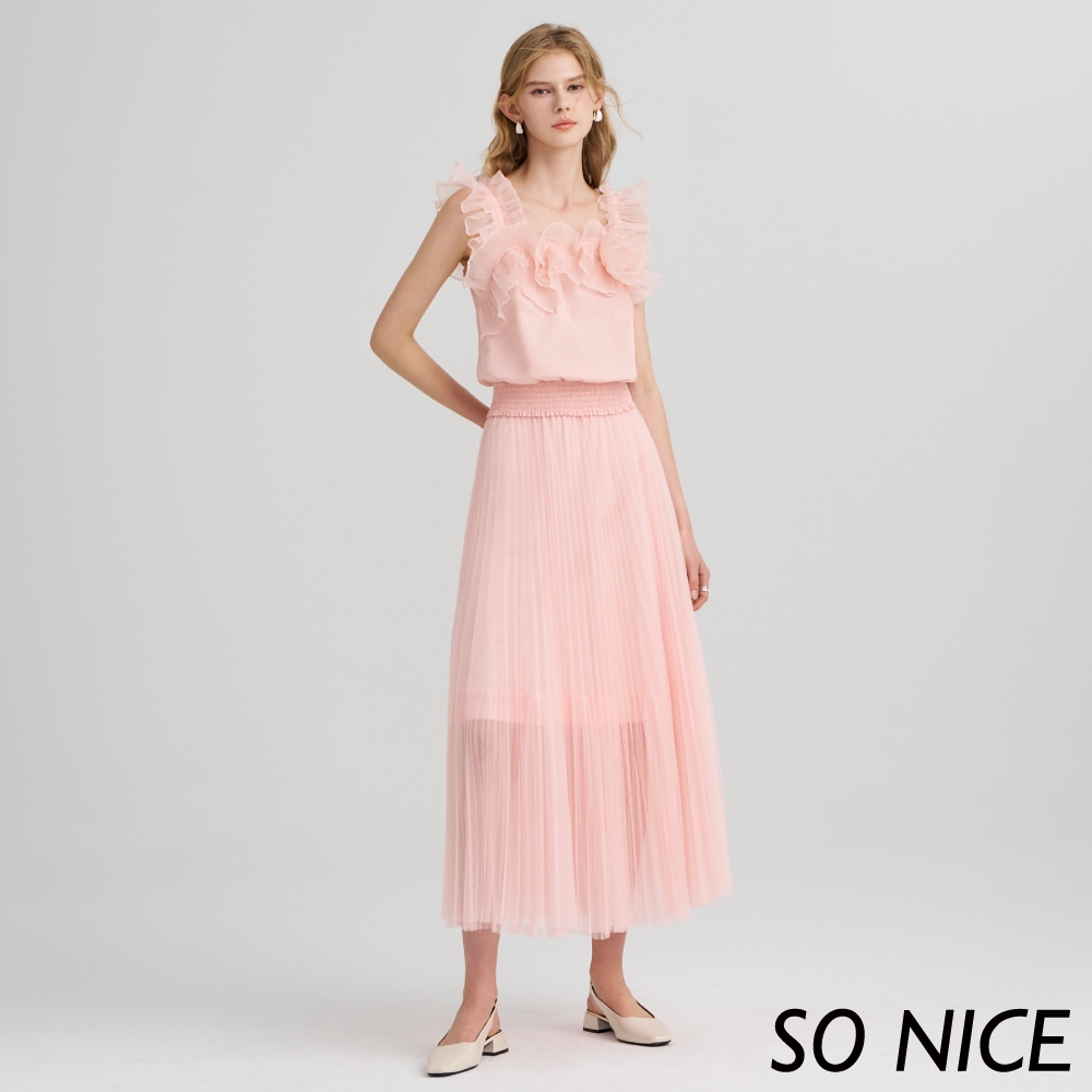 SO NICE【特惠】立體壓摺網紗彈力腰頭造型長裙|都會時尚女裝 【75433011】粉,34(XS)|粉,36(S)|粉,38(M)|粉,40(L)SO NICE 官方旗艦店