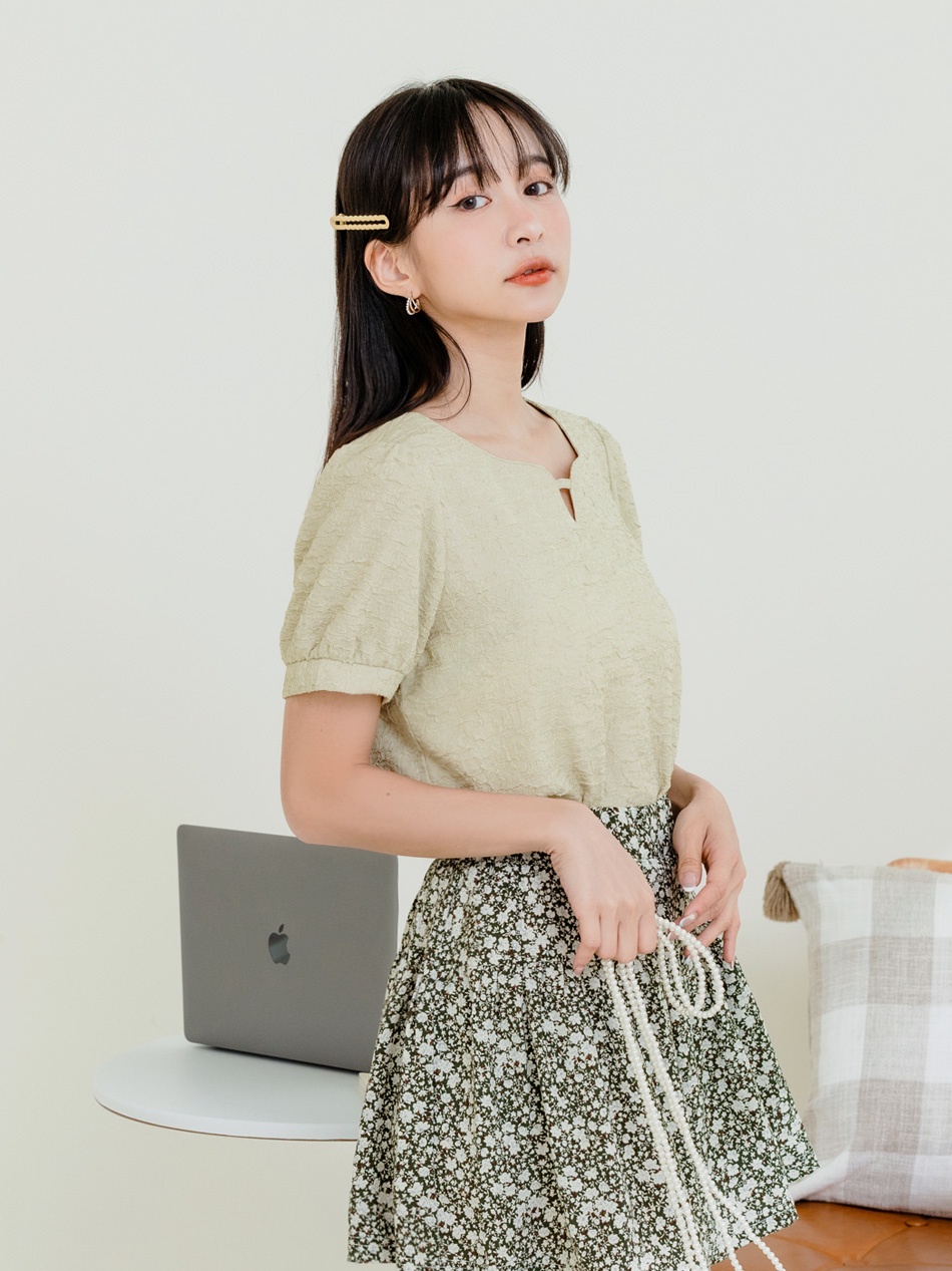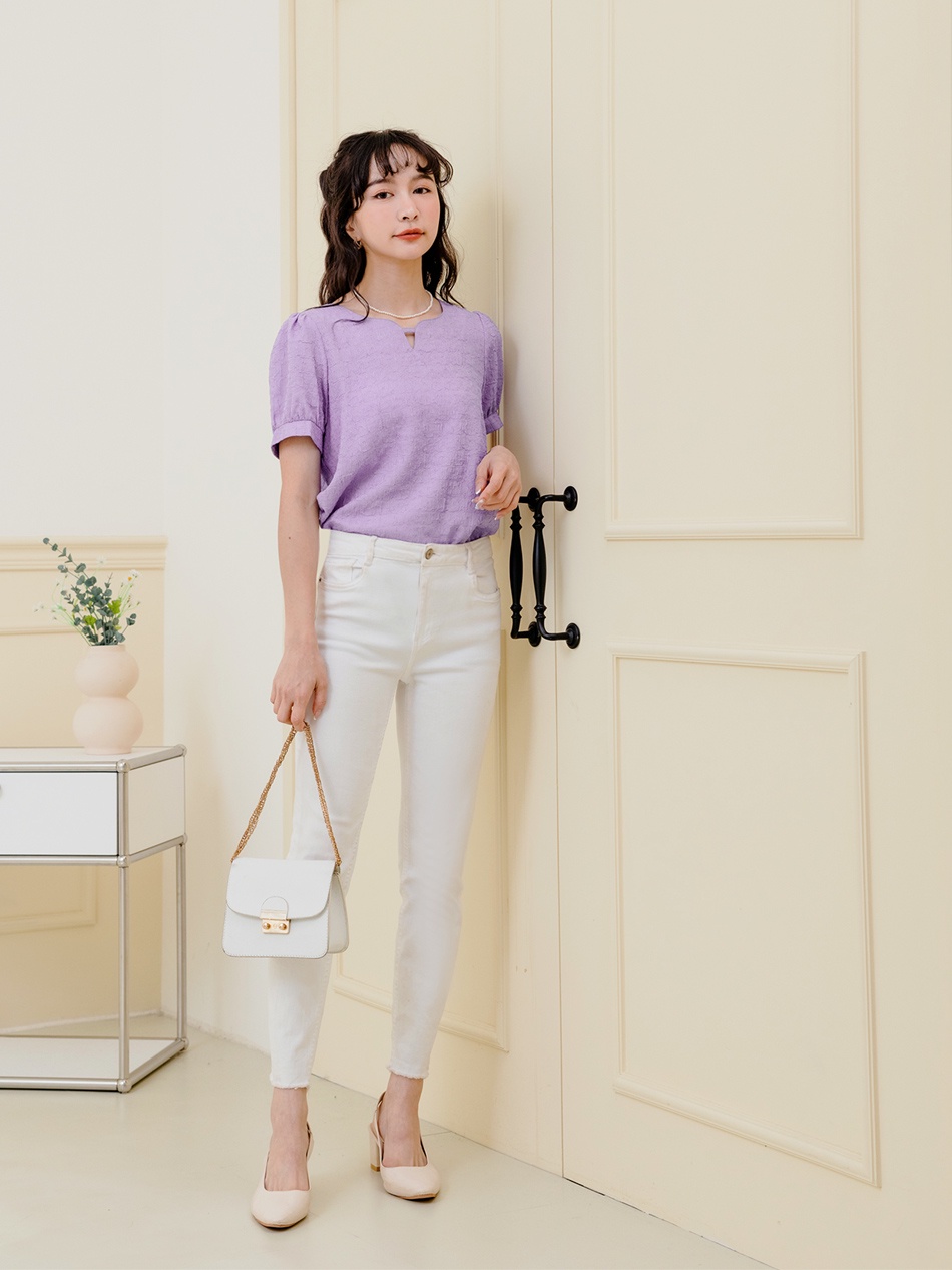 OB嚴選 立體紋理造型領拋袖上衣 《AB18531》大尺碼/現貨/女裝紫,XL|紫,3L|灰綠,M|灰綠,XL|灰綠,3L|紫,S|紫,M|紫,L|灰綠,2L|紫,2L|灰綠,S|灰綠,LT-shirtsOB嚴選官方旗艦店