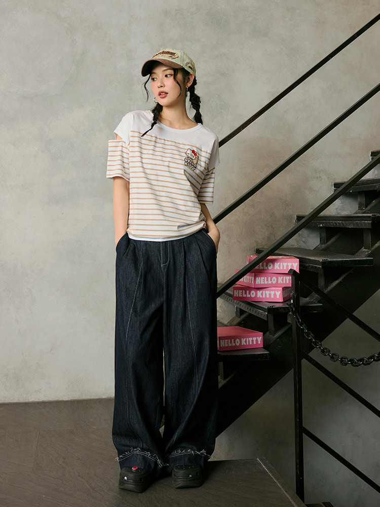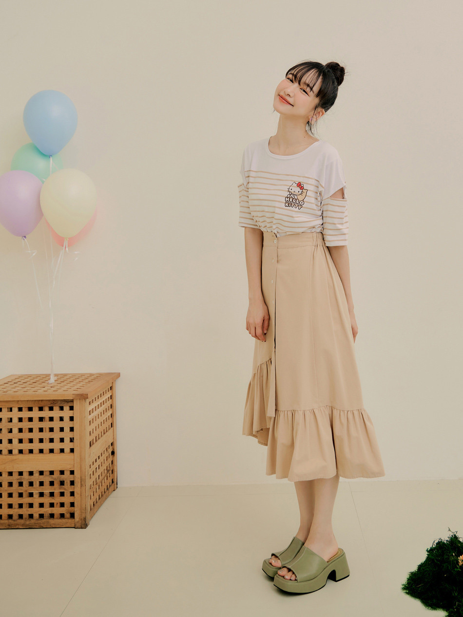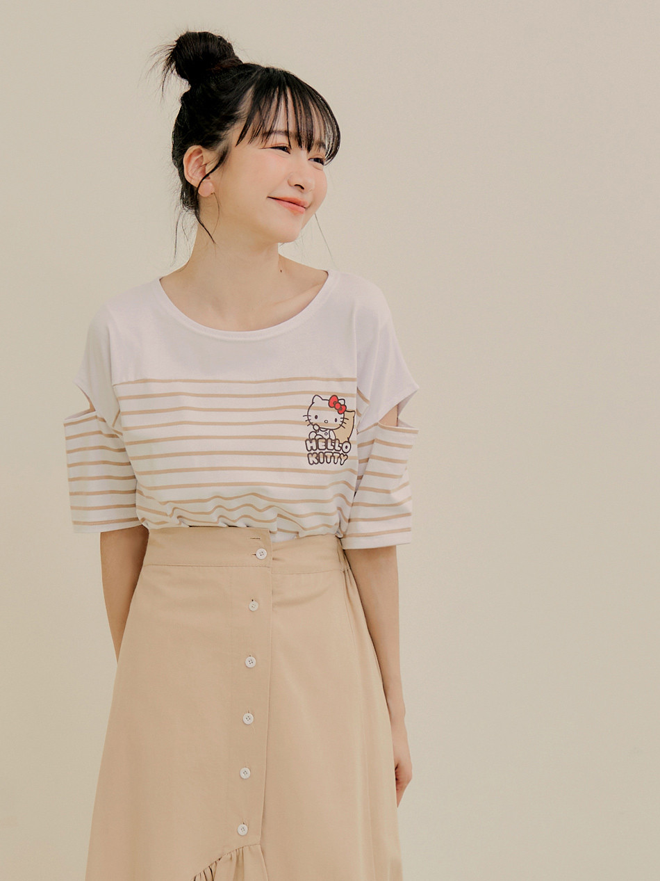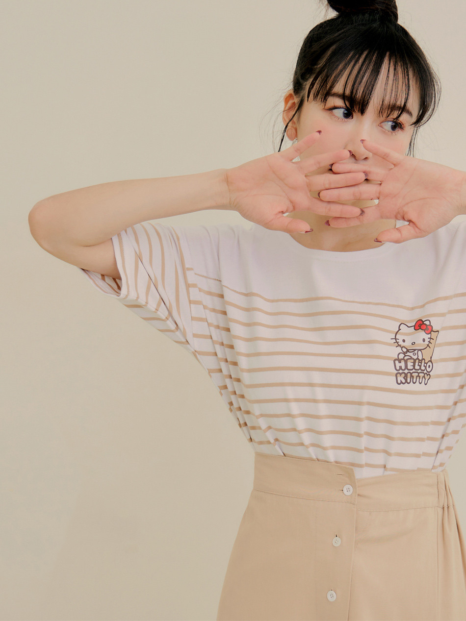 OB嚴選 KITTY CUTIE LAND.橫條紋挖袖短TEE 《KB1492》奶茶,S|奶茶,M|奶茶,L|奶茶,XL|奶茶,2L|奶茶,3L|粉紅,S|粉紅,M|粉紅,L|粉紅,XL|粉紅,2L|粉紅,3LT-shirtsOB嚴選官方旗艦店