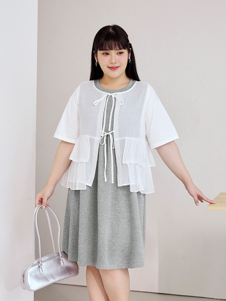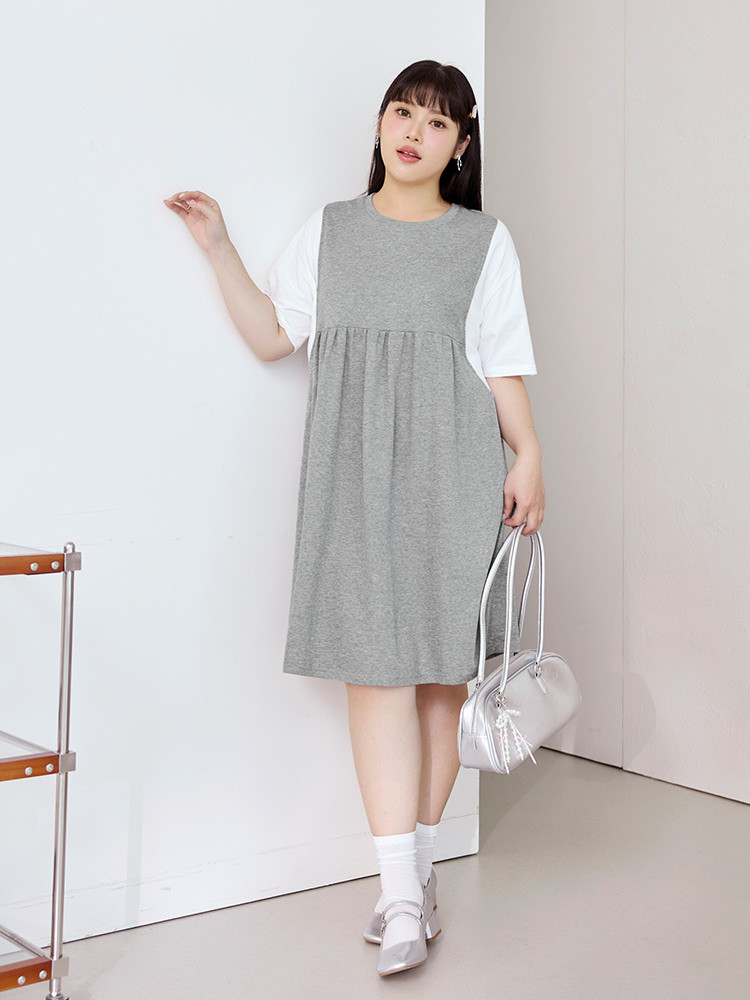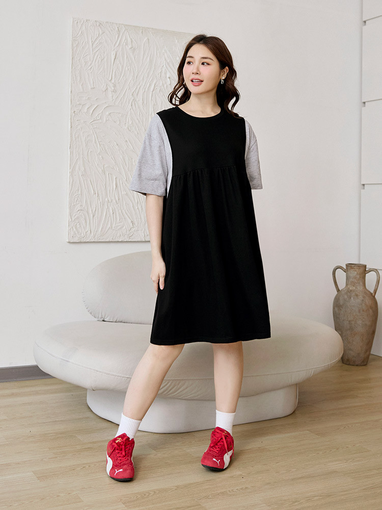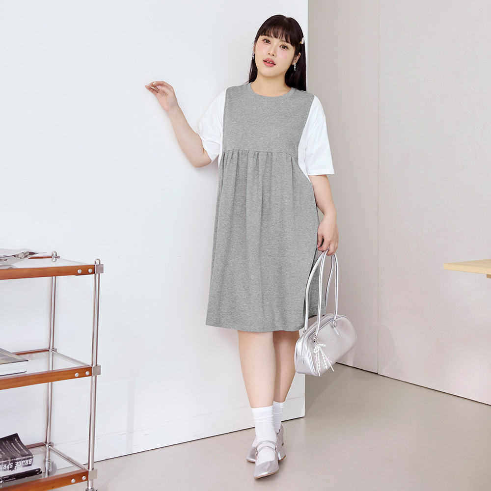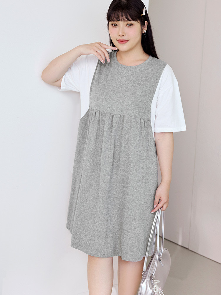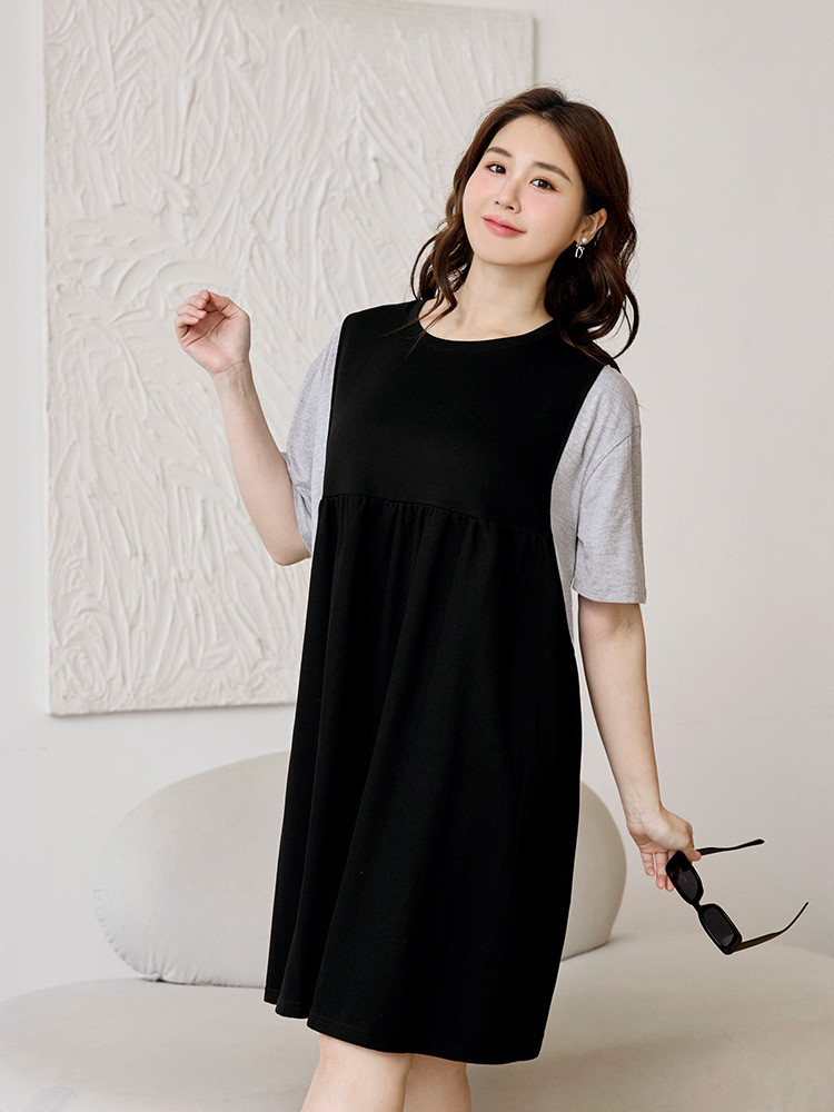 OB嚴選 雲朵自訂款-假兩件棉質腰抓褶配色洋裝 《DA10539》灰,XL|灰,2L|灰,3L|灰,4L|黑,XL|黑,2L|黑,3L|黑,4LOB嚴選官方旗艦店