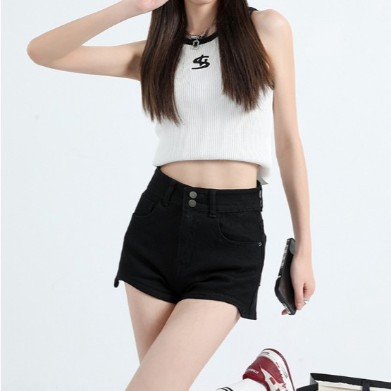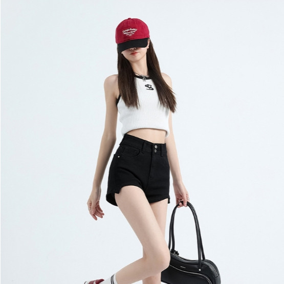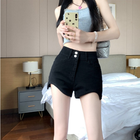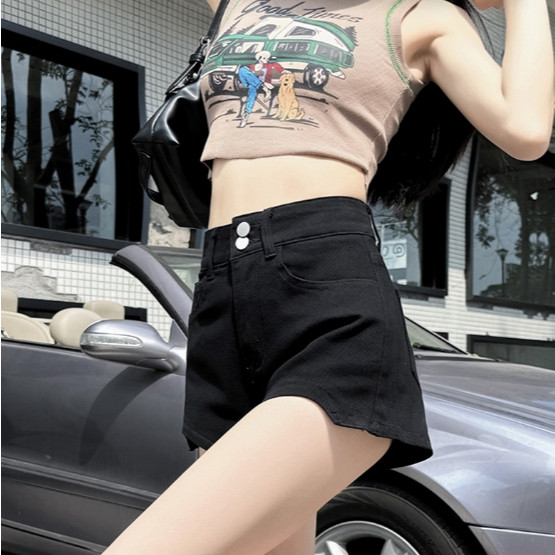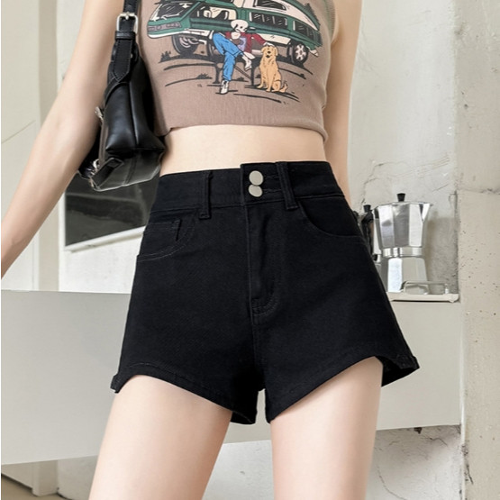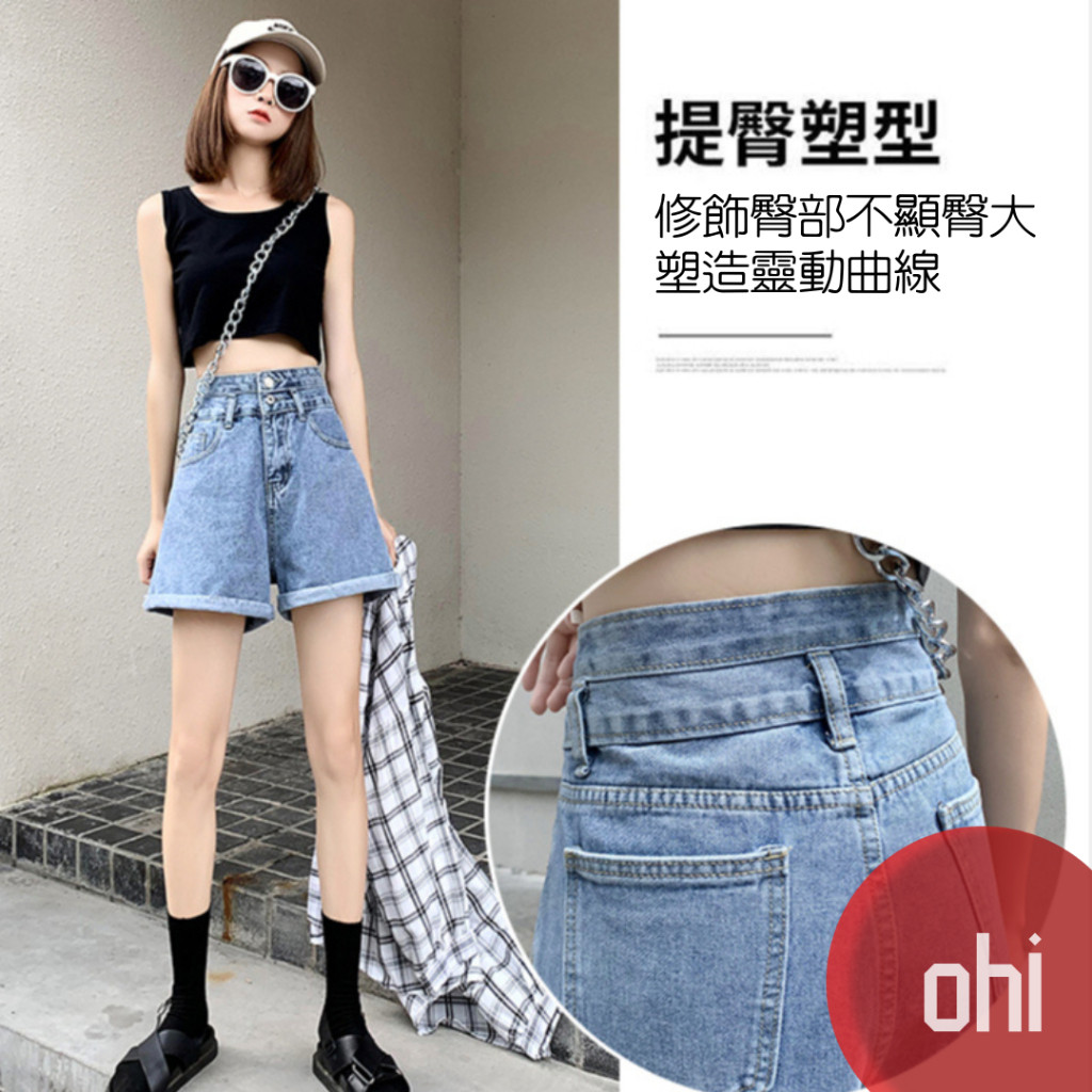 【ohi】休閒高腰牛仔短褲 A字短褲 熱褲 短褲 女 寬鬆顯瘦百搭 女裝 高腰短褲 高腰牛仔褲 褲子女生 GJC707圖片色,XS|圖片色,S|圖片色,M|圖片色,L|圖片色,XLShortsOHI衣著