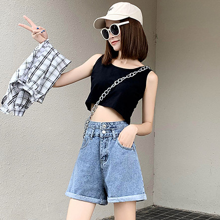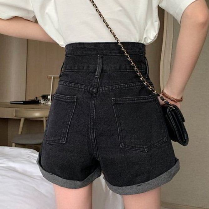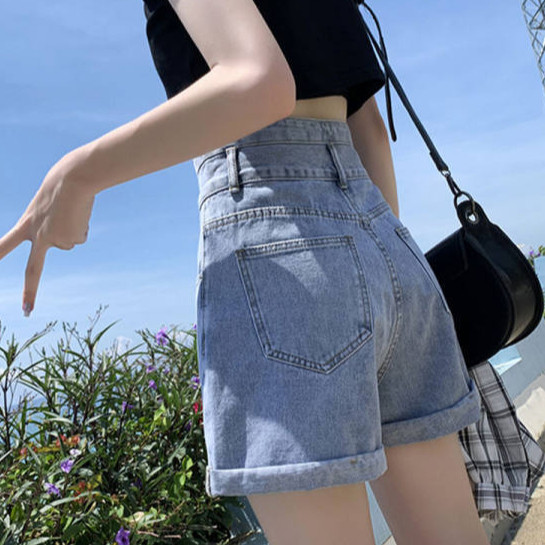 【ohi】雙紐扣設計 牛仔短褲 a字褲 捲邊設計 高腰顯腿長 闊腿褲 女生夏季熱褲 修身顯瘦 韓版褲子 2色入GJ826淺藍,S|淺藍,M|淺藍,L|淺藍,XL|淺藍,2XL|黑灰,S|黑灰,M|黑灰,L|黑灰,XL|黑灰,2XLShortsOHI衣著