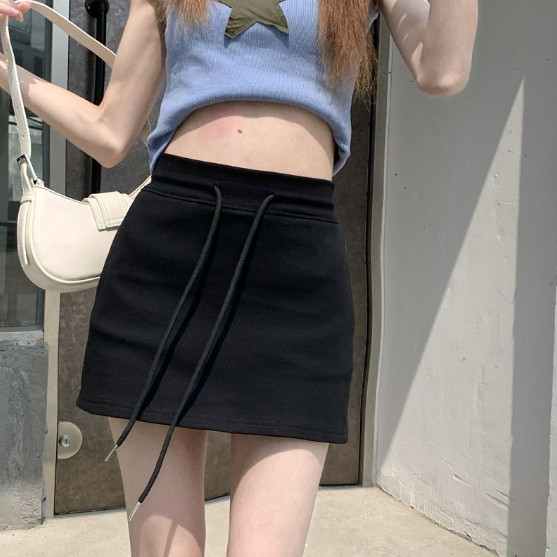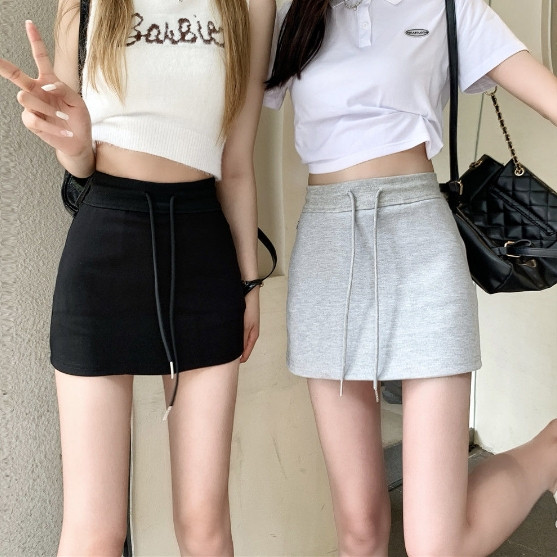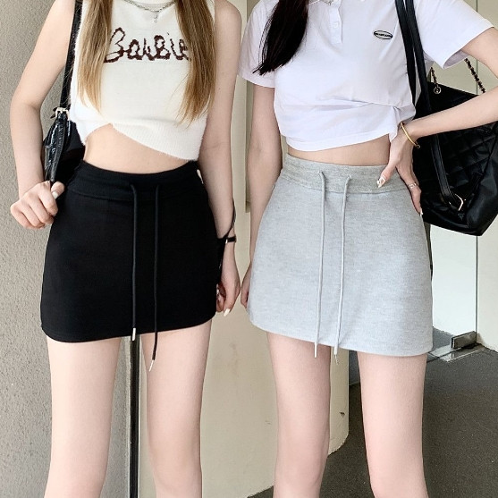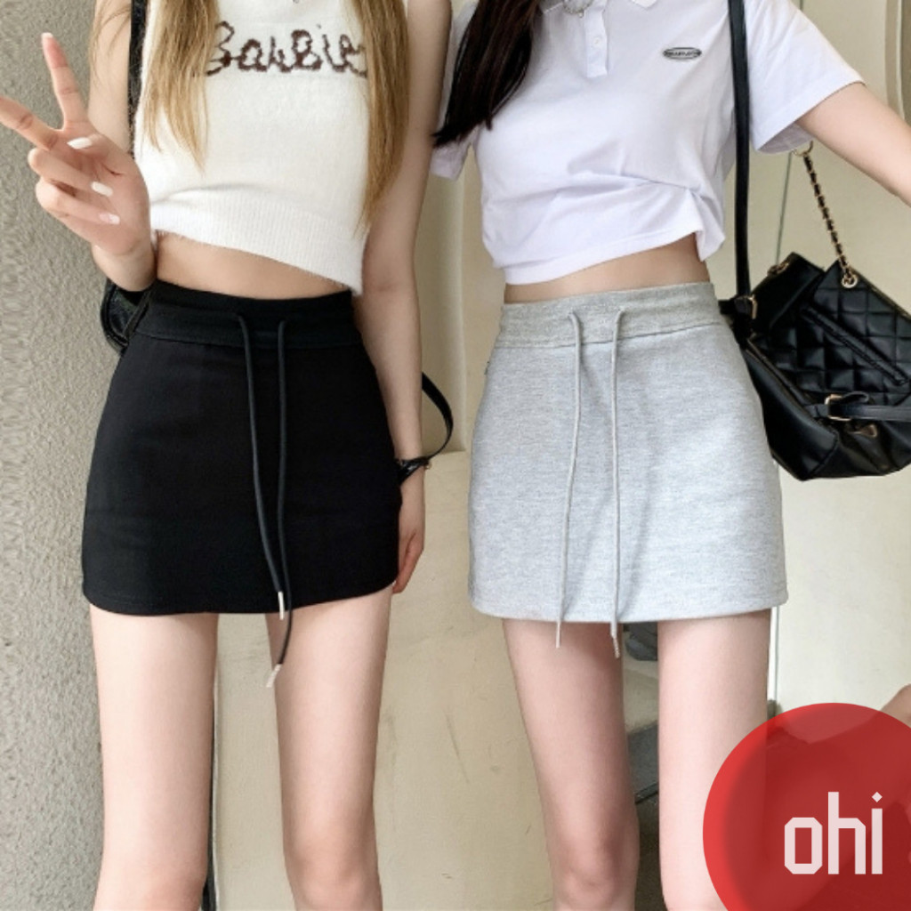【ohi】休閒運動半身裙 包臀裙 A字短裙 抽繩高腰顯瘦 簡約百搭休閒 短裙 女裝 自帶安全褲 GKY2183黑色,M|黑色,L|黑色,XL|黑色,2XL|灰色,M|灰色,L|灰色,XL|灰色,2XLOHI衣著