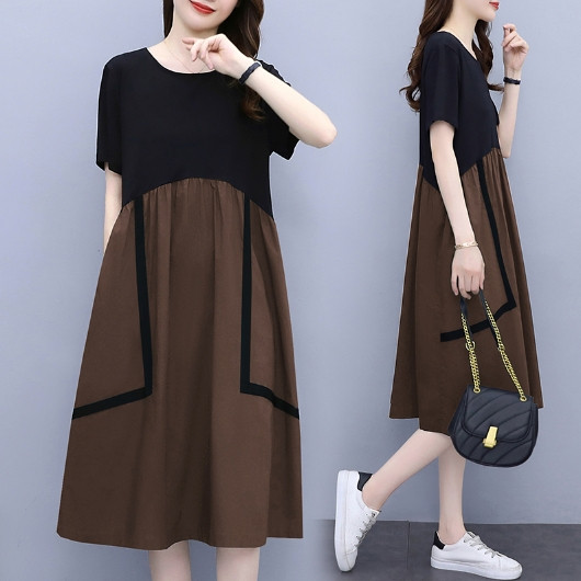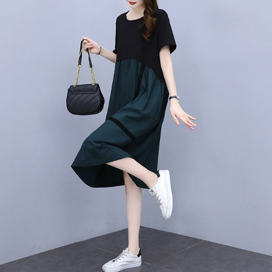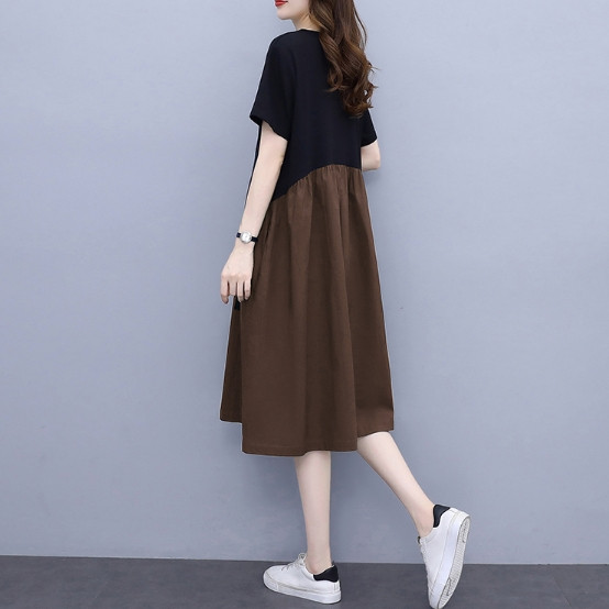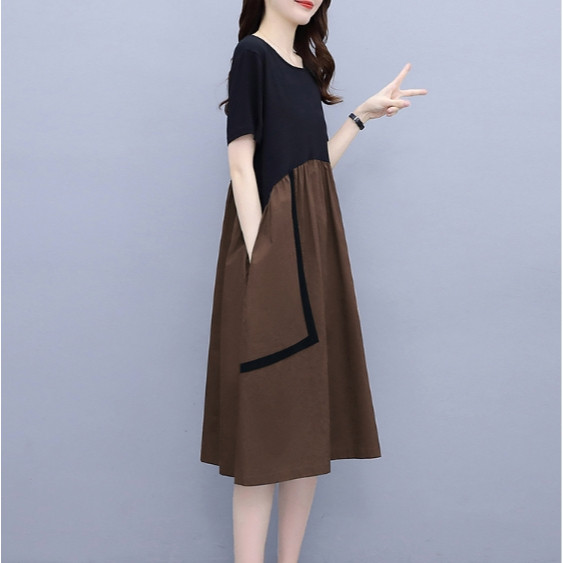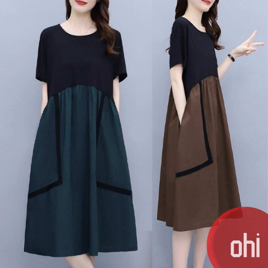 【ohi】時尚撞色連衣裙 新款韓版韓系女裝 裙子 簡約拼接寬鬆遮肚中長款裙子 減齡感套裝 女裝 GKN871藍色,M|藍色,L|藍色,XL|藍色,2XL|藍色,3XL|藍色,4XL|咖啡色,M|咖啡色,L|咖啡色,XL|咖啡色,2XL|咖啡色,3XL|咖啡色,4XLOHI衣著
