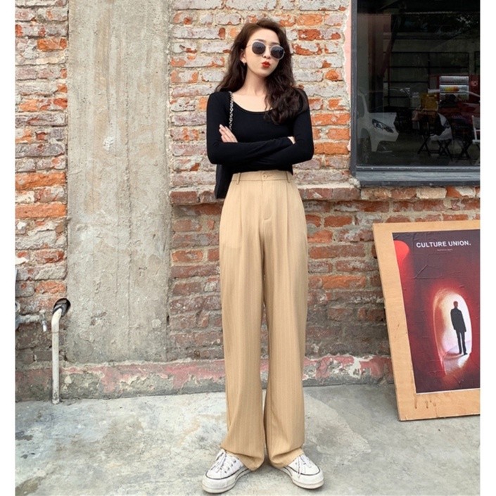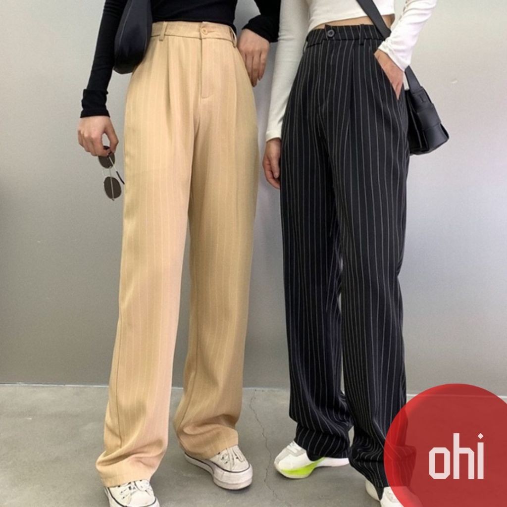 【ohi】大尺碼 寬腿褲 新款 條紋 西裝褲 女 寬鬆 胖mm 顯瘦 直筒褲 高腰褲 拖地褲 闊腿褲 (GPS299)卡其,3XL|卡其,4XL|黑色,S|黑色,M|黑色,2XL|卡其,M|卡其,2XL|黑色,XL|黑色,4XL|黑色,3XL|卡其,S|卡其,XL|黑色,L|卡其,LPantsOHI衣著