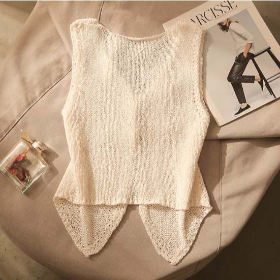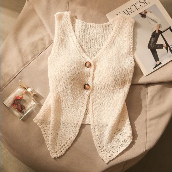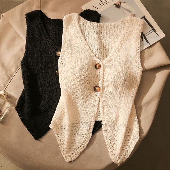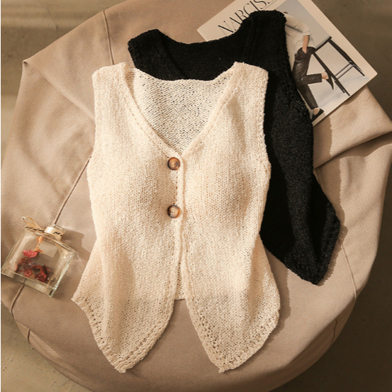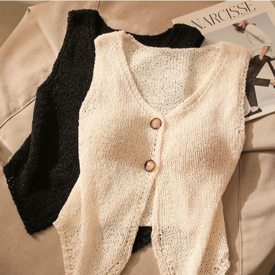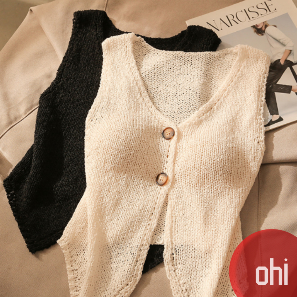 【ohi】韓系小香風針織開衫 時尚百搭開叉馬甲背心 短款坎肩上衣 夏天衣服 女裝 GVH6509黑色,均碼-65KG以內都可穿|白色,均碼-65KG以內都可穿OHI衣著