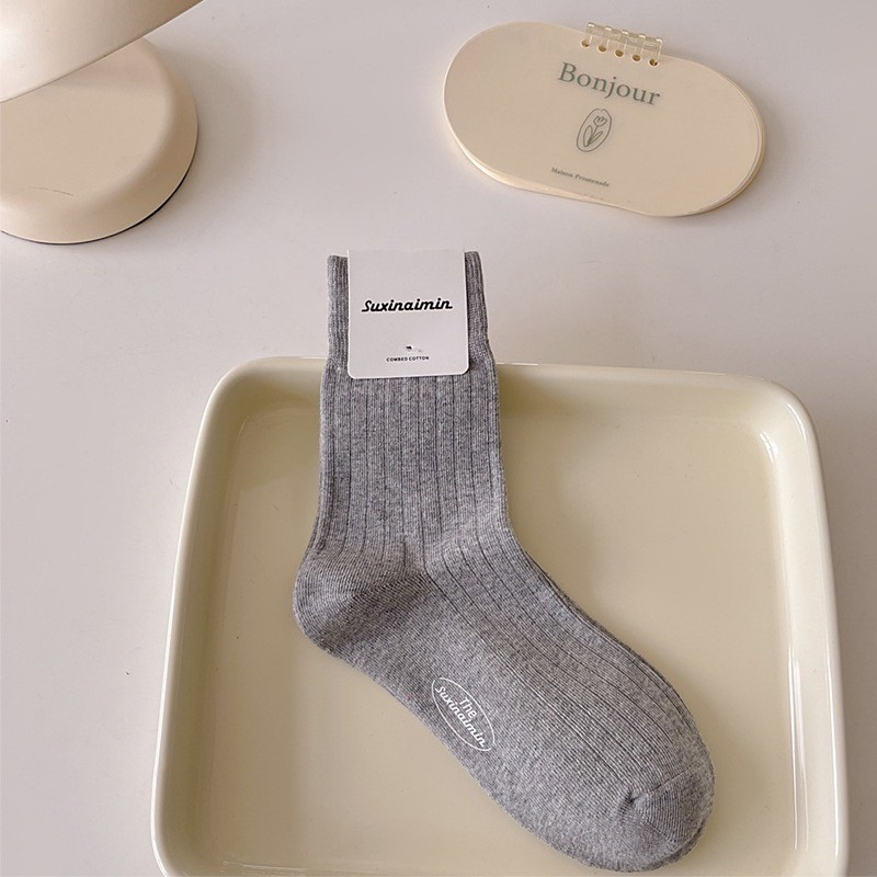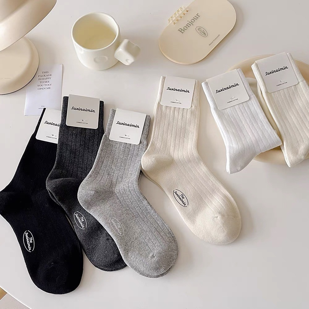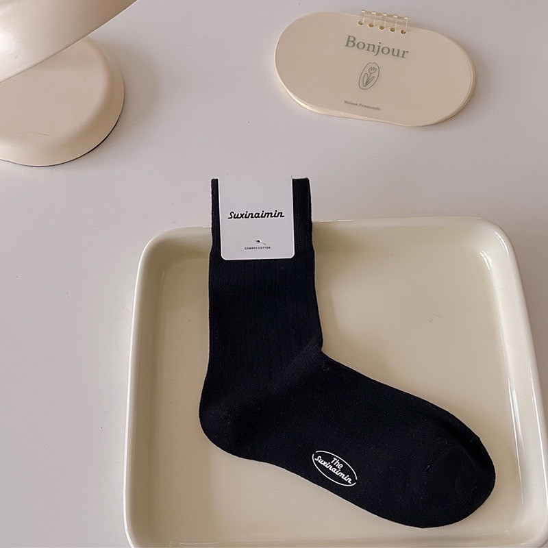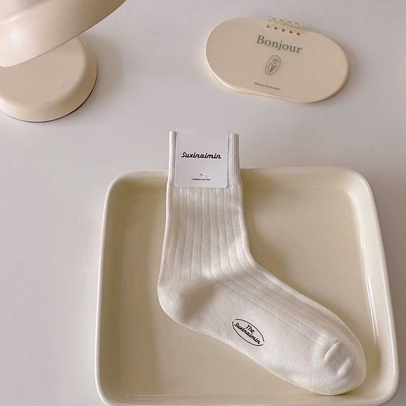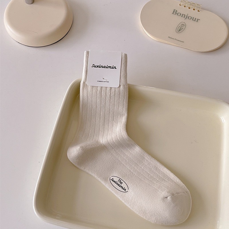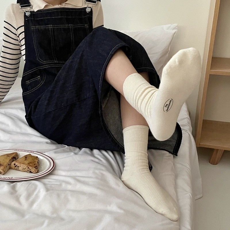 【ohi】 秋冬 質感 奶油百搭 韓版INS 日系 堆堆襪 女襪 棉襪 襪子 學院風燙印 (ZA011)純白23~25|黑色23~25|米色23~25|奶油23~25|淺灰23~25|深灰23~25SocksOHI衣著