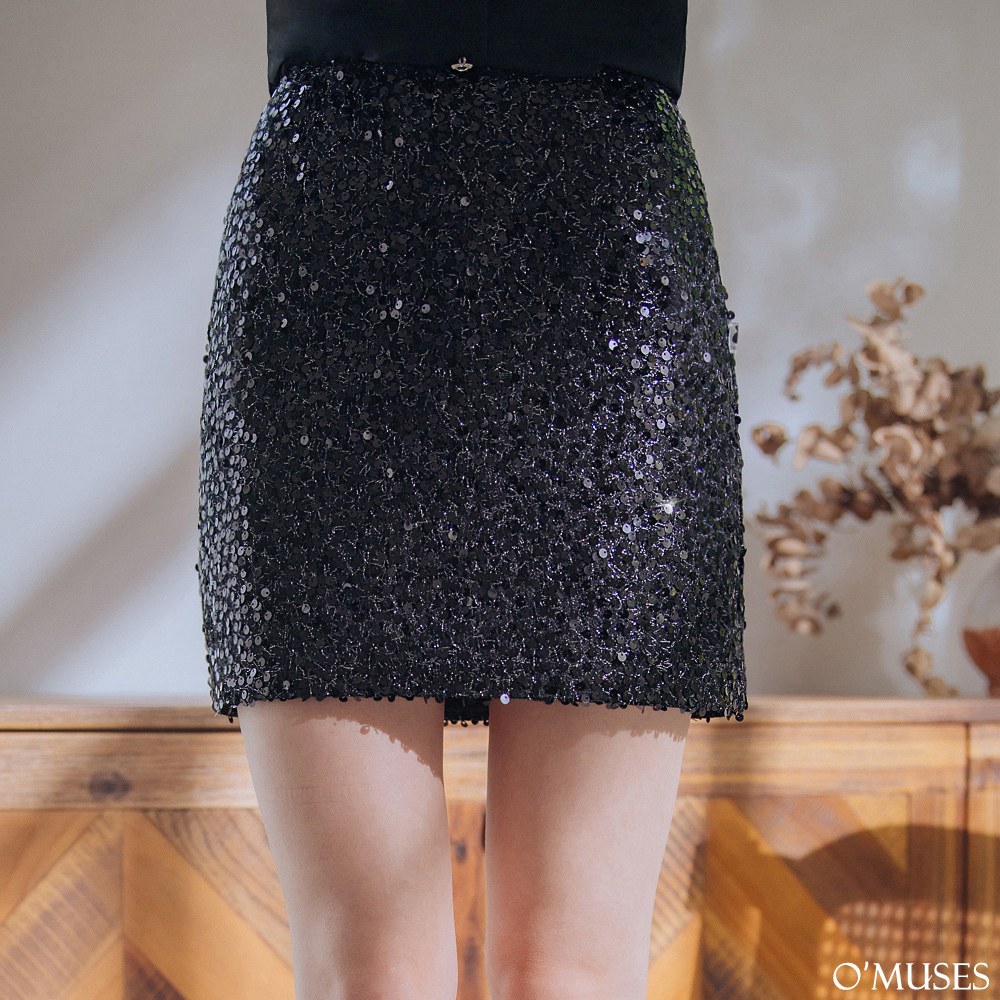 【OMUSES】滿版亮片黑色迷你派對短裙13-30046S|M|LOMUSES歐繆思